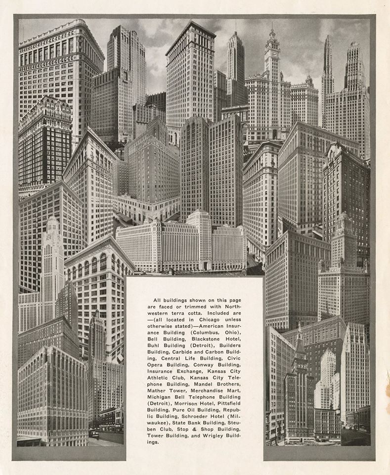 chicago architects continued to use terra-cotta well into the twentieth century, creating such spectacular examples as the railway exchange building, the wrigley building, the carbide & carbon building, and jewelers building (35 east wacker) chicago.