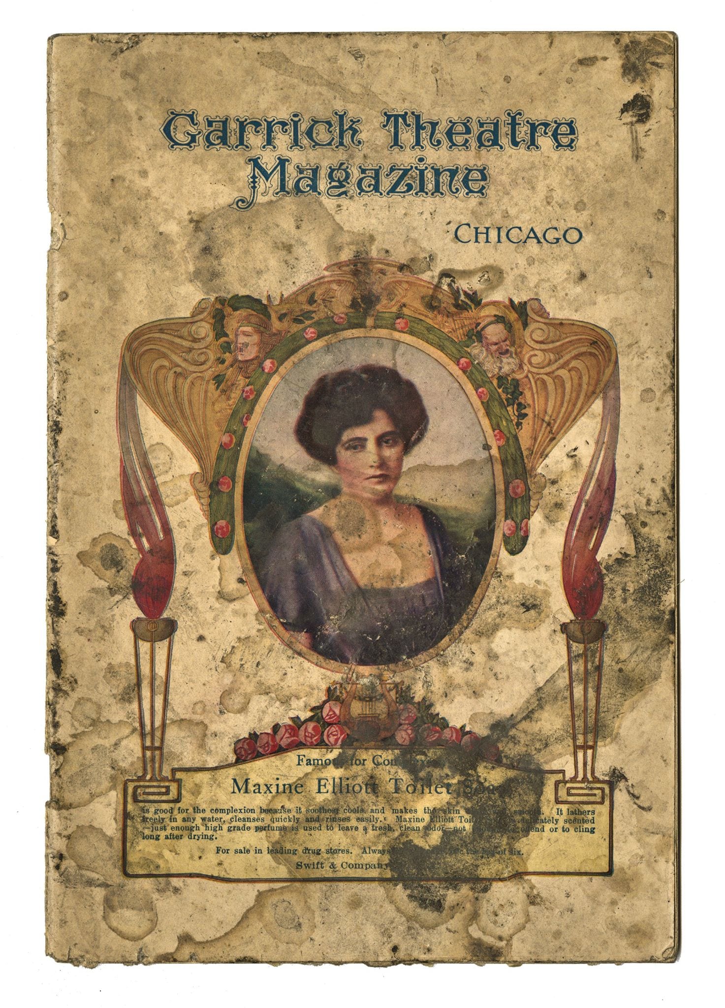 the programs mostly date to the early 20th century. the die-cut lithographed cardboard sign dates to the 1890’s, when the building was still known as the schiller building/theater. nickel documented and/or collected other “portals to the past” that surfaced as the building was pulled apart by the wreckers.