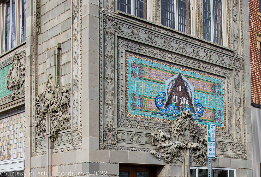 The Home Building Association Bank was built in 1914 and opened on August 25, 1915, as The Home Building Association Company, commonly known as “The Old Home”. It was one of three banks designed by Sullivan in 1914, the other two being in Grinnell, Iowa, and in West Lafayette, Indiana.