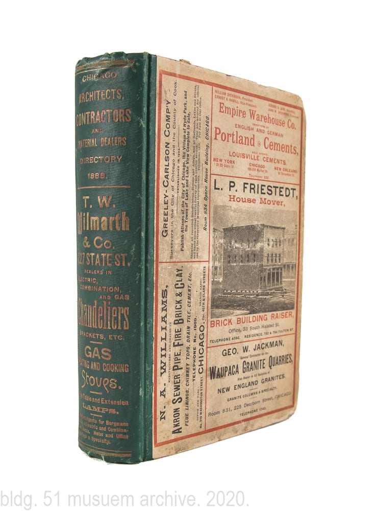 a collection of recently digitized original 19th and early 20th century rare and seldom found chicago-based building trade catalogs housed on the bldg. 51 museum archive. in addition to catalogs, i’ve included a few salesman samples, post cards and other related ephemera. when time permits, i hope to have each and every book, catalog, letters, and images scanned and available for use in the public realm.