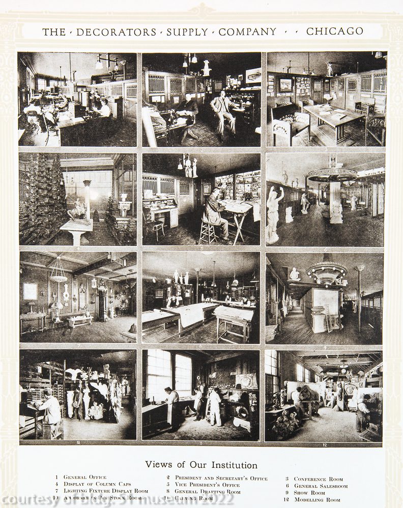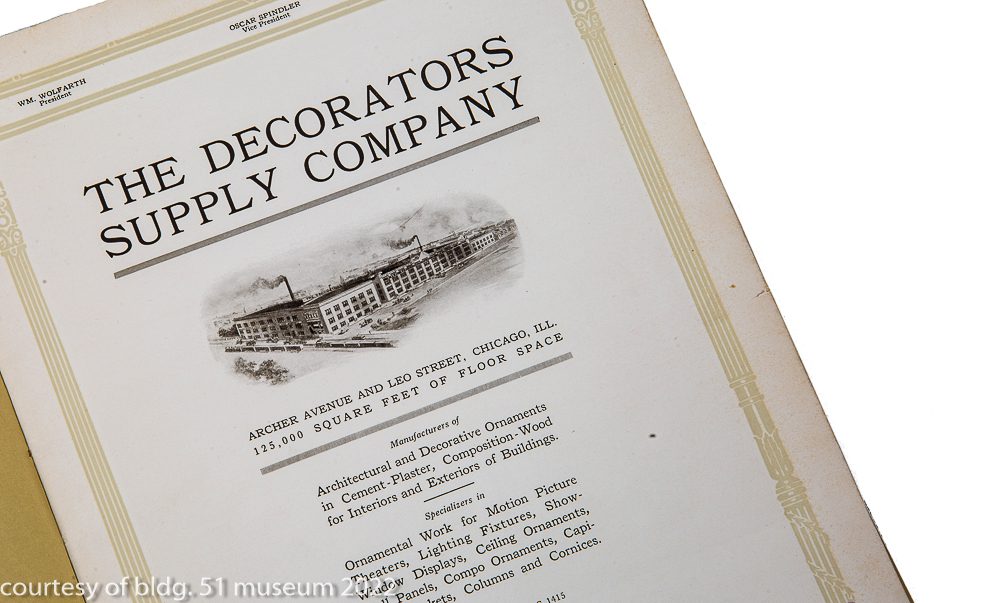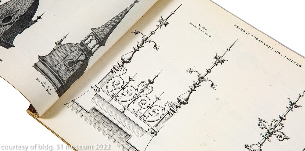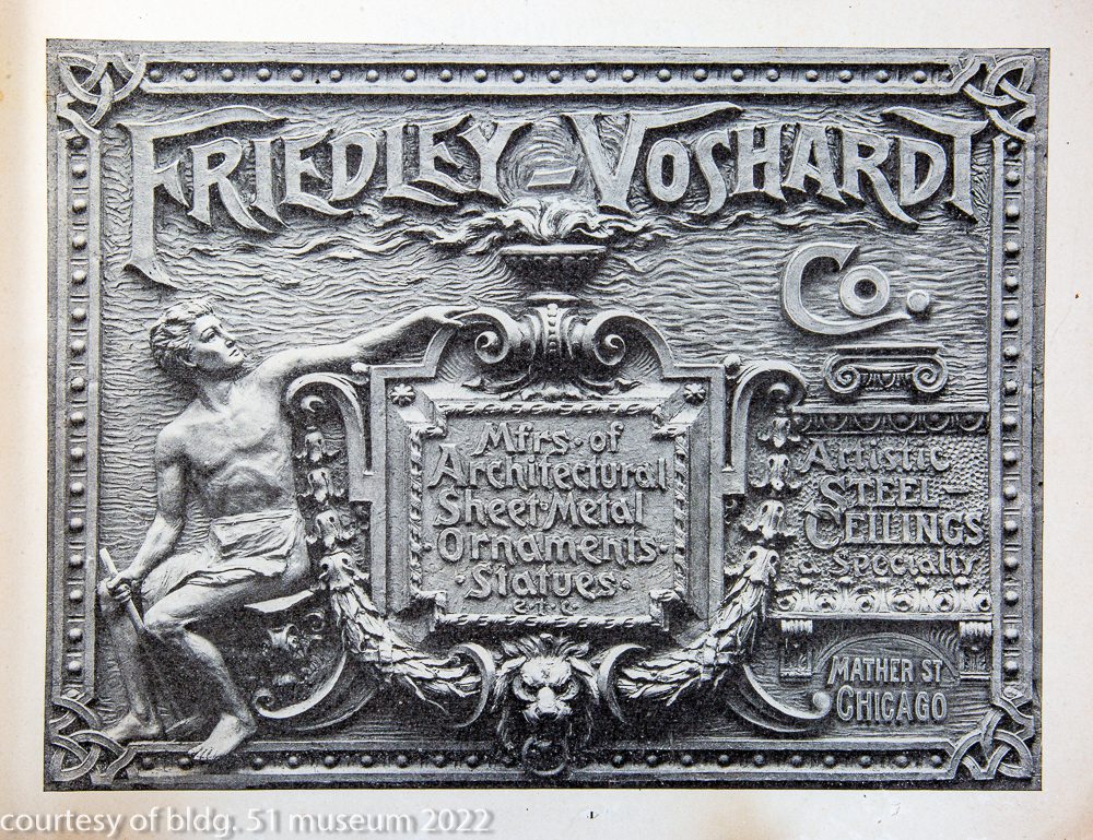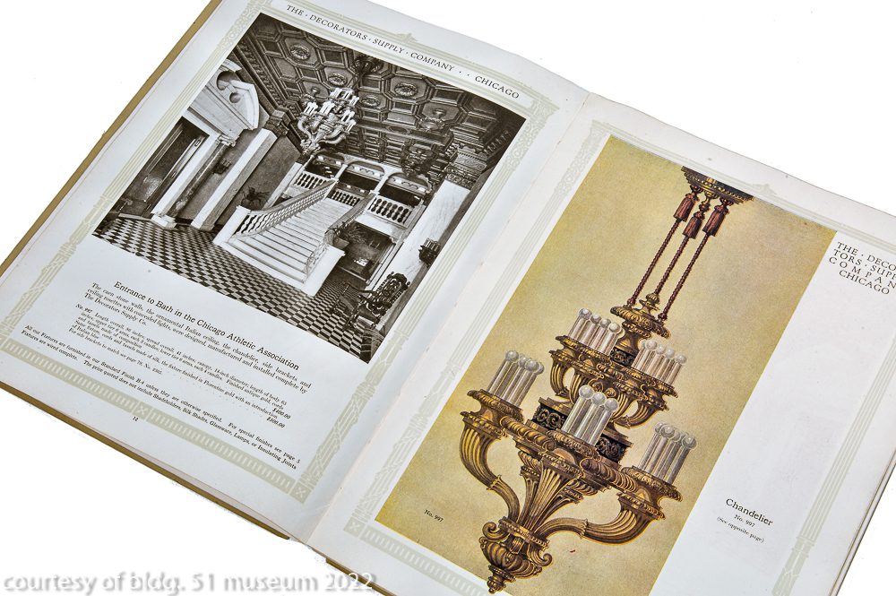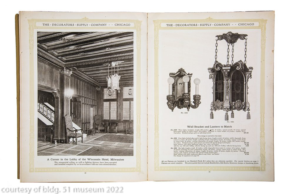 two original early 20th century profusely illustrated architectural building trade catalogs printed for the chicago-based decorators supply company and friedley-voshardt were aquired by the bldg. 51 archive last week. the soft-bound product catalogs contain detailed descriptions and images of chicago-based showrooms, offices, and factories. in addition to an extensive collection of interior and exterior building “stock” fittings and fixtures, there are several examples of custom work including the chicago athletic association building, englewood theater, and wisconsin hotel.