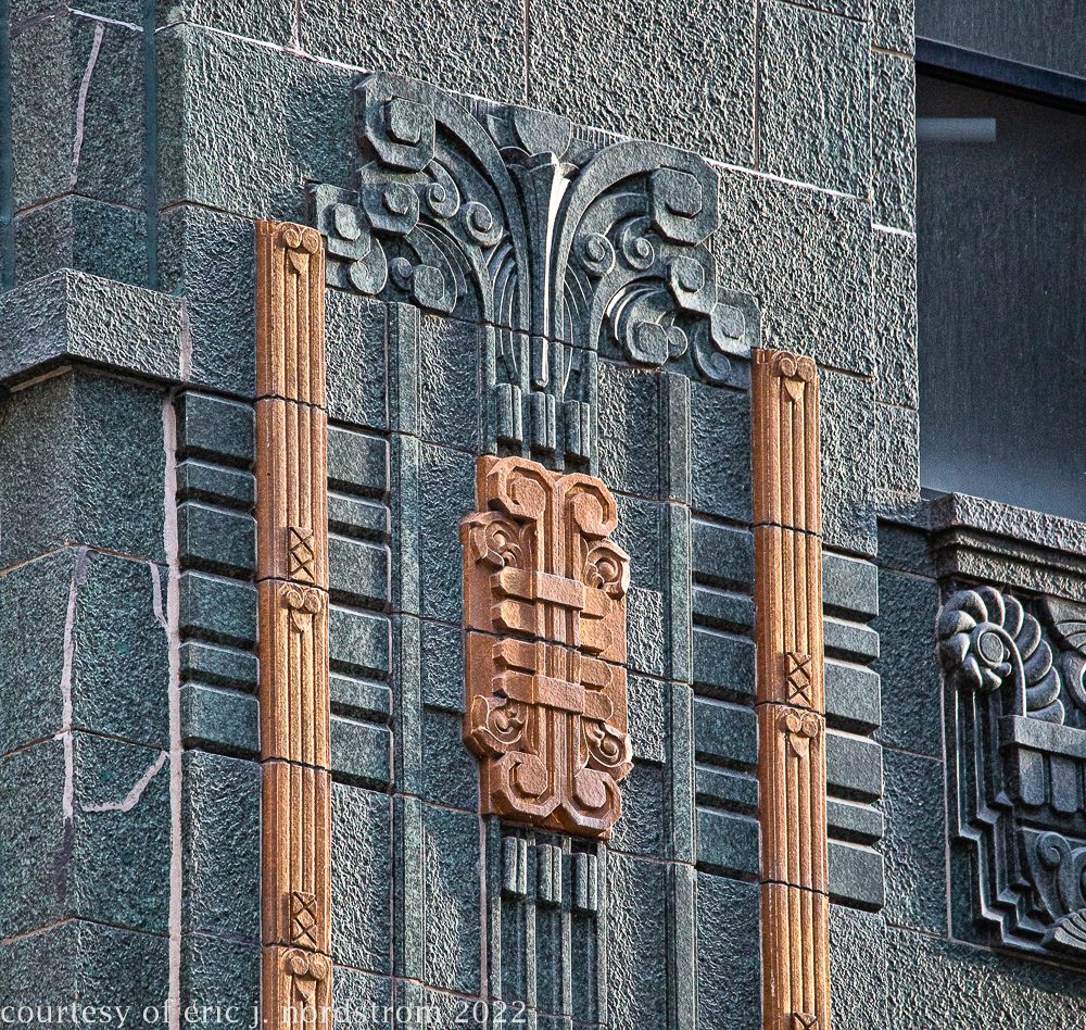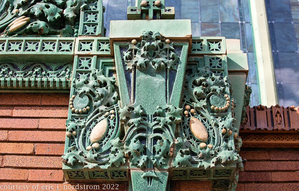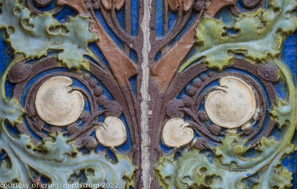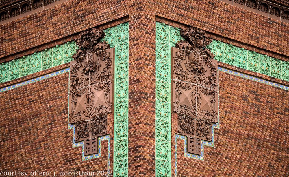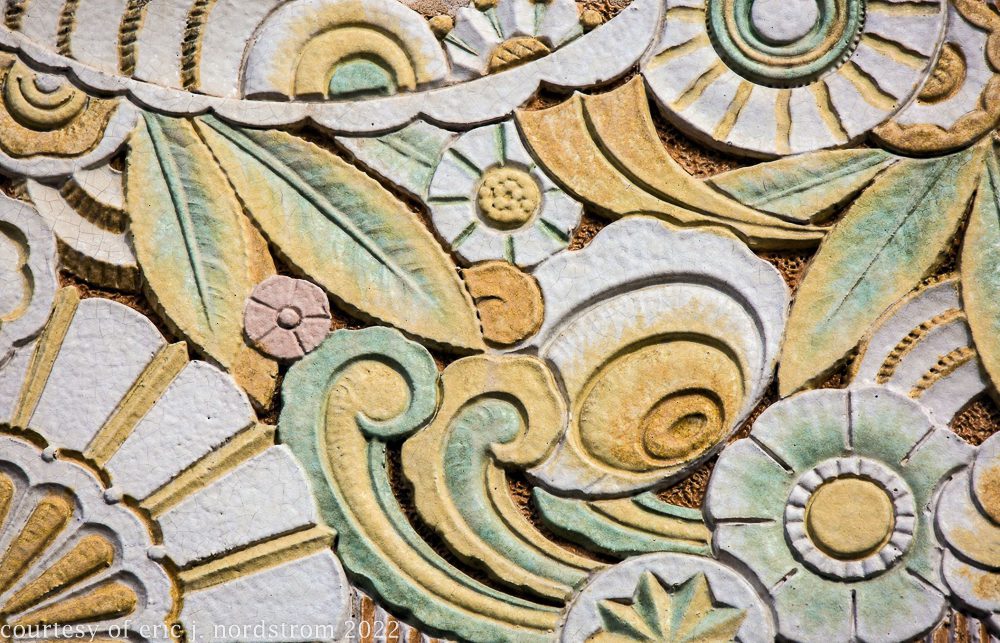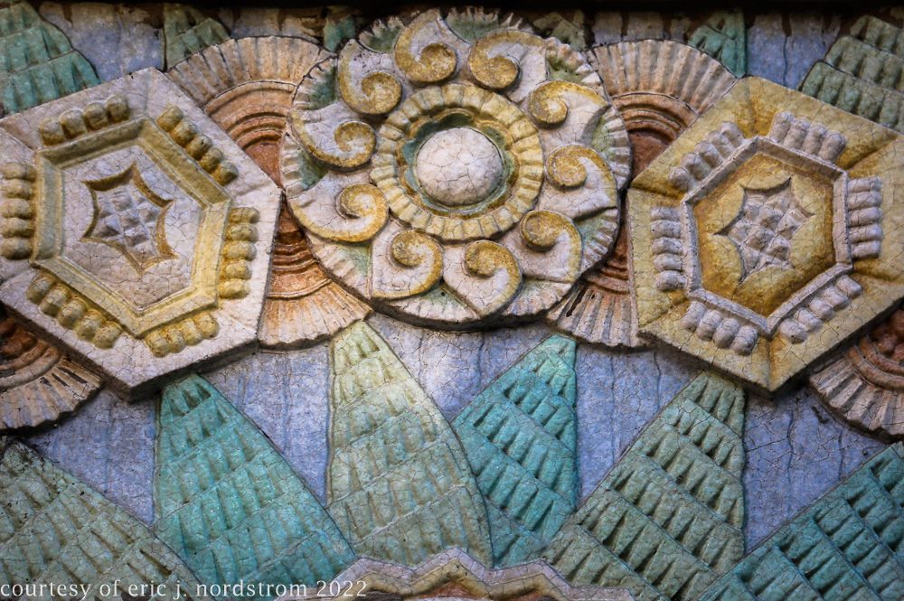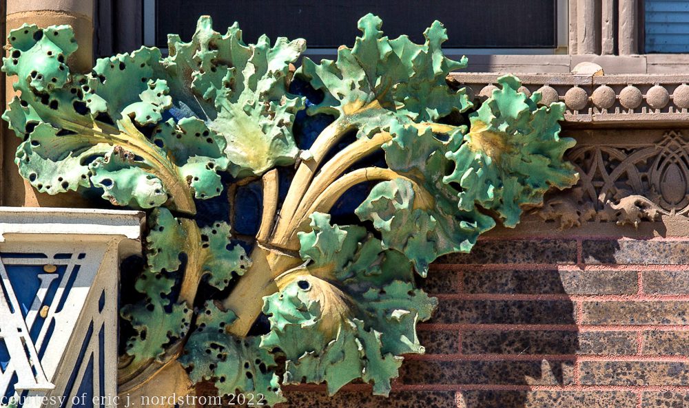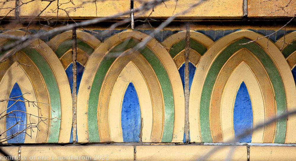 the following images were taken from a years-long exhaustive photographic survey of exterior polychrome terra cotta ornament executed by terra cotta companies (e.g., northwestern, american, midland) found largely in the midwest. the images offer an in-depth analysis of ornament bedecked with a multitude of glazes and/or finishes. information including, but not limited to building identification, architect (if known), terra cotta fabricator, dates, job numbers, condition, and so on, will be provided when time permits.
