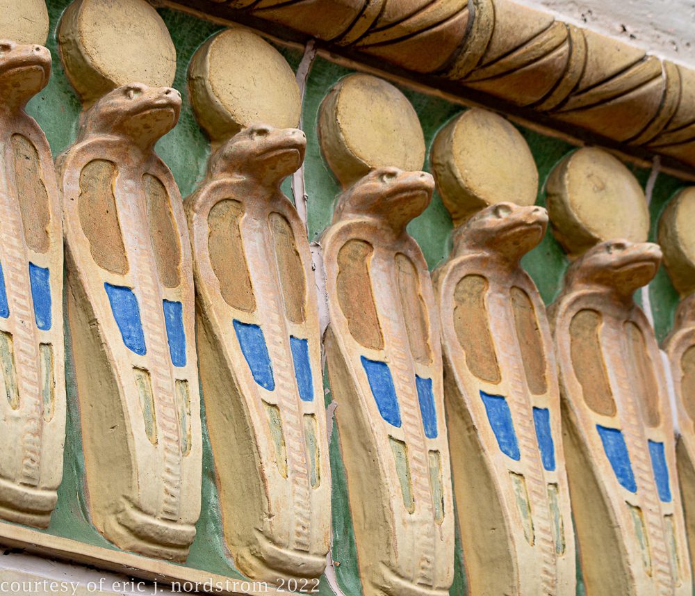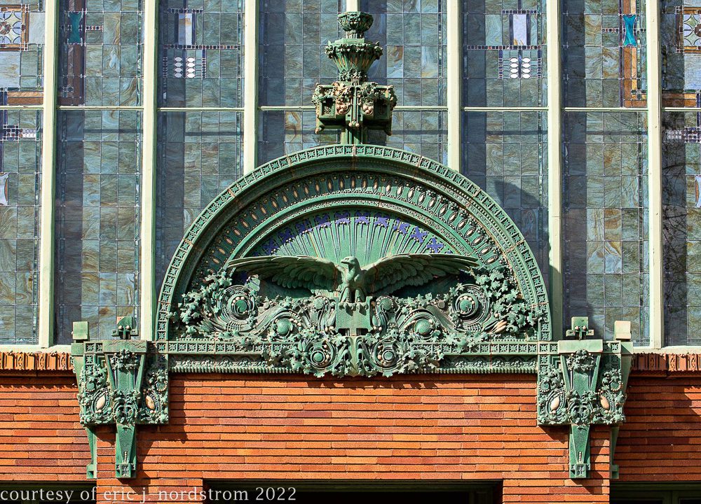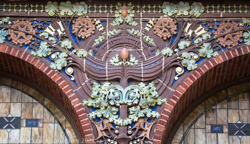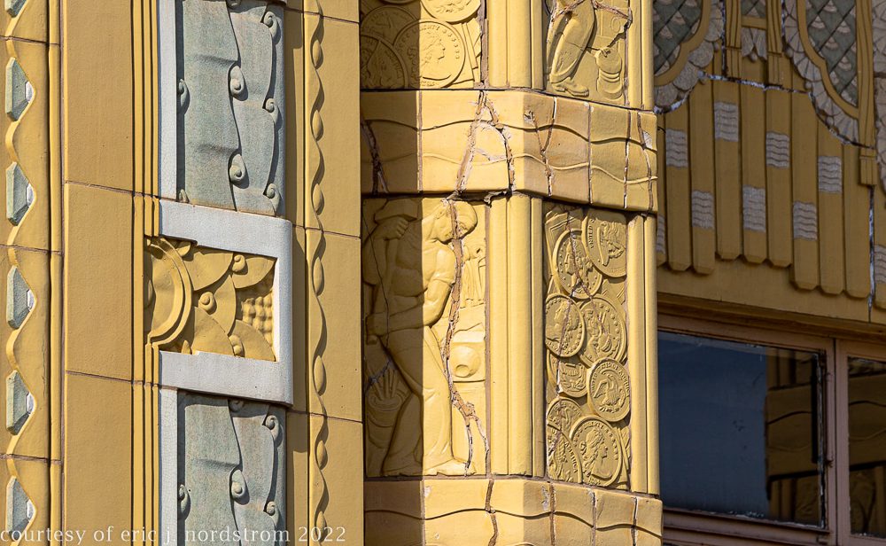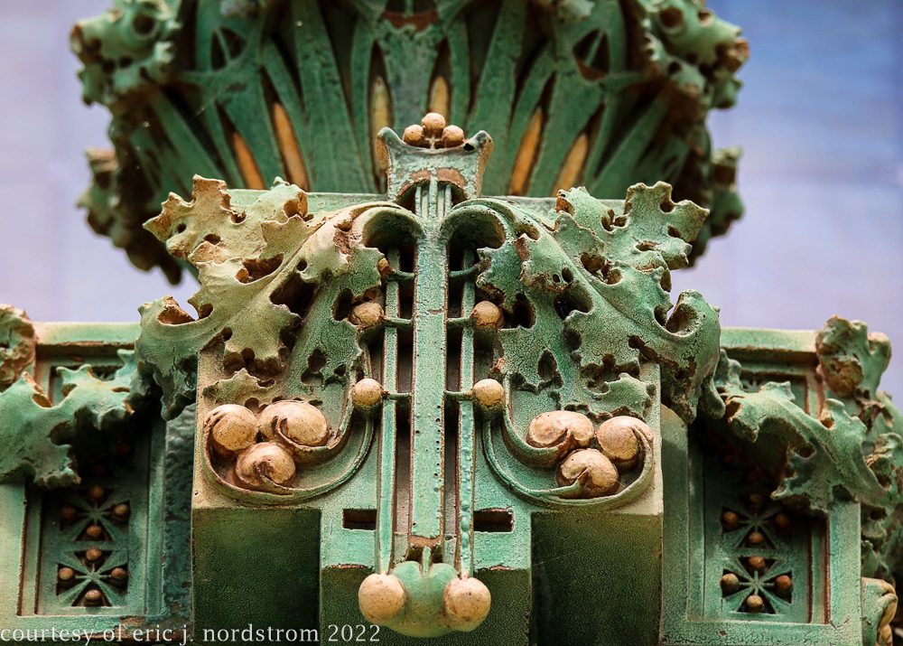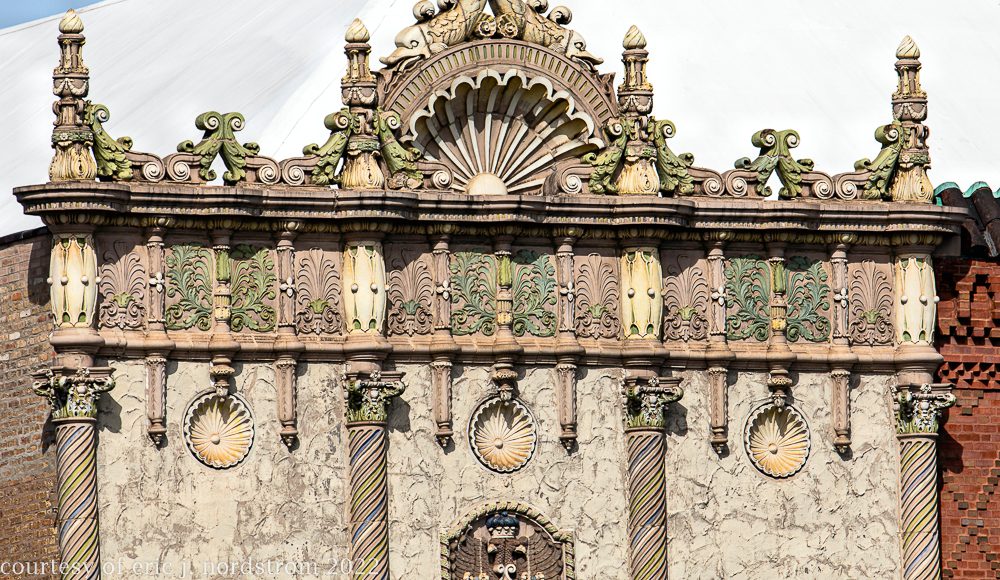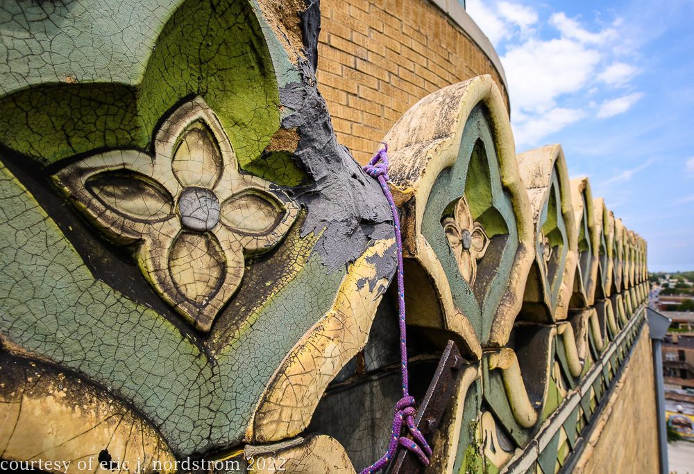 the following images were taken from a years-long exhaustive photographic survey of exterior polychrome terra cotta ornament executed by terra cotta companies (e.g., northwestern, american, midland) found largely in the midwest. the images offer an in-depth analysis of ornament bedecked with a multitude of glazes and/or finishes. information including, but not limited to building identification, architect (if known), terra cotta fabricator, dates, job numbers, condition, and so on, will be provided when time permits.