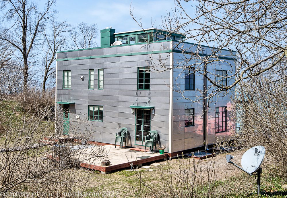 the only house of the five to stand the test of time in meeting the criteria of the world’s fair committee: ‘affordable’ and ‘mass producible’. an all-steel home using corrugated steel panels for walls, without a frame.