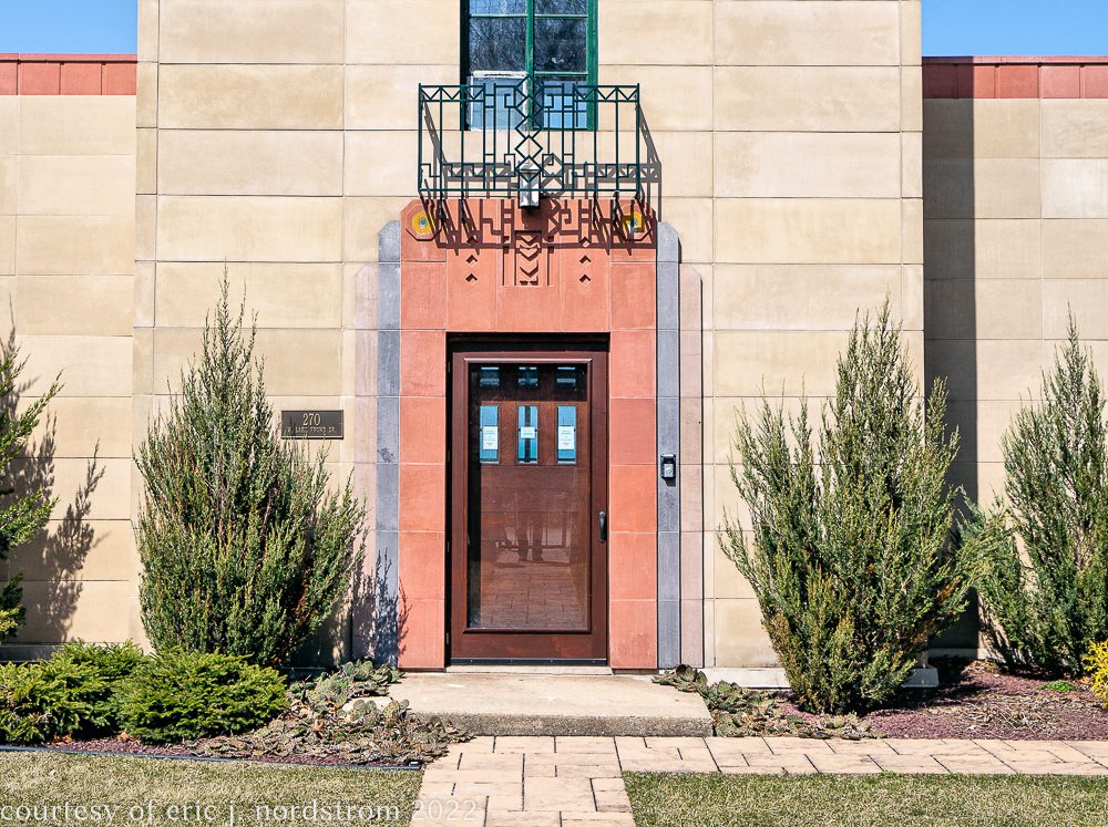 framed in steel and clad with an artificial stone called rostone (limestone, shale and alkali). its rostone exterior was billed as never needing repairs, but it only lasted until the 1950s.