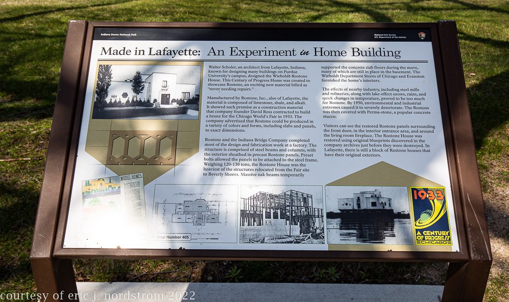 the century of progress architectural district is a historic district in beverly shores, indiana. the district is on lake shore drive within the indiana dunes national park. the district comprises five buildings, all from the homes of tomorrow exhibition of the 1933 century of progress world’s fair which took place in chicago. intended to display the future of housing, the century of progress homes reflect a variety of designs, experimental materials and new technologies. on june 30, 1986, the district was listed on the national register of historic places as the beverly shores–century of progress architectural district.