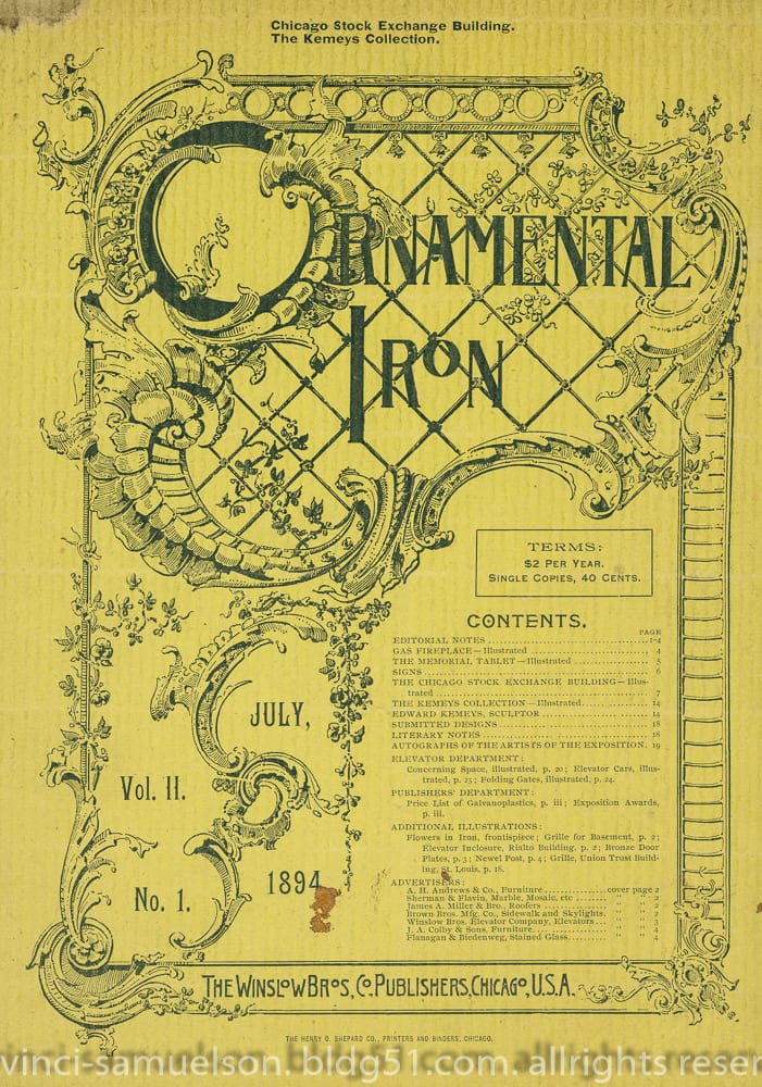 the images are featured in winslow brother’s 1894 issue of “ornamental iron” (volume two, number one) with text written in part by louis h. sullivan.