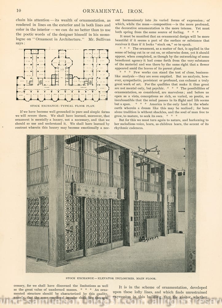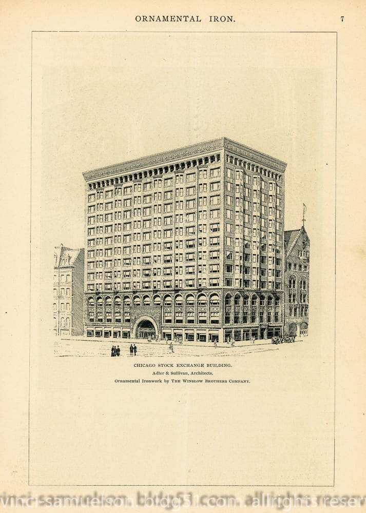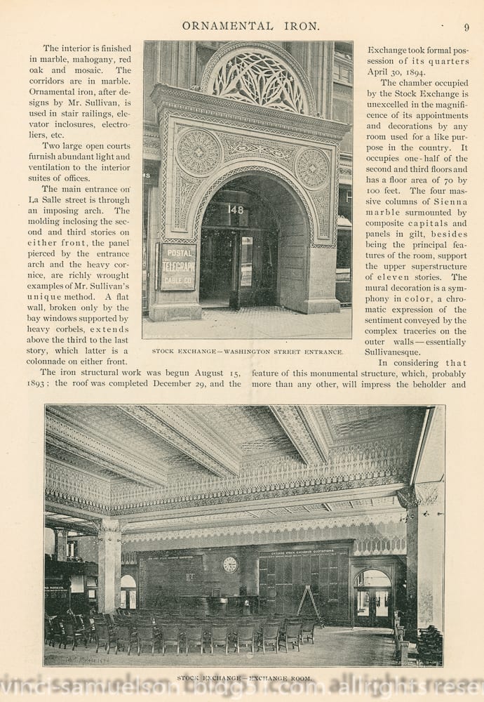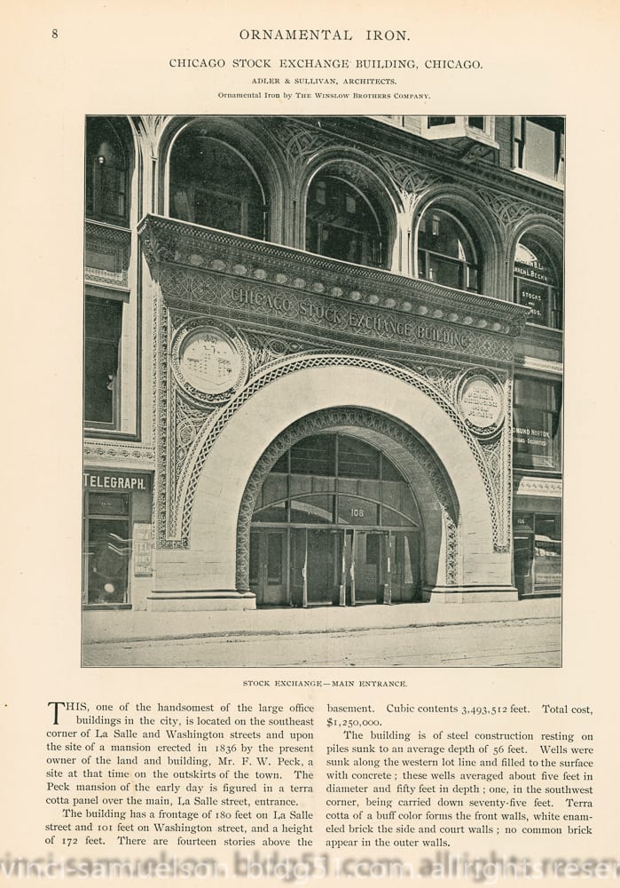 01 May adler & sullivan’s chicago stock exchange featured in july 1894 issue of winslow brothers’s “ornamental iron”
