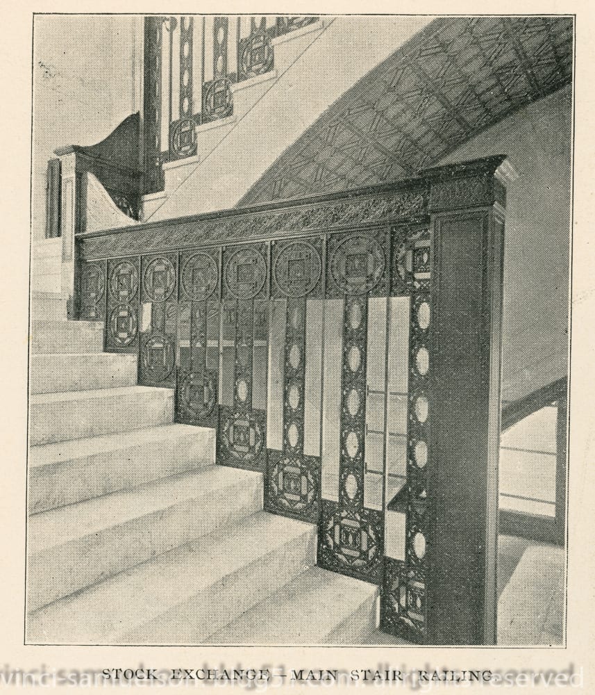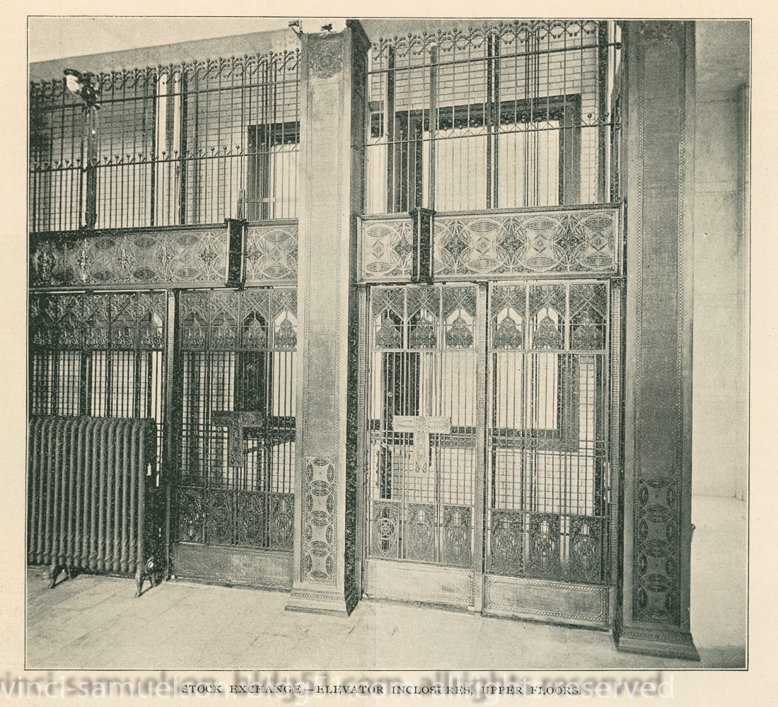 winslow fabricated ornamental ironwork for most of adler & sullivan’s larger commissions, including elevator screens, grilles, and staircases treated with a bower-barff and/or copper-plated finish.