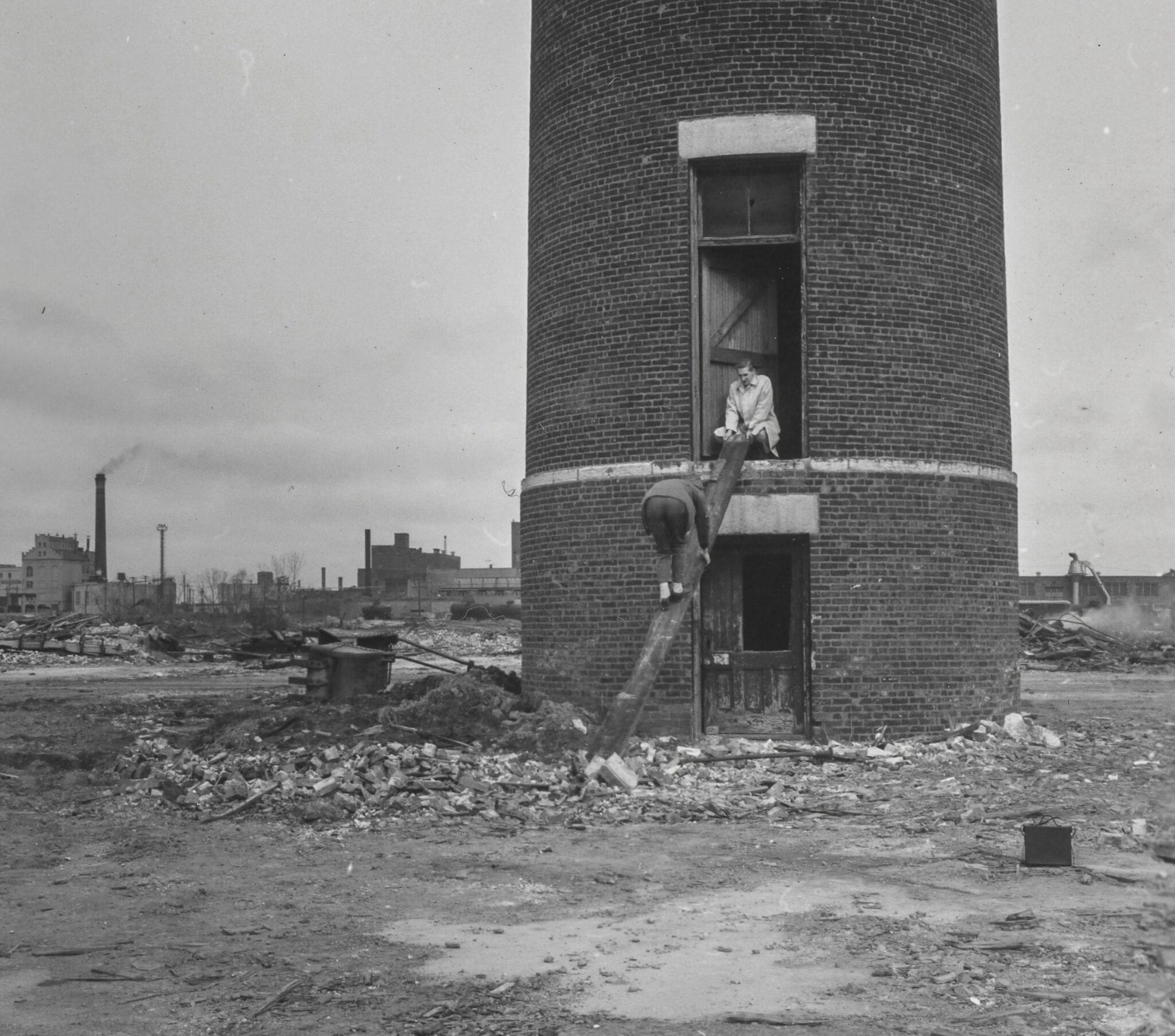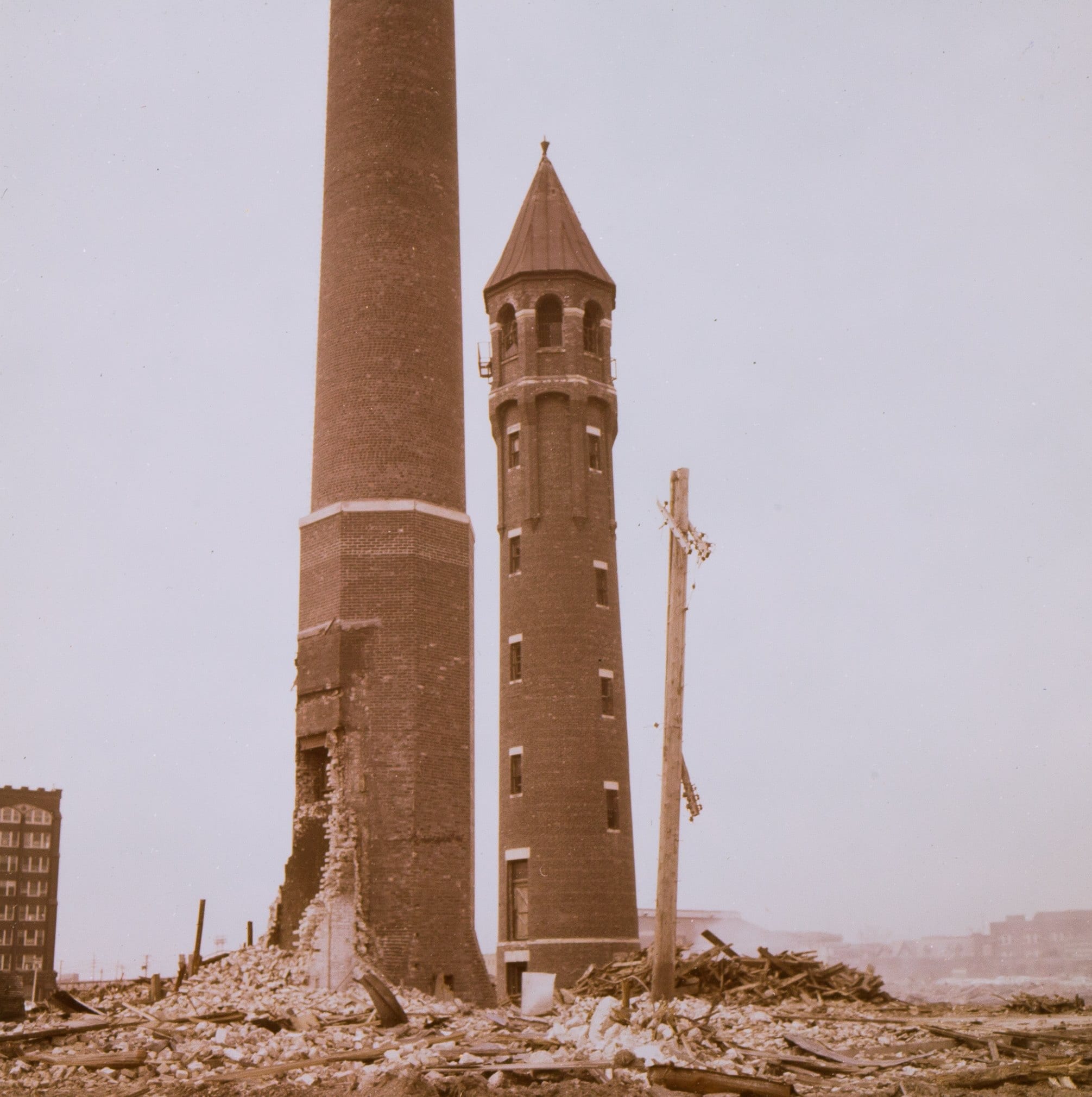 21 May burnham and root’s union stock yard water tower shortly before its demolition