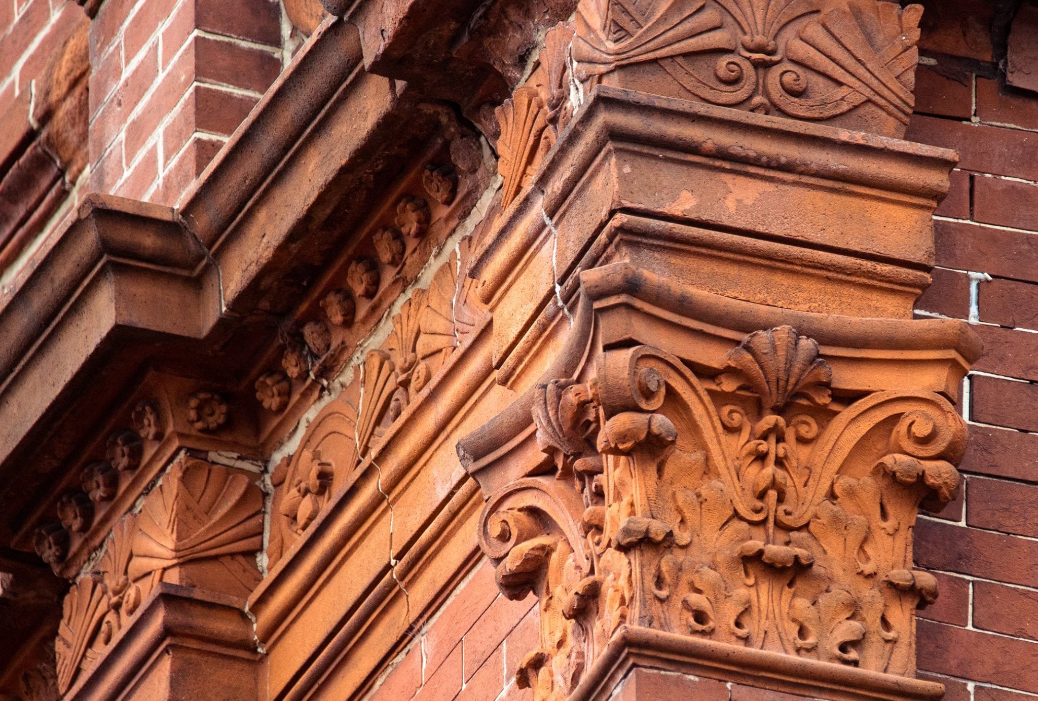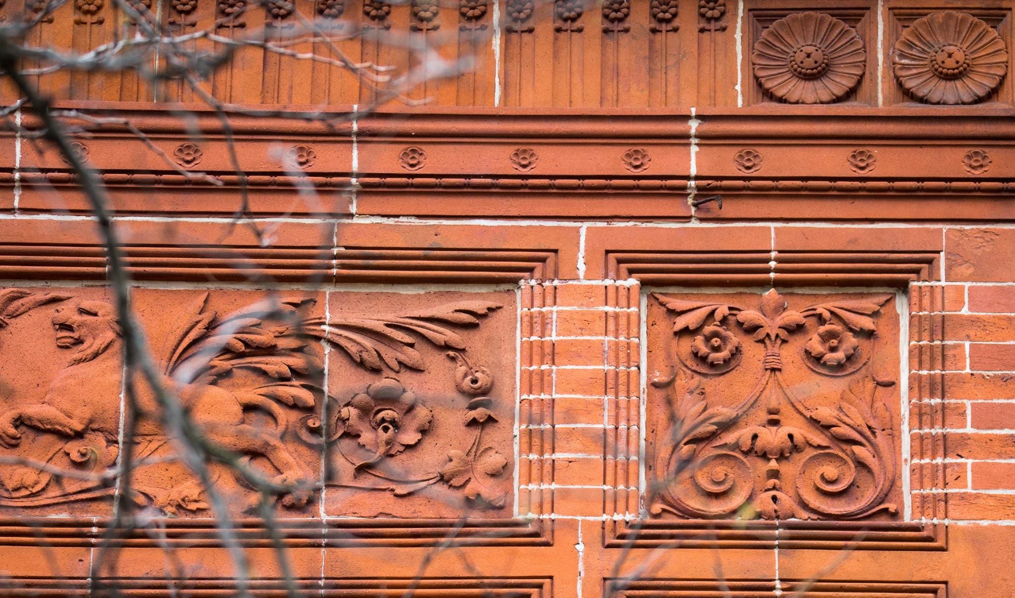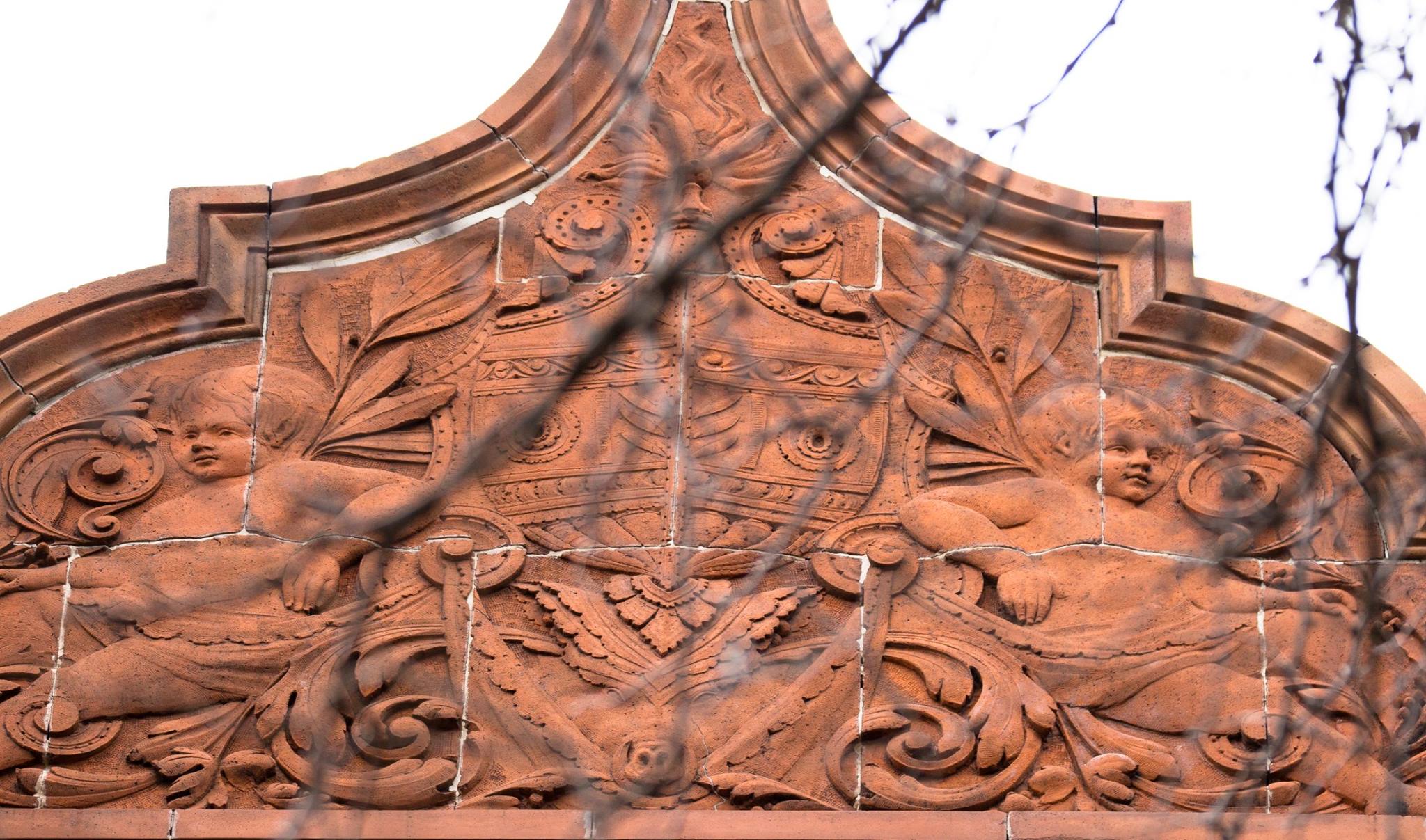 eric j. nordstrom photographic images of terra cotta ornament and art glass adorning the sidney a. kent residence (1883). the house was built for one of the founding members of the chicago union stockyard company. burnham & root, architects. ornament fabricated by northwestern terra cotta company.