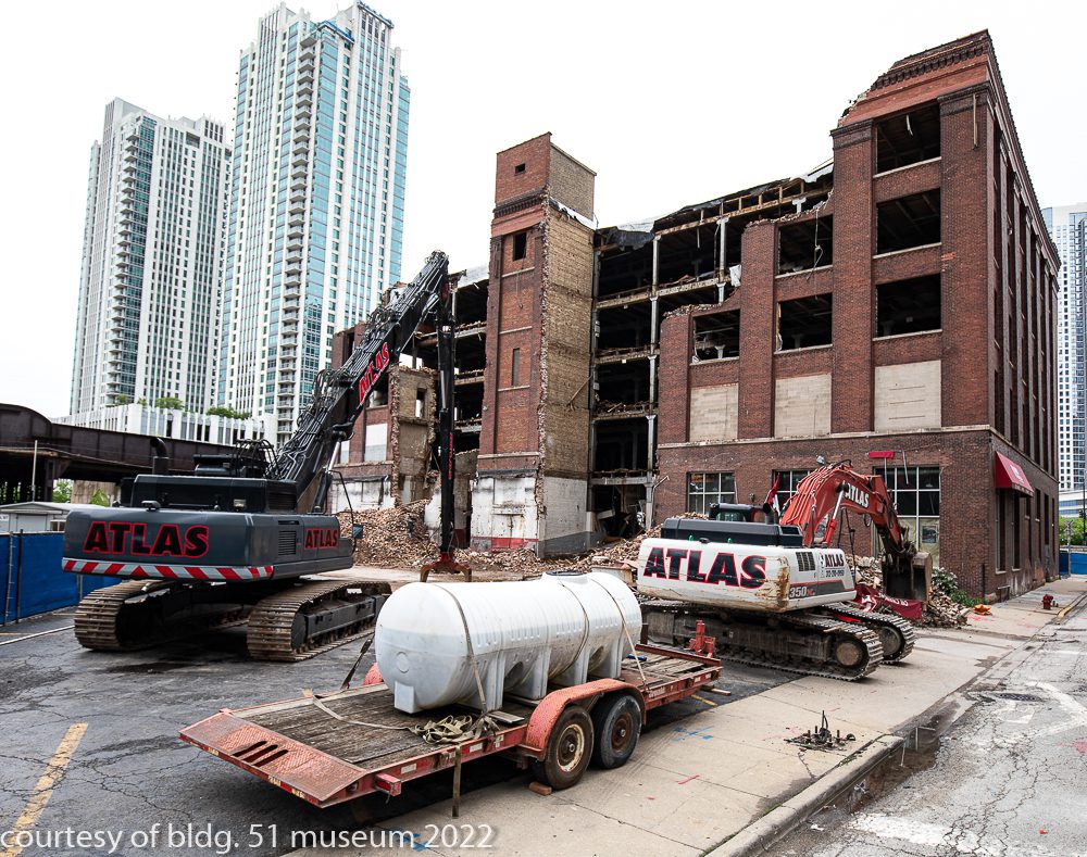 demolition of the old tyler and hippach mirror company factory building (1902) is well underway. located at 344. north canal street, the building was designed by notable chicago church architect henry j. schlacks.