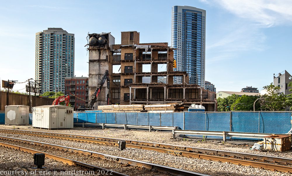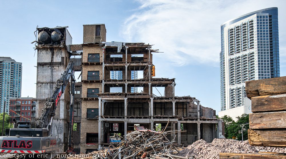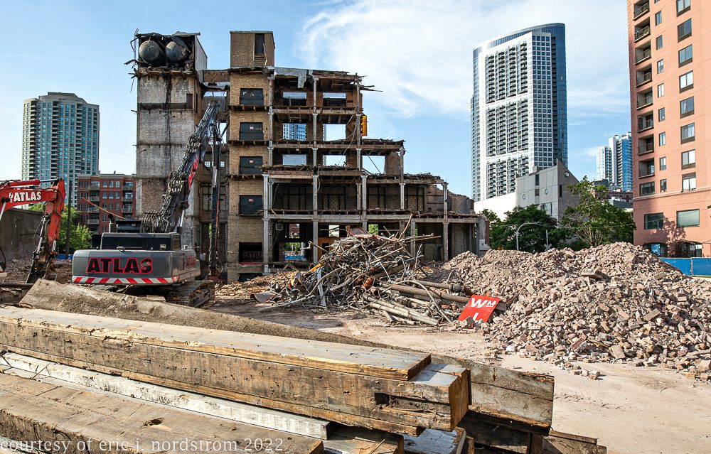 demolition of the tyler and hippach mirror company factory building (1902) is nearing completion. located at 344. north canal street, the building was designed by notable chicago church architect henry j. schlacks.
