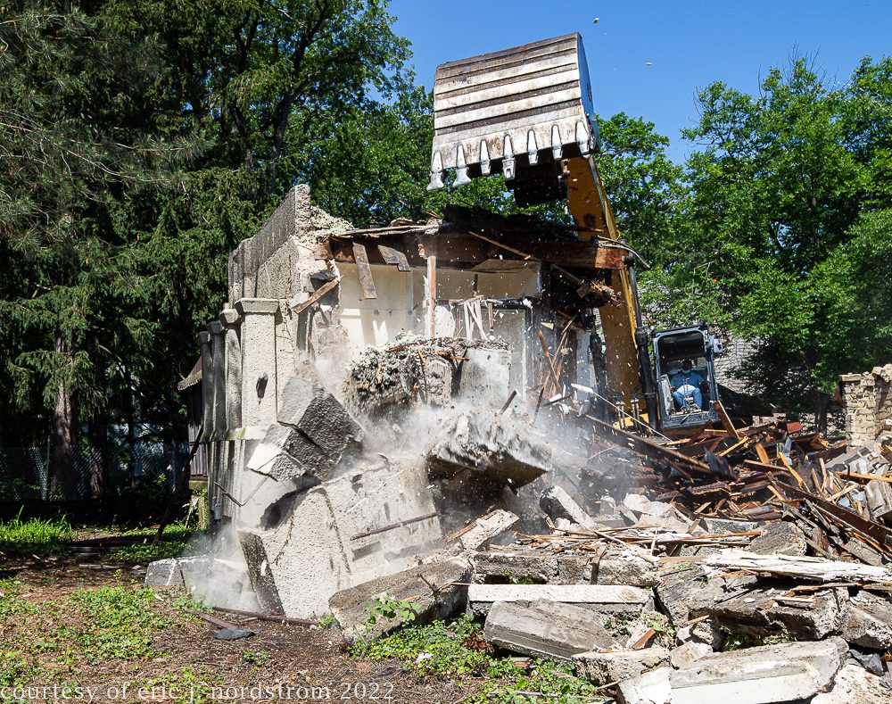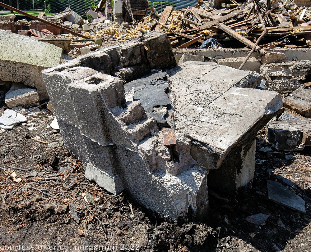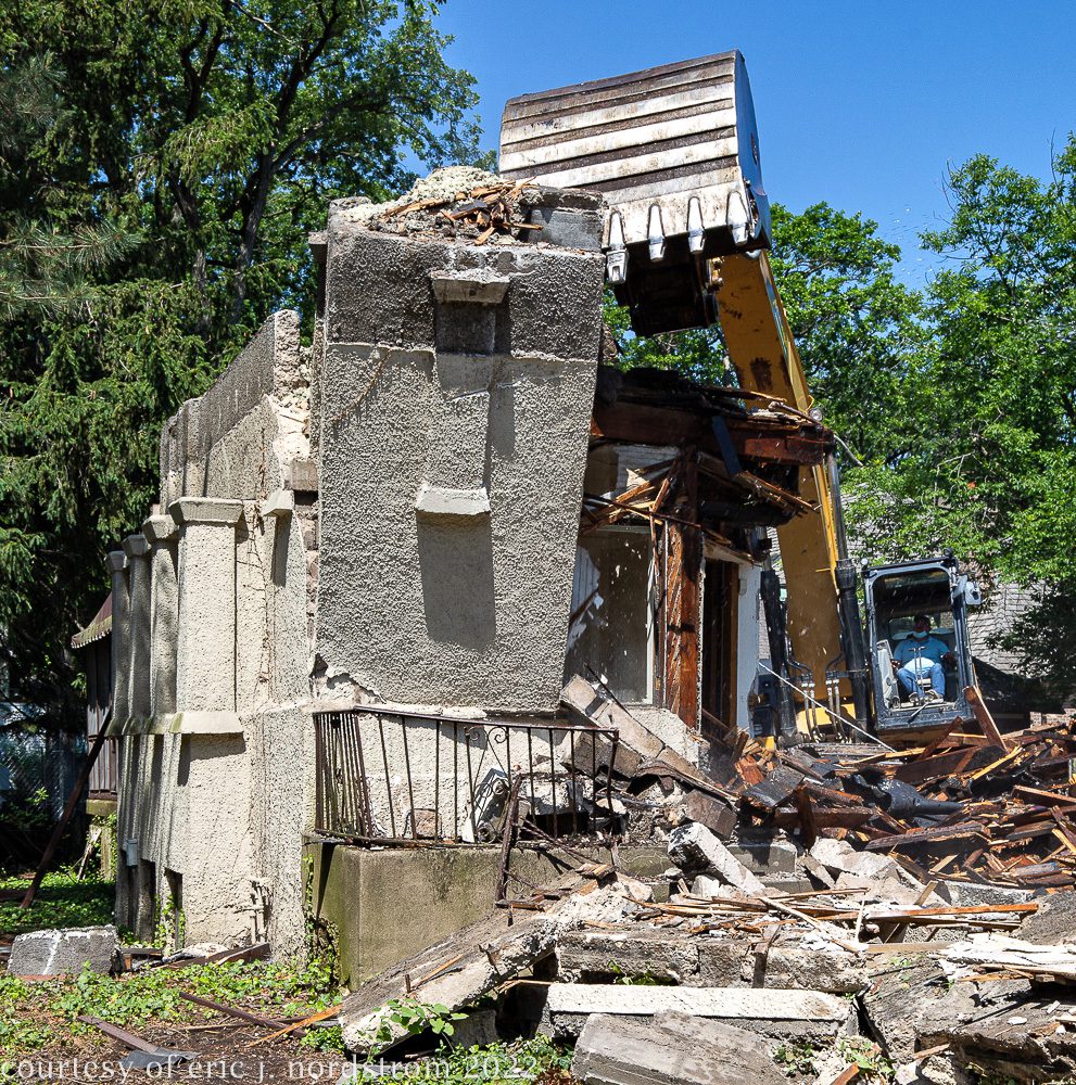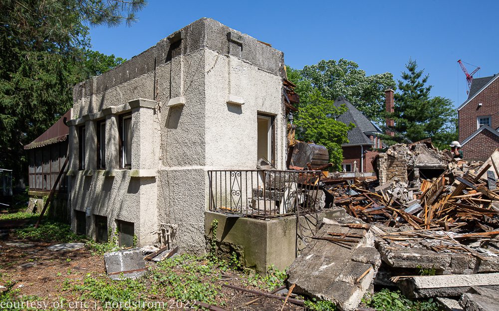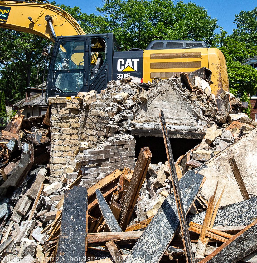 latest, and likely the last, set of images chronicling the destruction of walter burley griffin’s william f. temple house (1911), including building samples (concealed in 1918 when house was heavily altered by barry byrne) collected and documented from the demolition site.