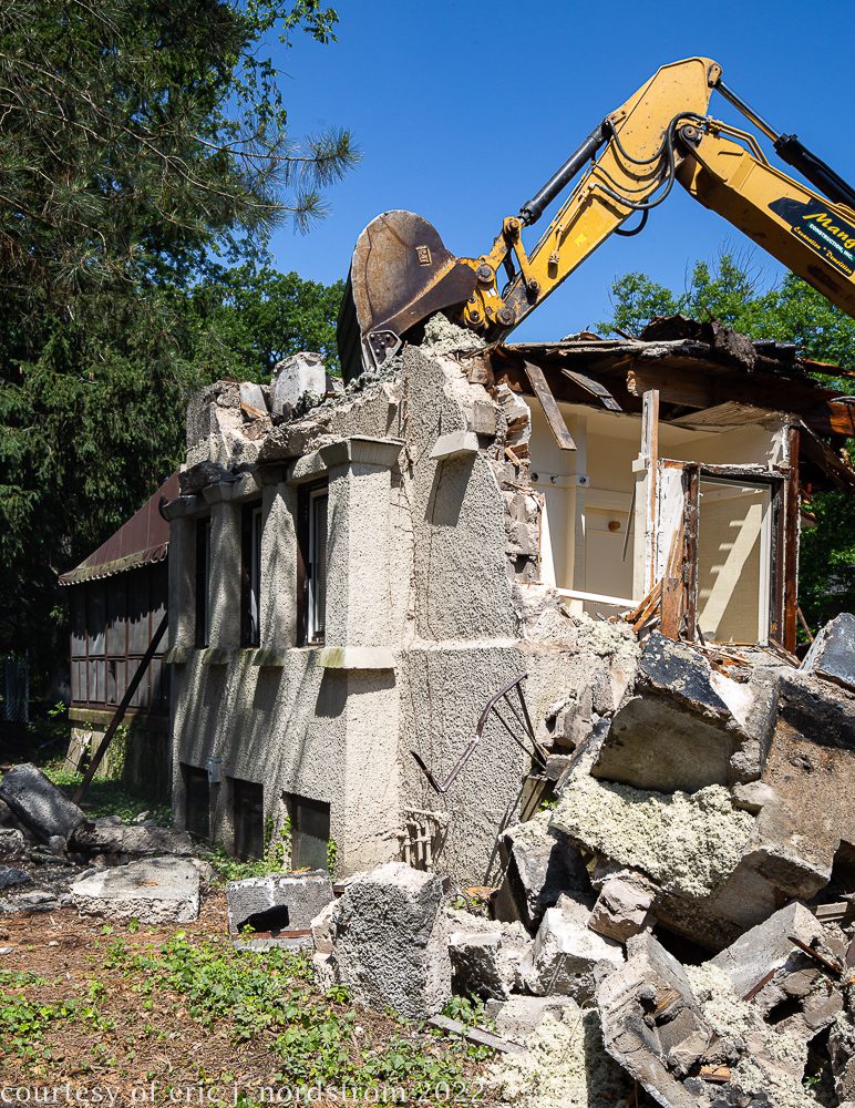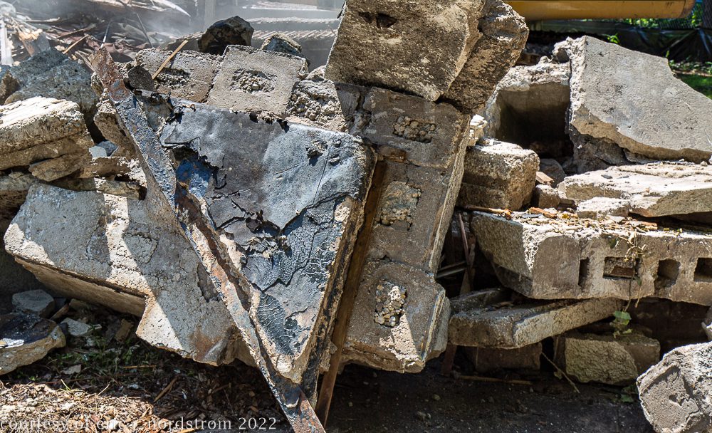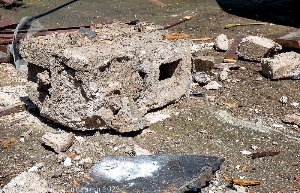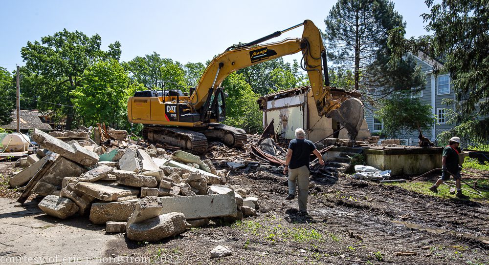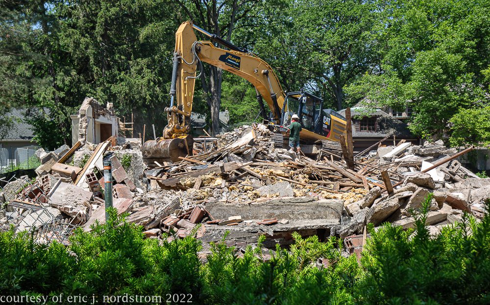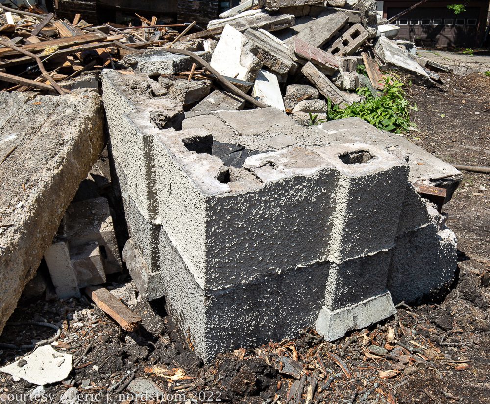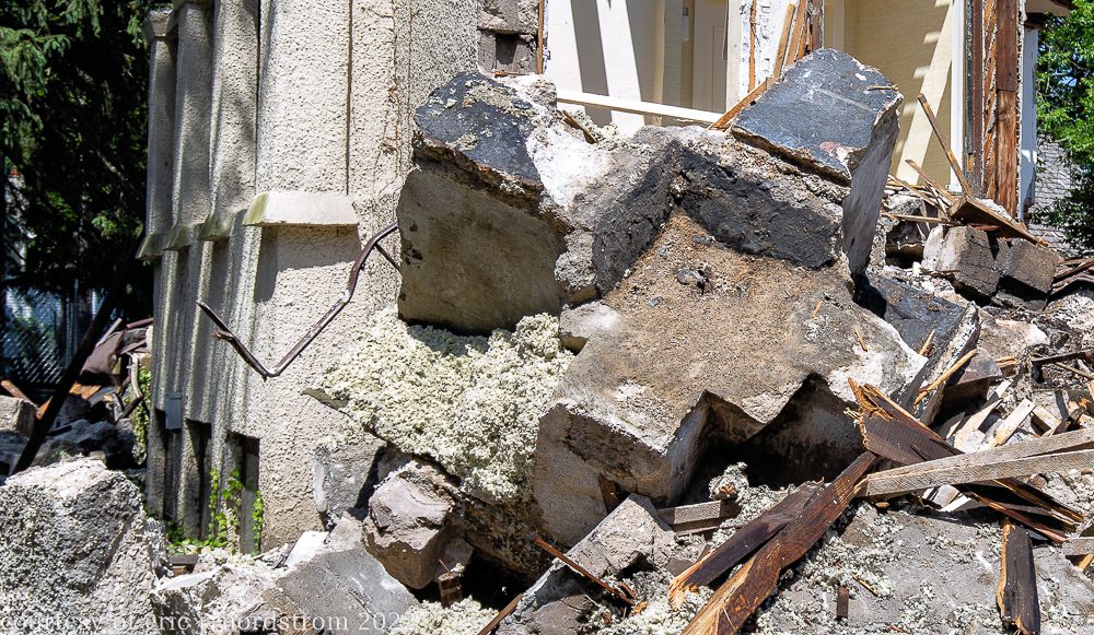 latest, and likely the last, set of images chronicling the destruction of walter burley griffin’s william f. temple house (1911), including building samples (concealed in 1918 when house was heavily altered by barry byrne) collected and documented from the demolition site.