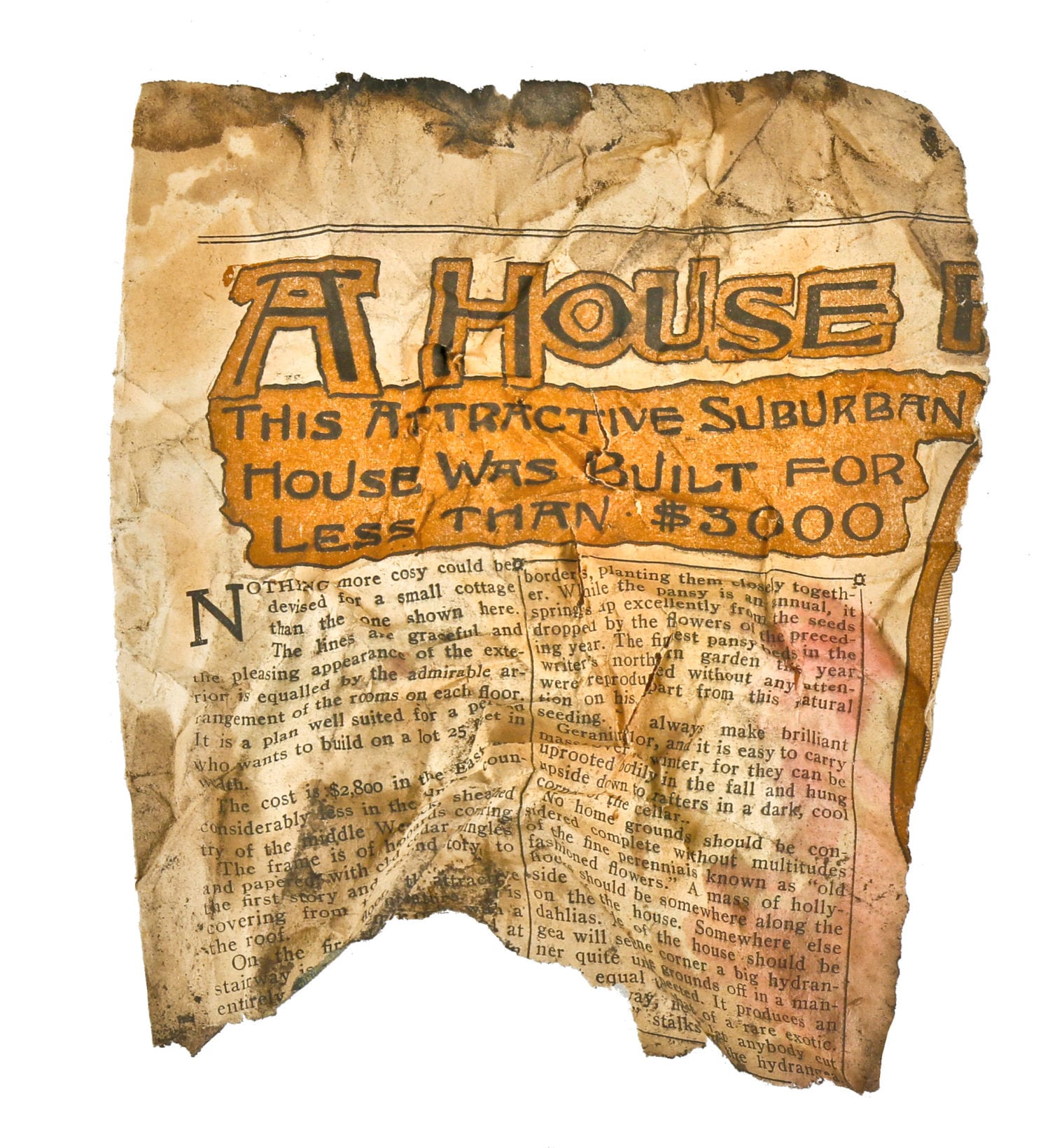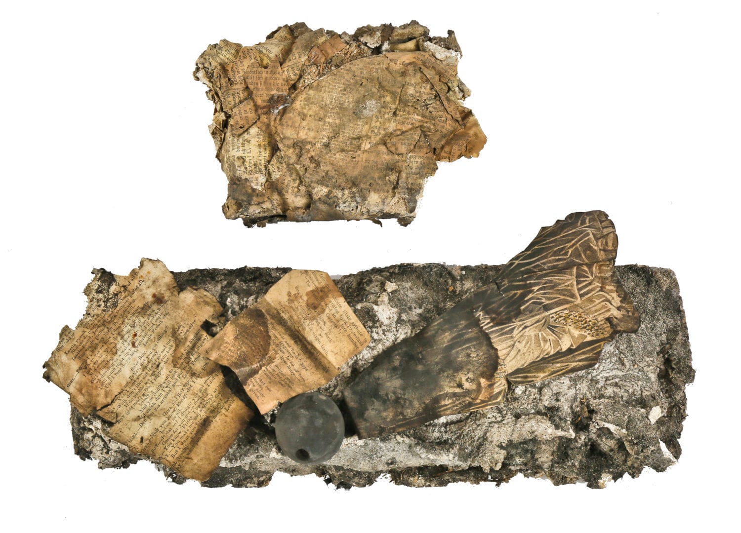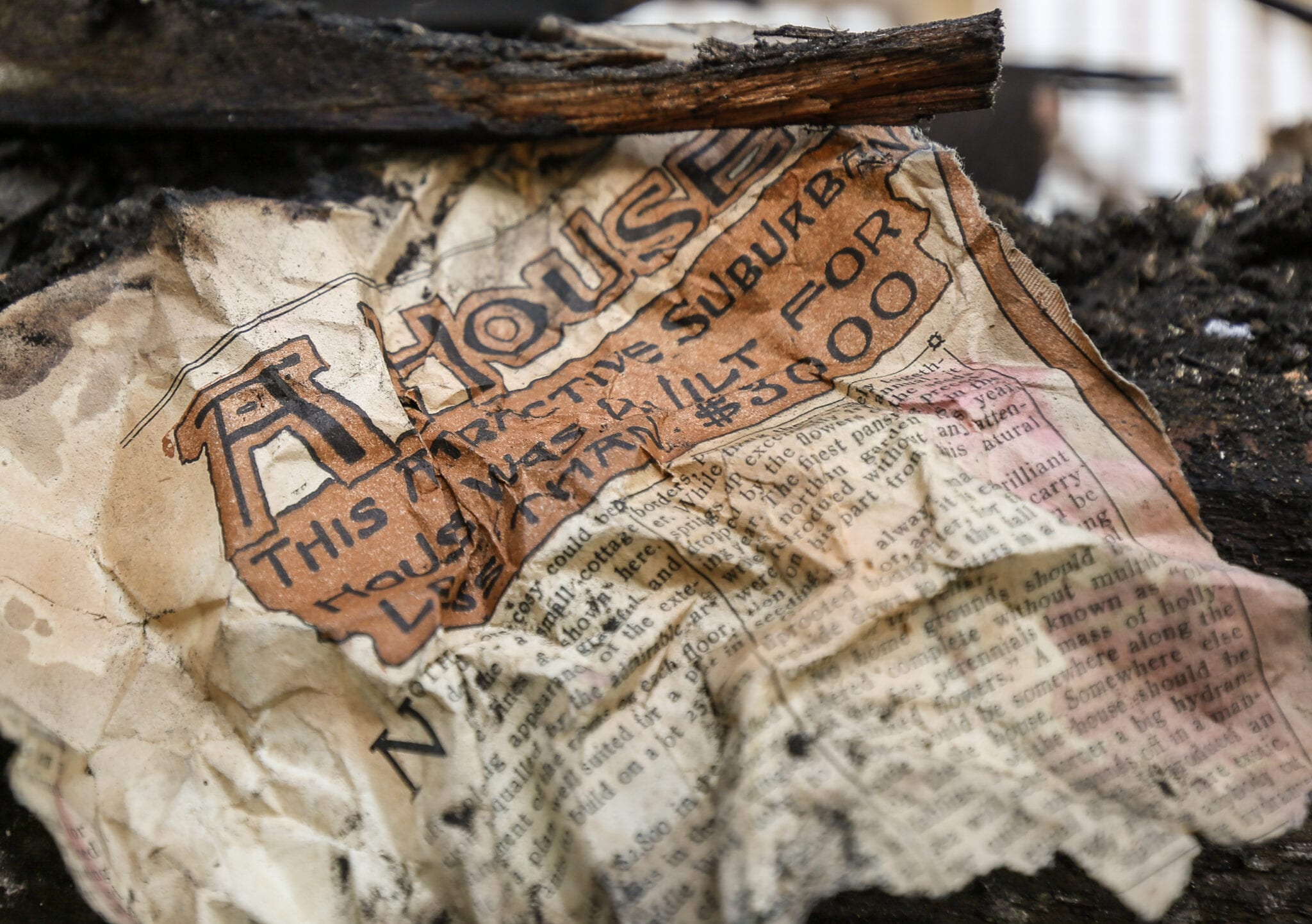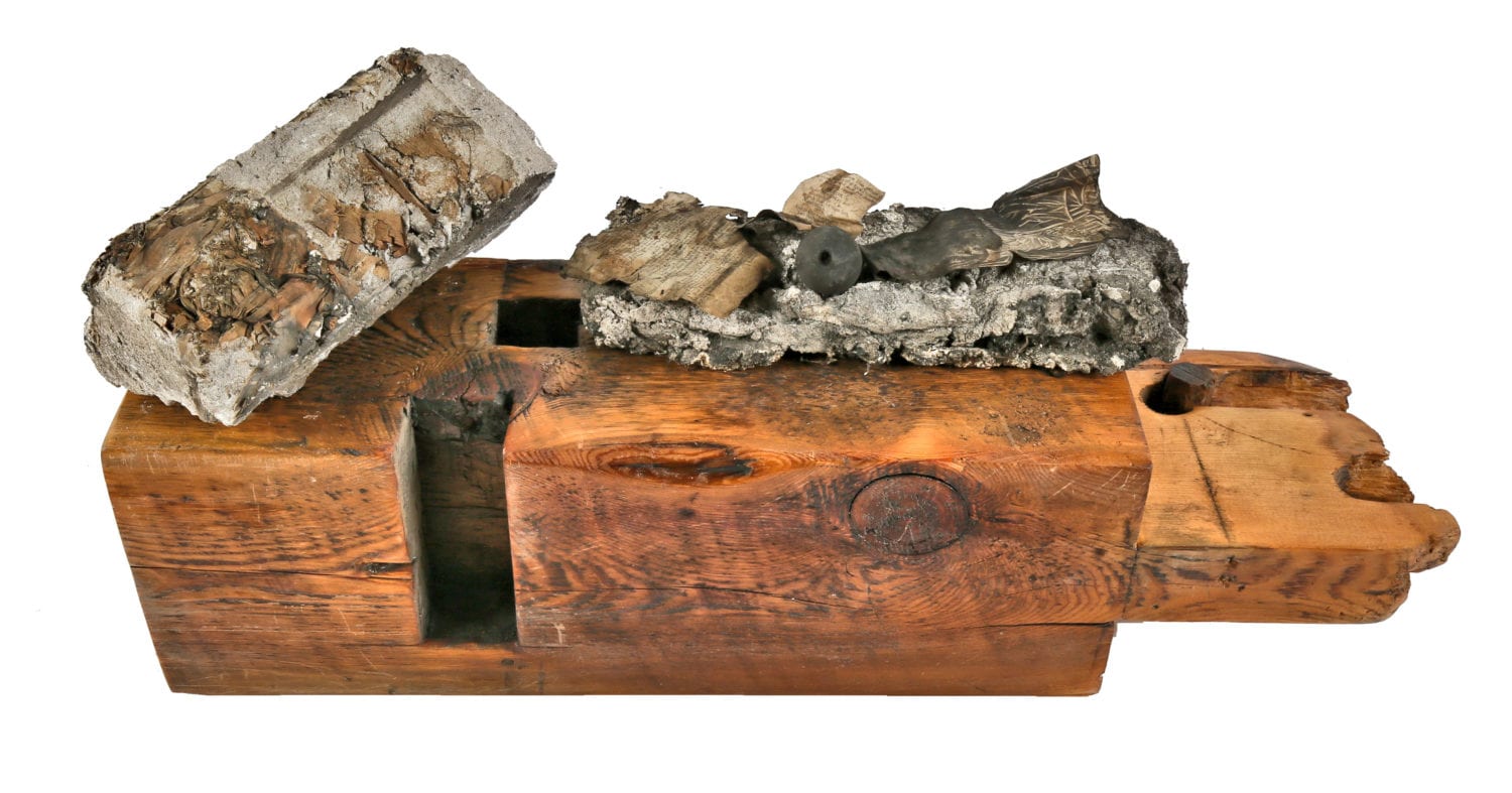 photographic study of 19th century objects discovered in stud cavity of post-fire chicago cottage during its demolition