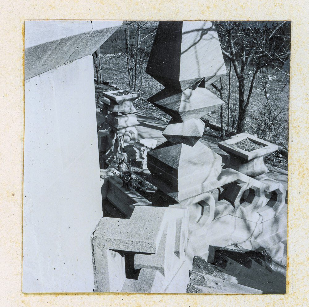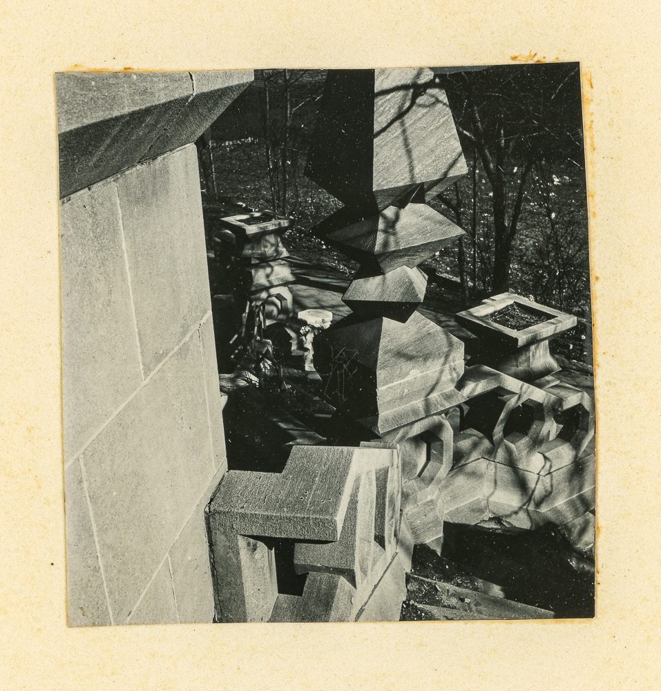 unidentified institute of design student photo album (discovered in the house shortly before demolition) of washington porter’s kiosk sphinx taken between 1954-57. the cast concrete complex was demolished in september of 1957 to make way for chicago housing authority’s lakefront properties.