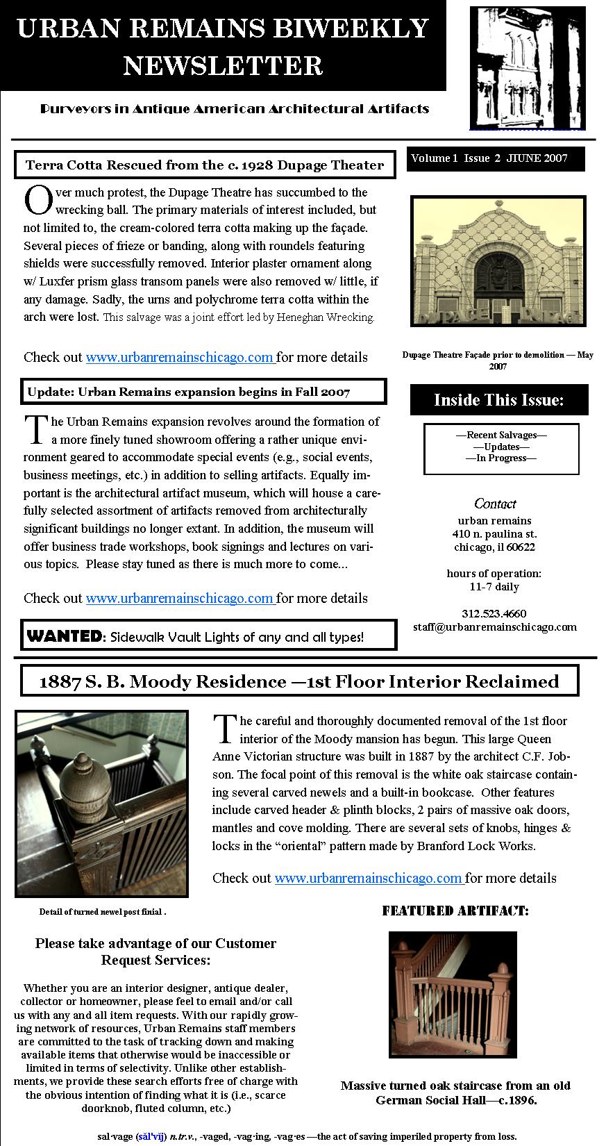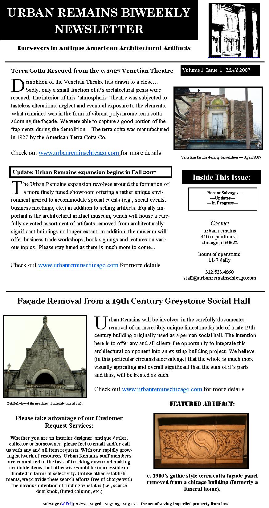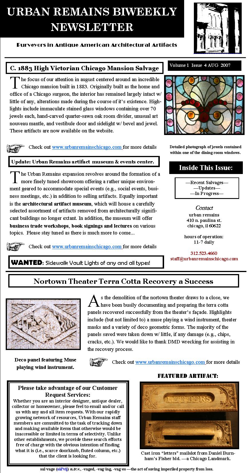 17 Aug urban remains newsletters pre-dating website recently found and digitized over the weekend