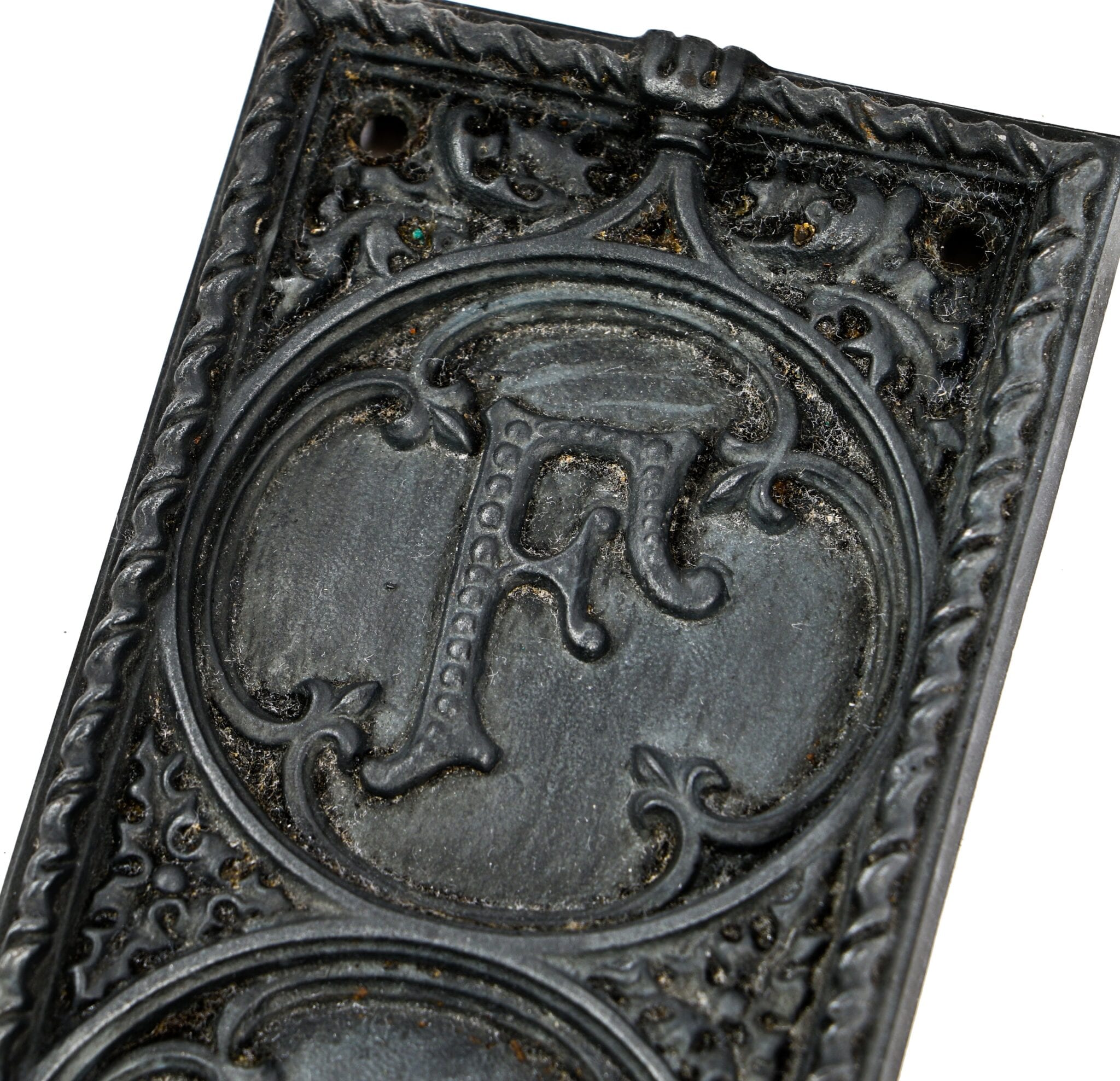 the 19th century saw new technologies emerge in all areas of production, including improvements in metallurgical processes that shifted use of materials in all areas of life, from construction to household goods. the bower-barff process is one such development, a method of making iron rust-resistant that became ubiquitous in its use and appears in victorian-era hardware and ironwork as a highly desirable blue-grey or blue-black finish, one that still preserves the sharp outline of designs.