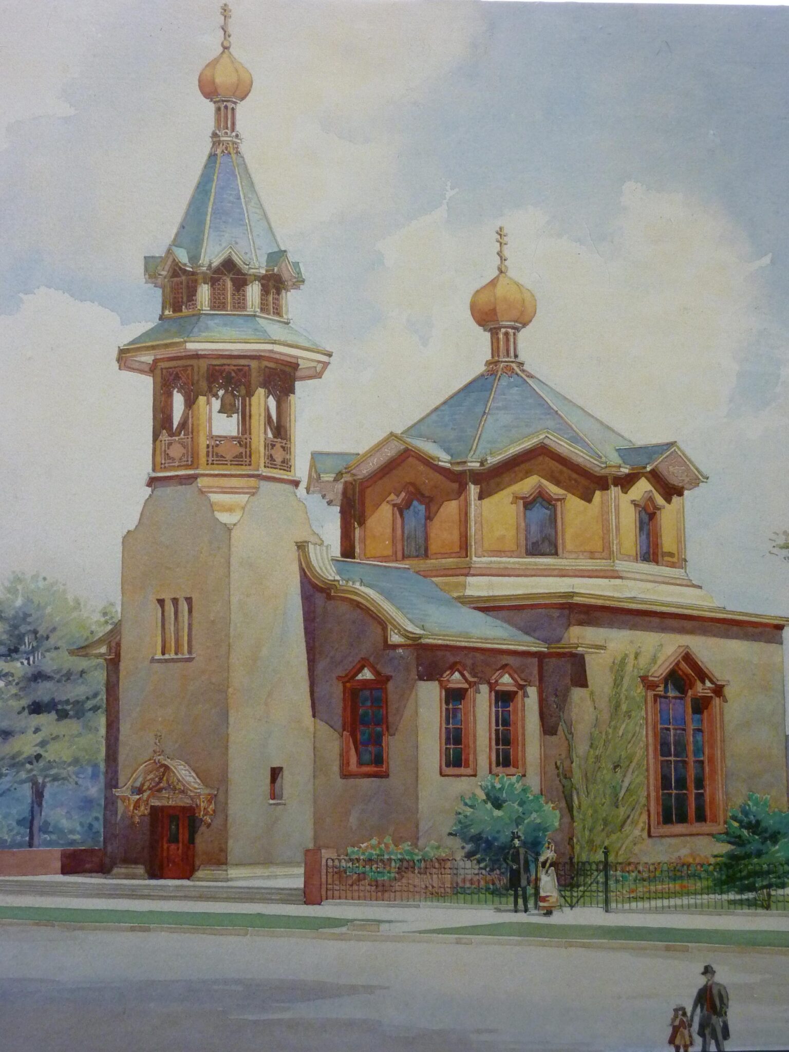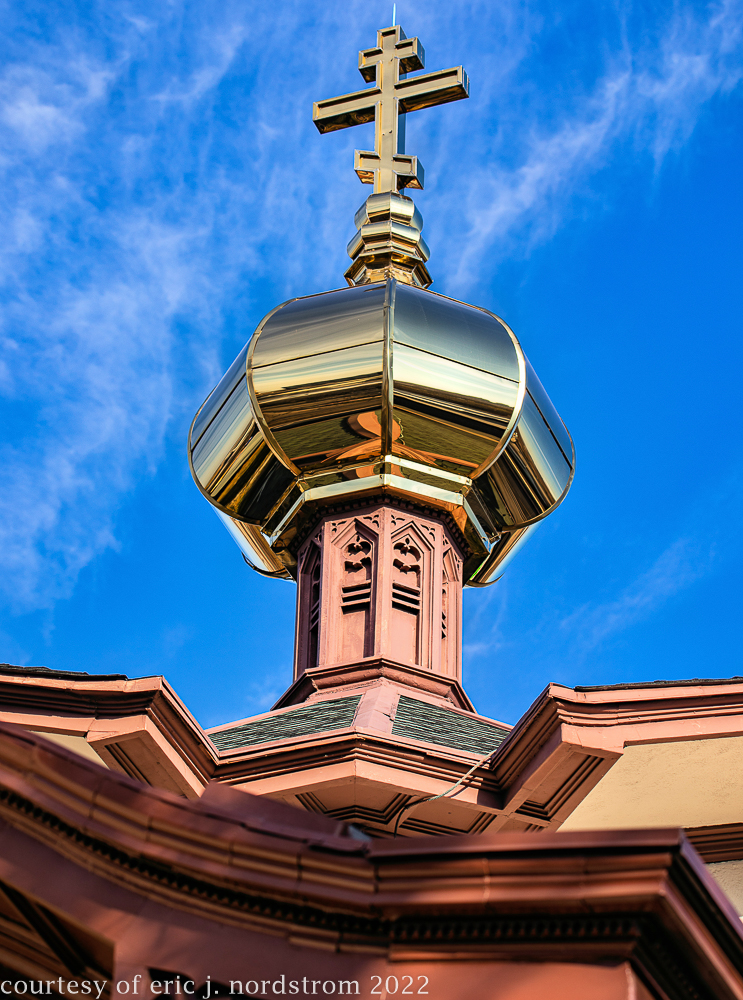 the church retains many features of russian provincial architecture, including an octagonal dome and a frontal belltower. it is believed that the emigrants wished the church to be “remindful of the small, intimate, rural buildings they left behind in the old world.