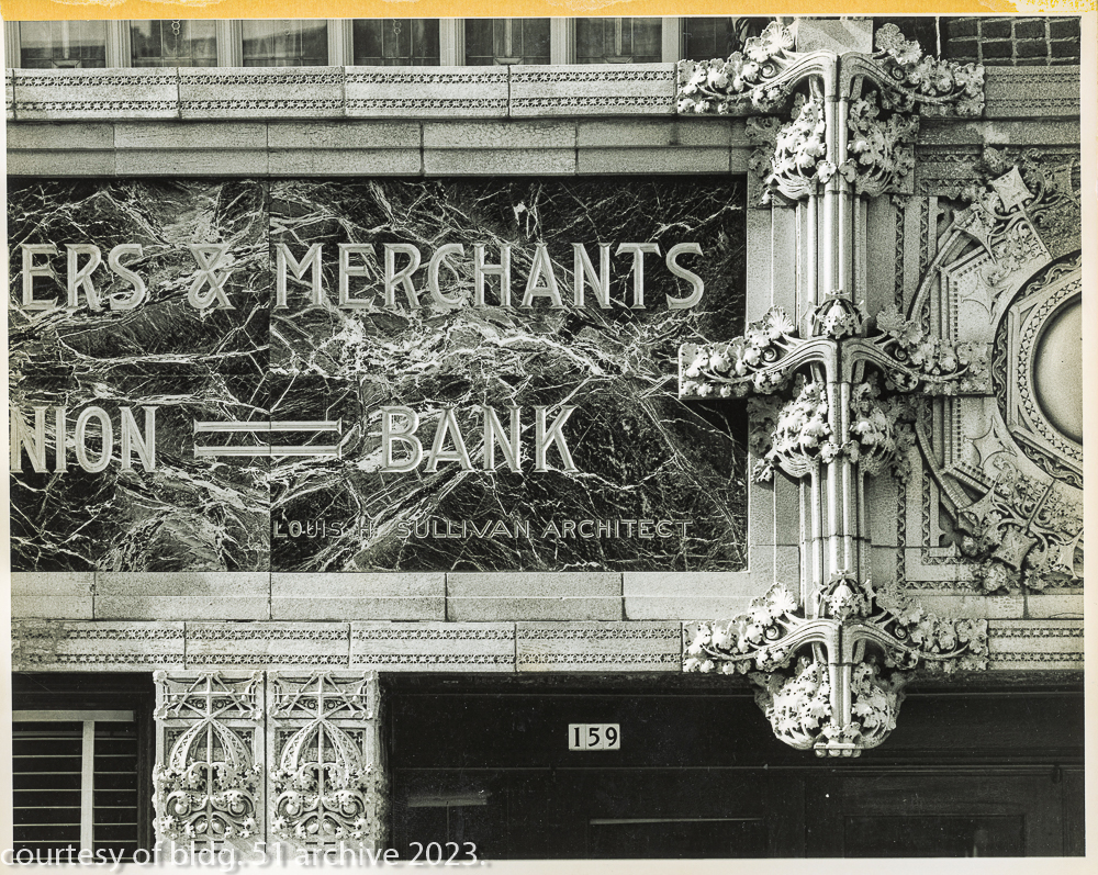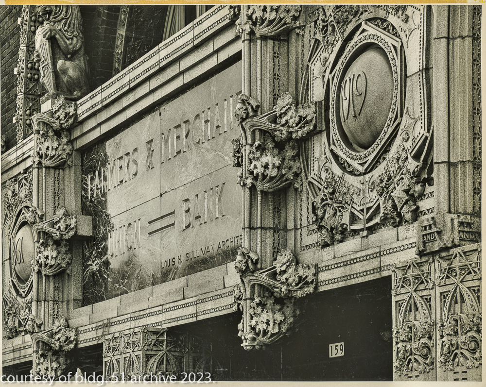 the bldg. 51 museum and archive recently purchased a critical mass of early richard nickel prints, with the majority dating to the 1950s, when nickel was a student at the institute of design (ID). the body of work includes, but not limited to, adler and sullivan’s auditorium building and subsequent restoration by crombie taylor, sullivan’s bank buildings (includes work by siskind and fellow id students), adler and sullivan drawings (which at the time, were in frank lloyd wright’s possession), and documentation of the schiller building (1892) durings its demolition in 1960-61.