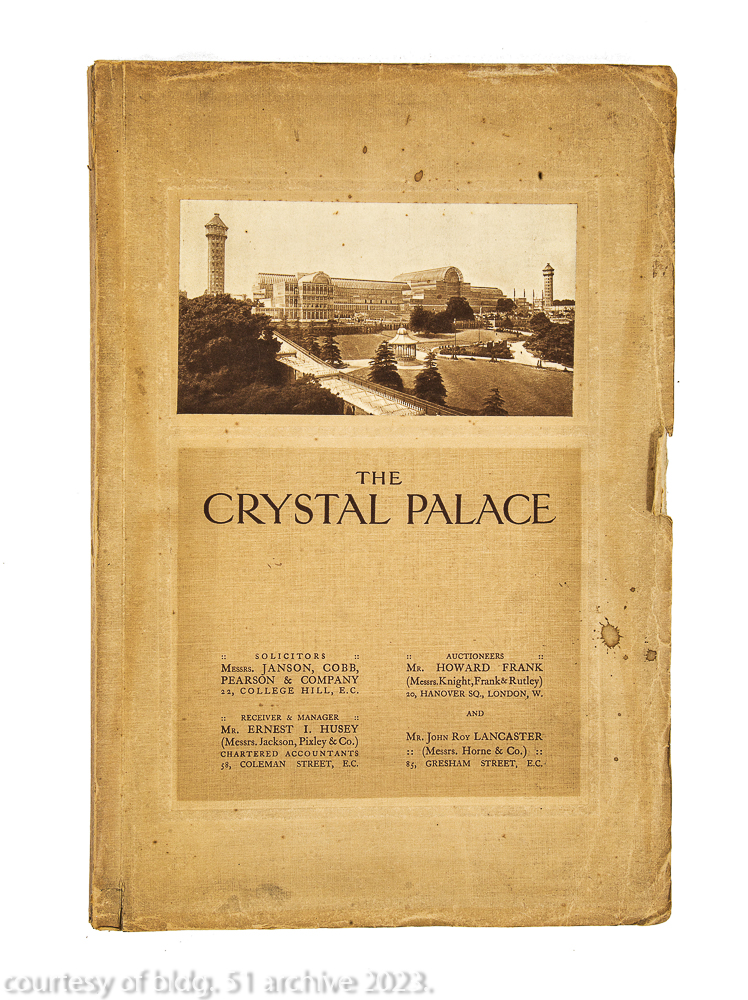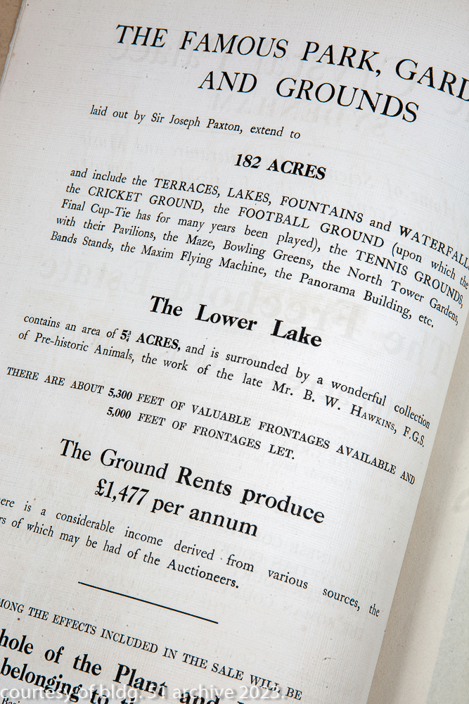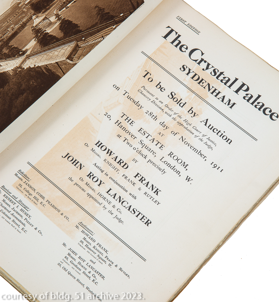 the crystal palace, sydenham. to be sold by auction on tuesday 28th day of november, 1911 at the estate room, 20, hanover square, london.