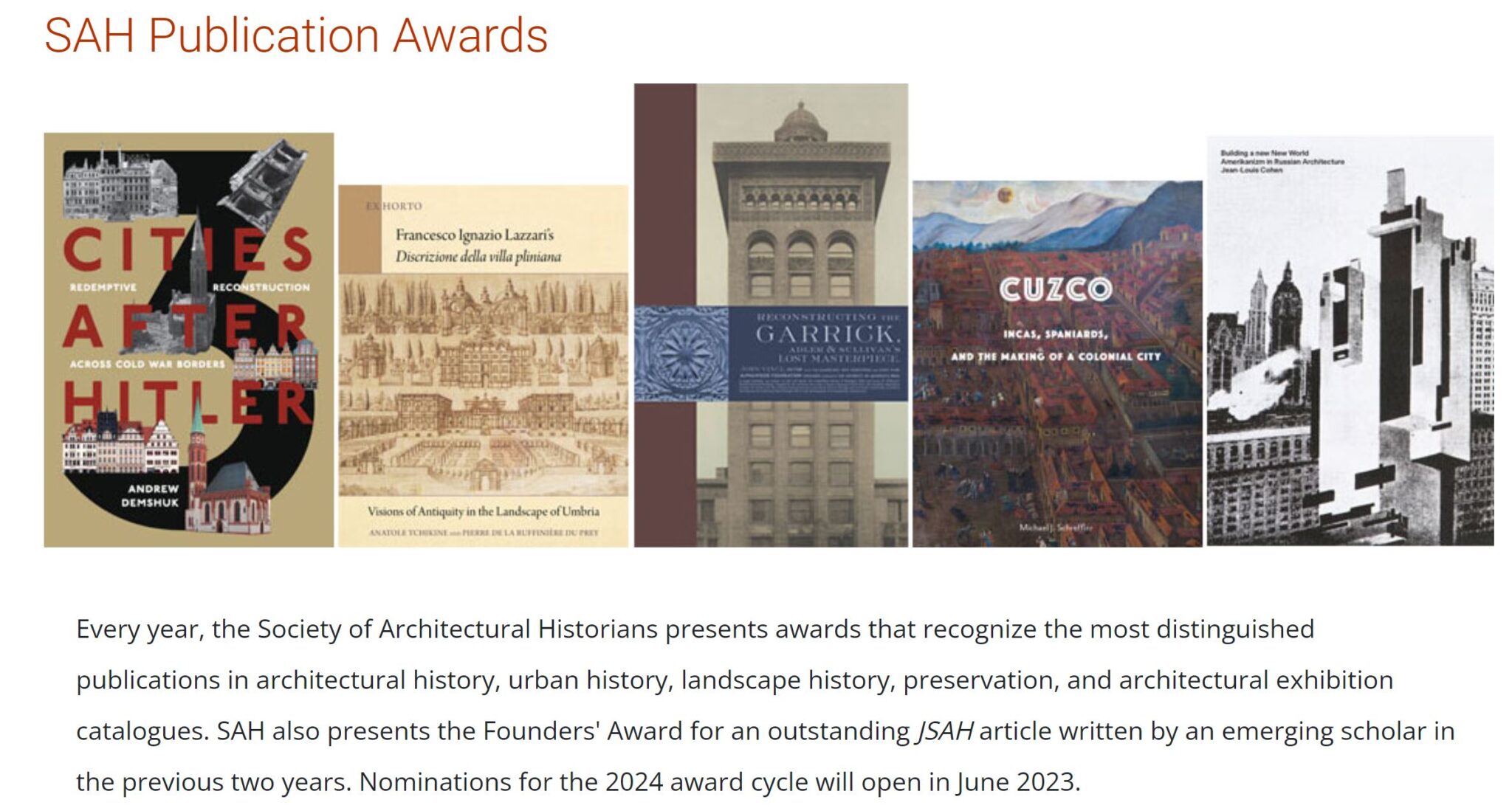 The 2023 Antoinette Forrester Downing Book Award Committee of SAH has unanimously chosen as this year’s