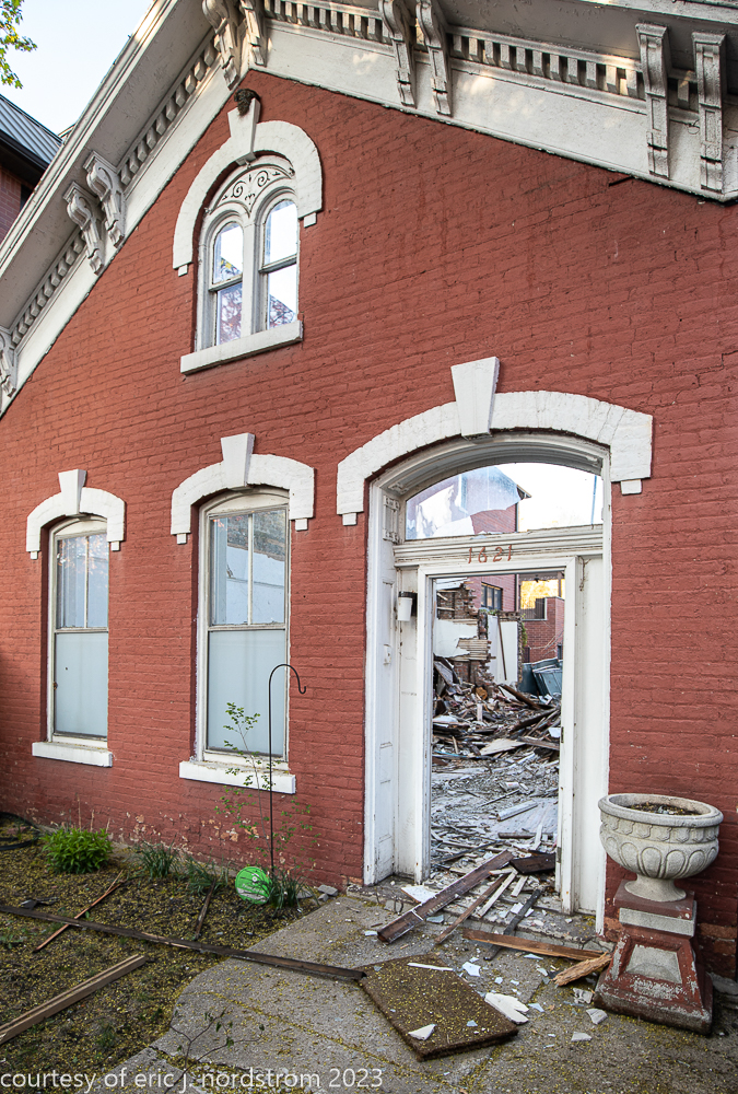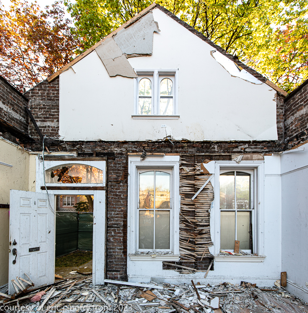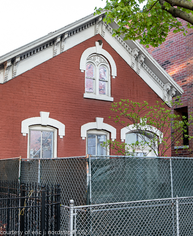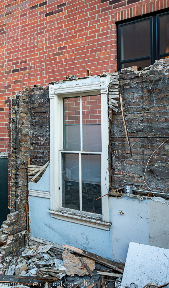 unfortunately, the fret-sawn bracketed wood cornice and double arched window with incised spandrel, were reduced to splinters and trucked off to the landfill.