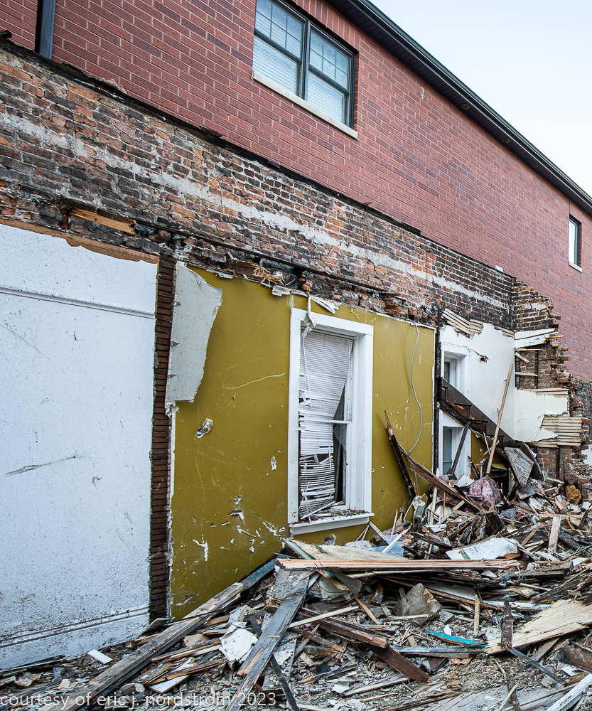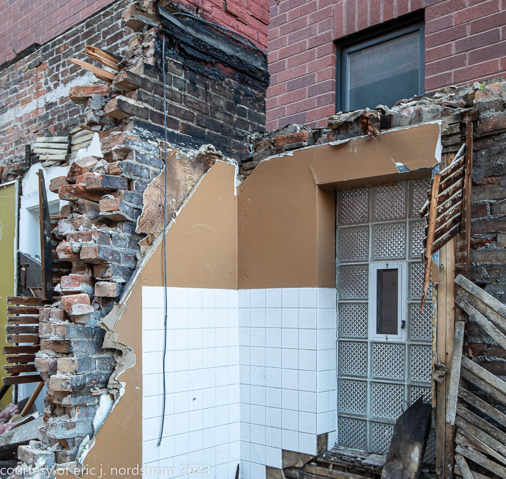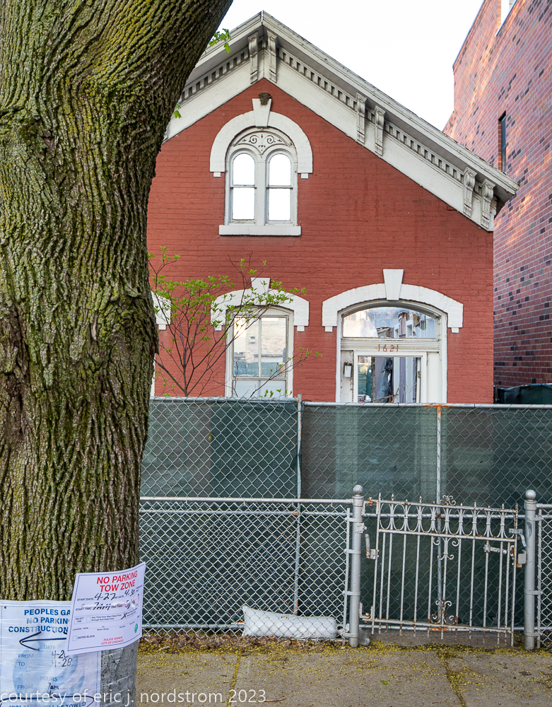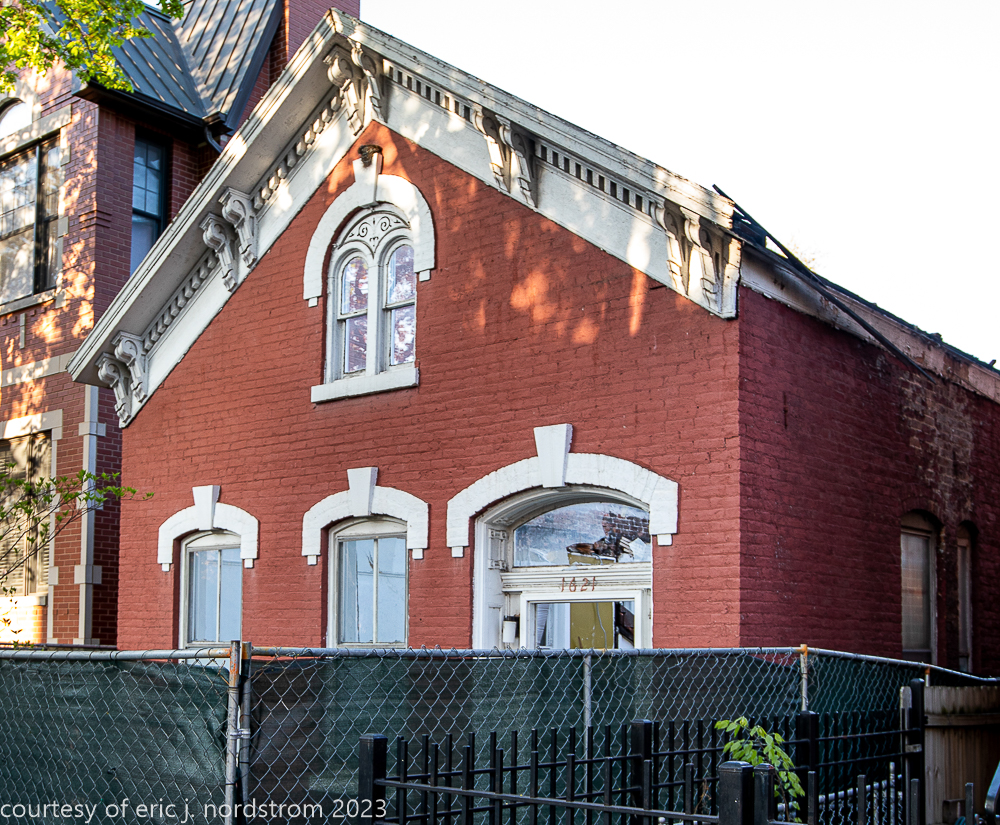 unfortunately, the fret-sawn bracketed wood cornice and double arched window with incised spandrel, were reduced to splinters and trucked off to the landfill.