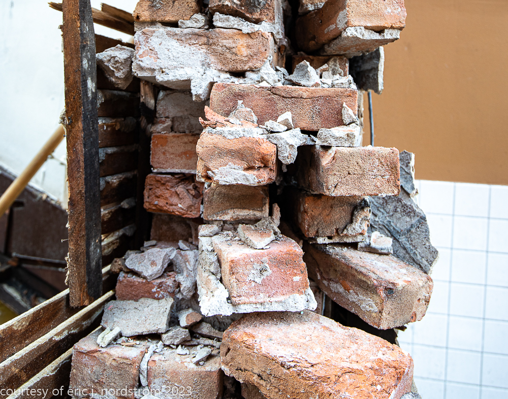 after documenting the brick cottage before, during, and after its disappearance from the cityscape ever since it landed on the demolition delay list some months ago, i managed to salvage the four unornamented lemont limestone window and door keystones buried in the rubble.