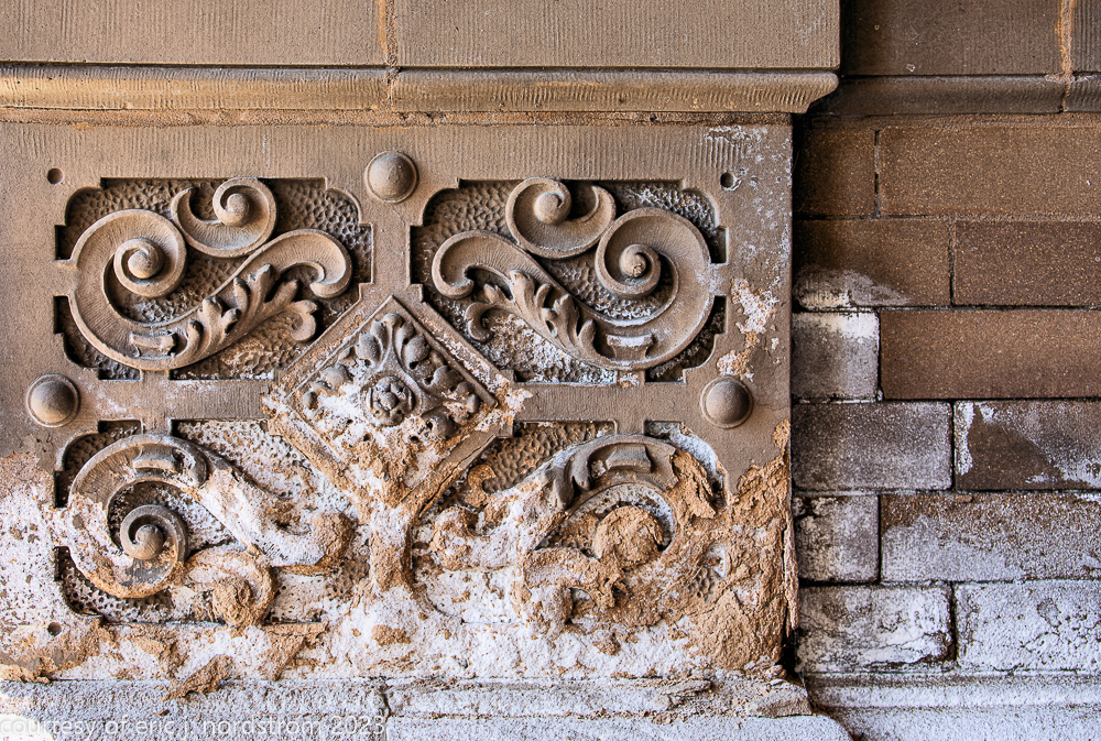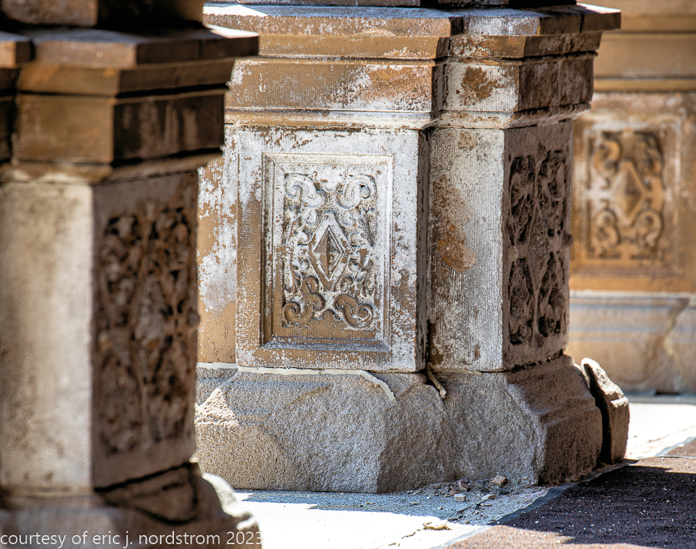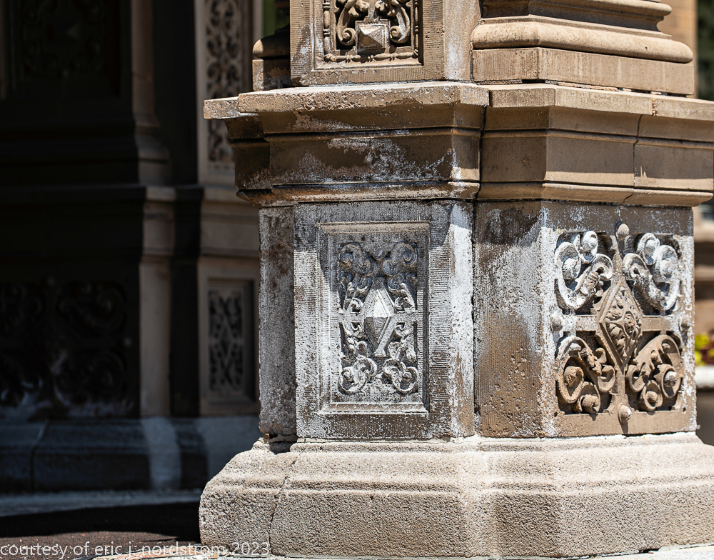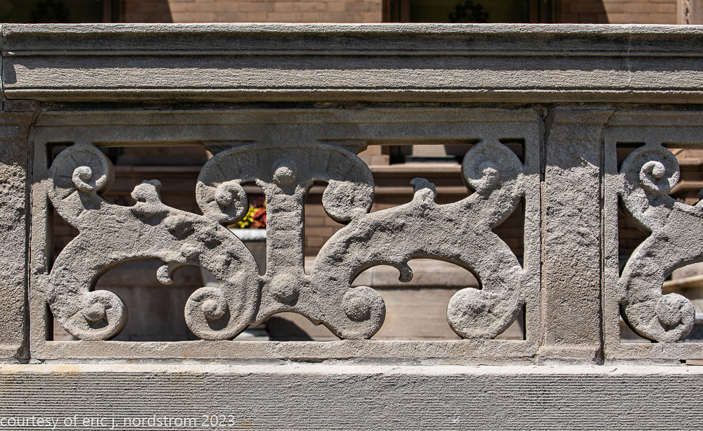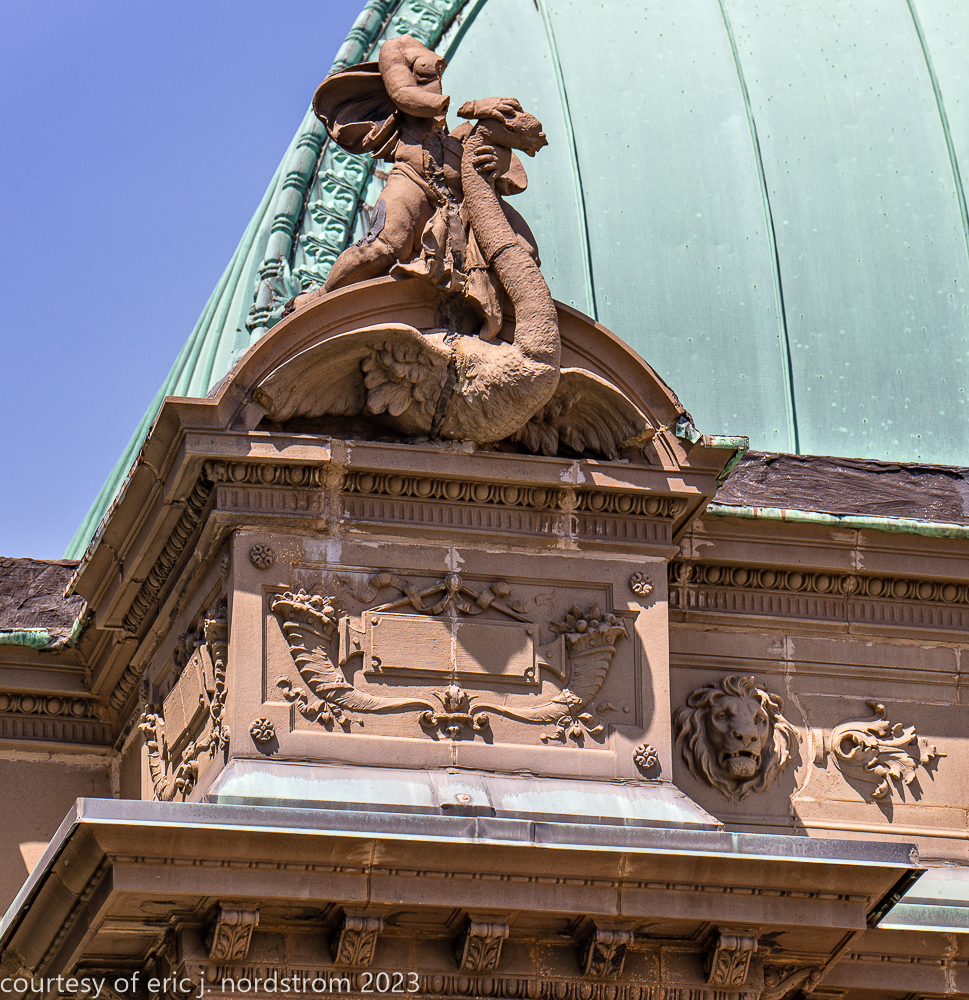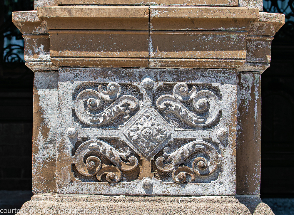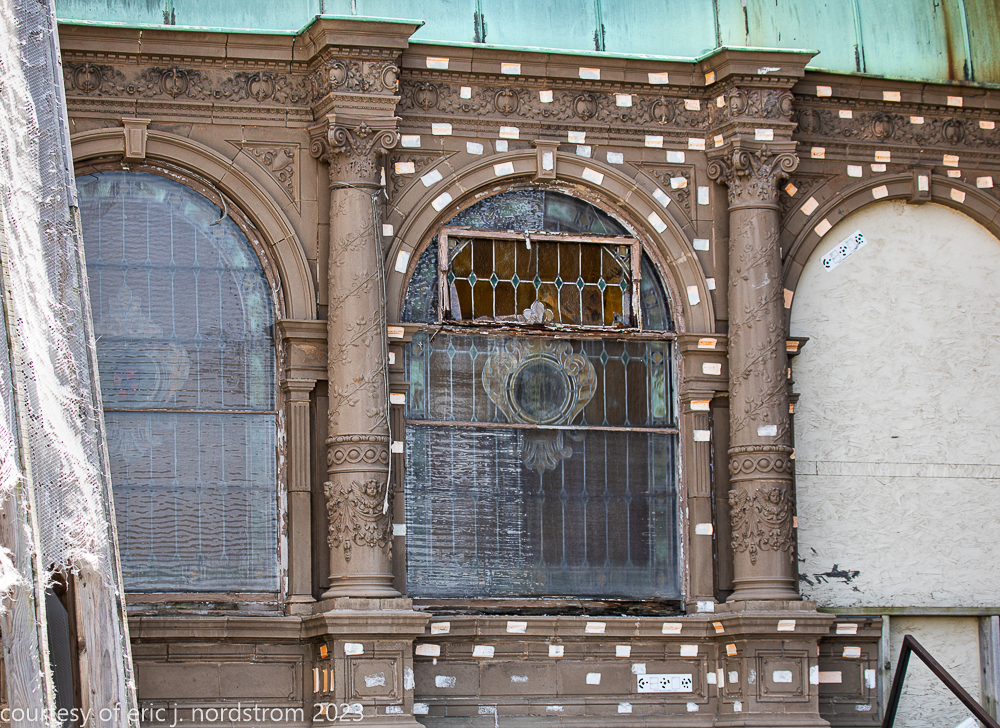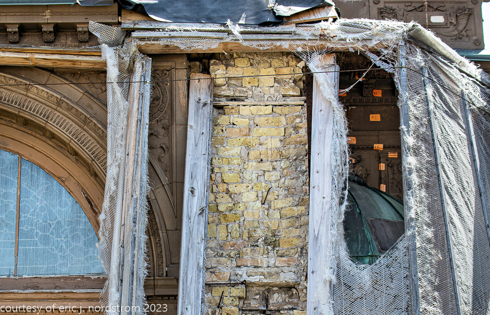 the exterior buff-colored ornamental terra cotta ornament on the flemish renaissance revival-styled frederick mansion (george ferry, architect, 1892) is in need of serious repair (see images below). restoration of the adjoining 1893 world’s fair pabst beer pavilion (designed by architect otto strack, who also designed the extant pabst theater), is underway, with the boston terra cotta company replicating and replacing the structure’s original terra cotta that was executed by the northwestern terra cotta company, chicago, ills. further information will be provided when time permits.