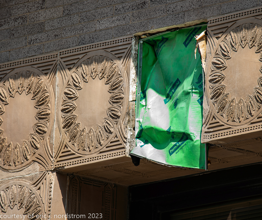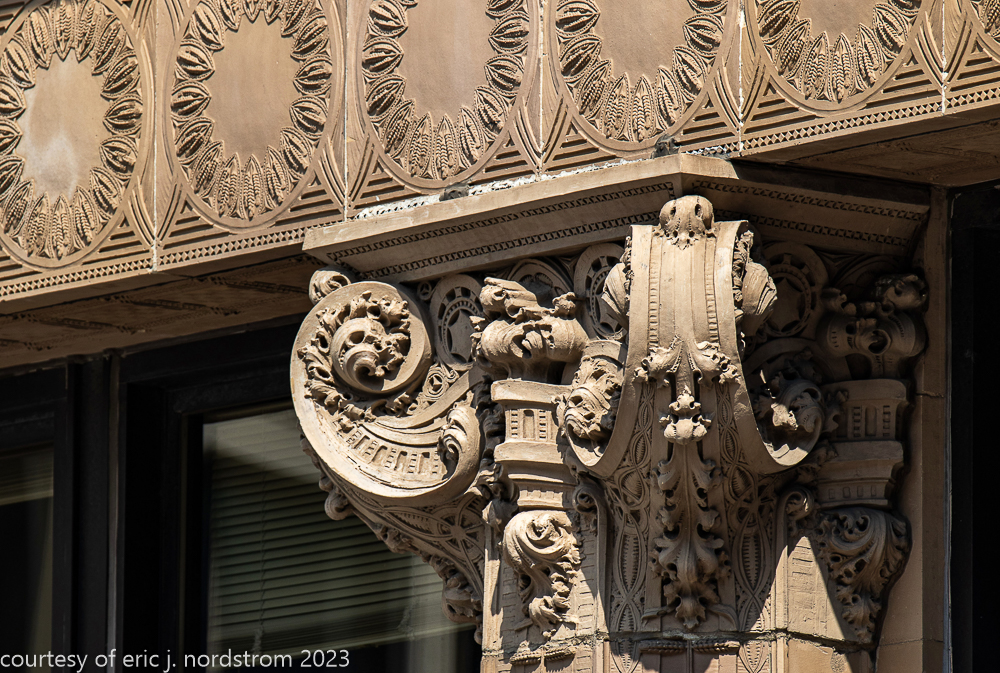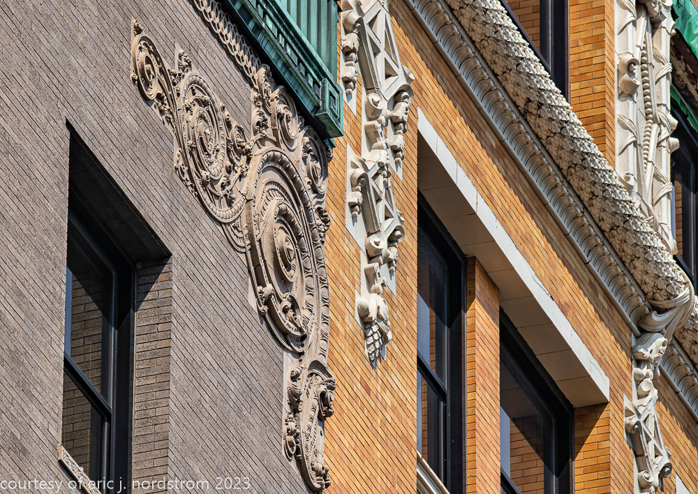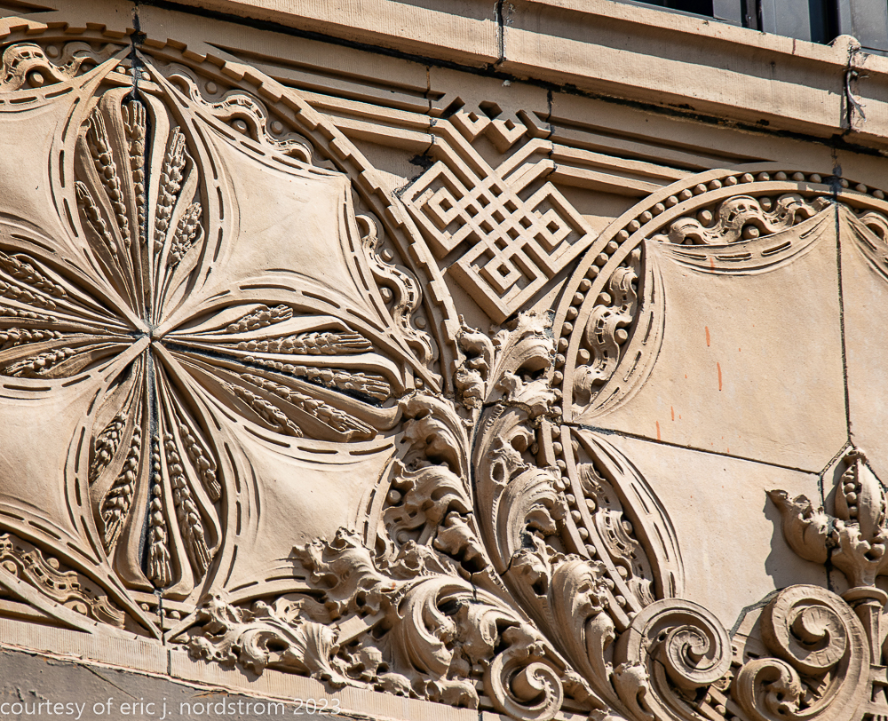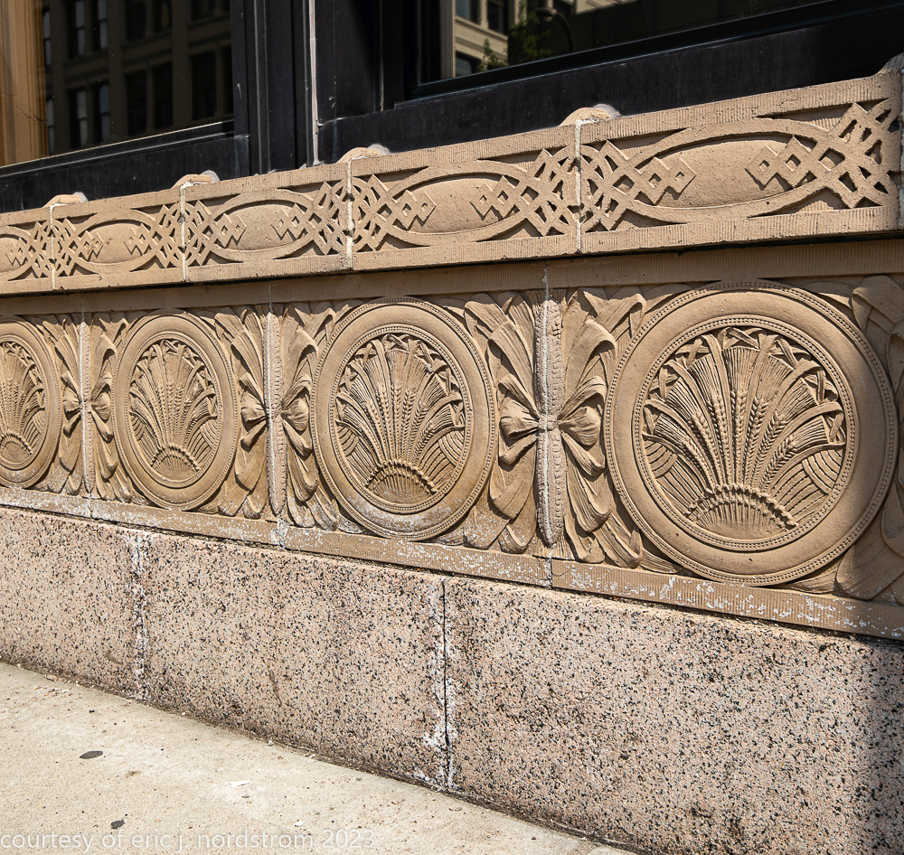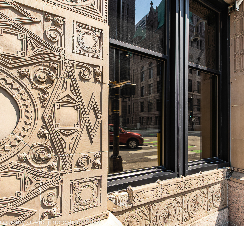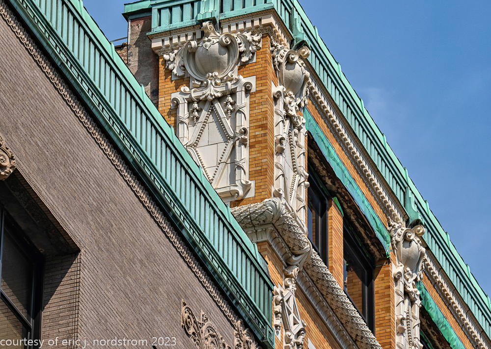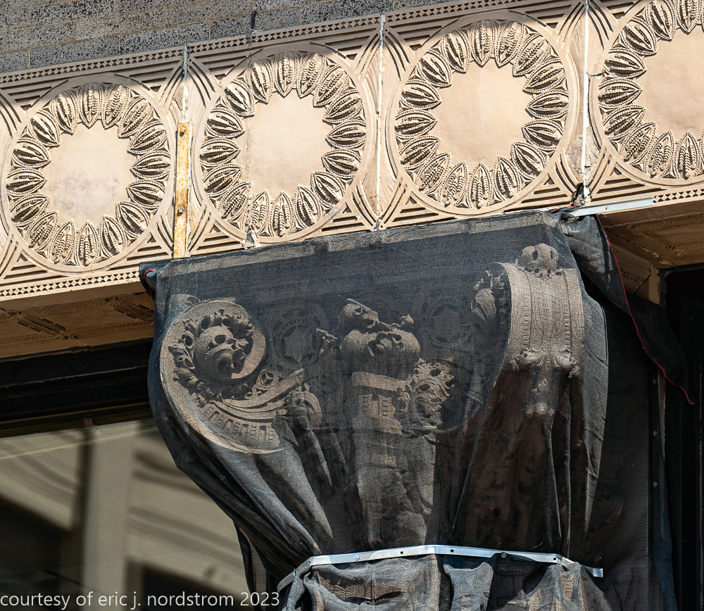 2023 terra cotta facade restoration in progress on kees and colburn’s sullivanesque style grain exchange building
