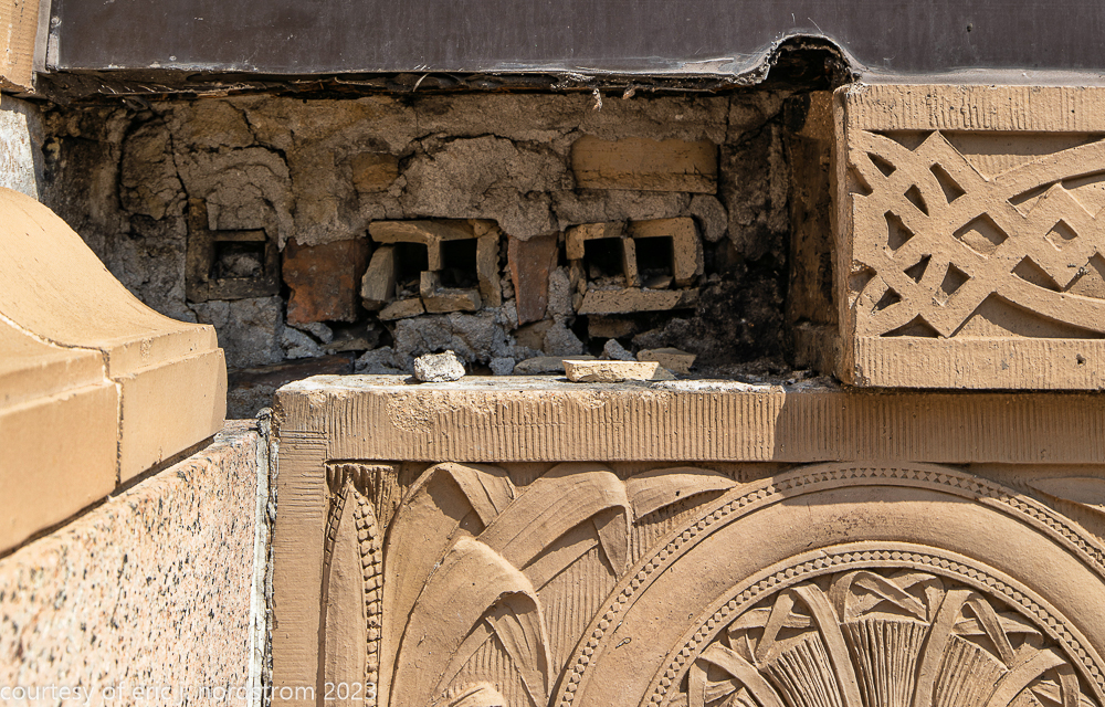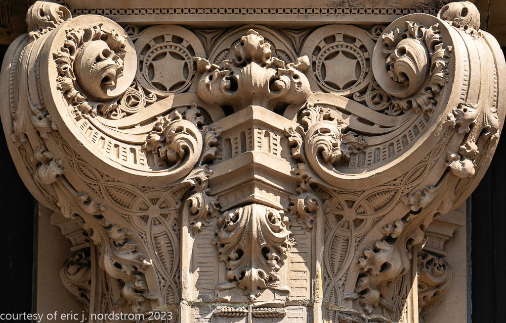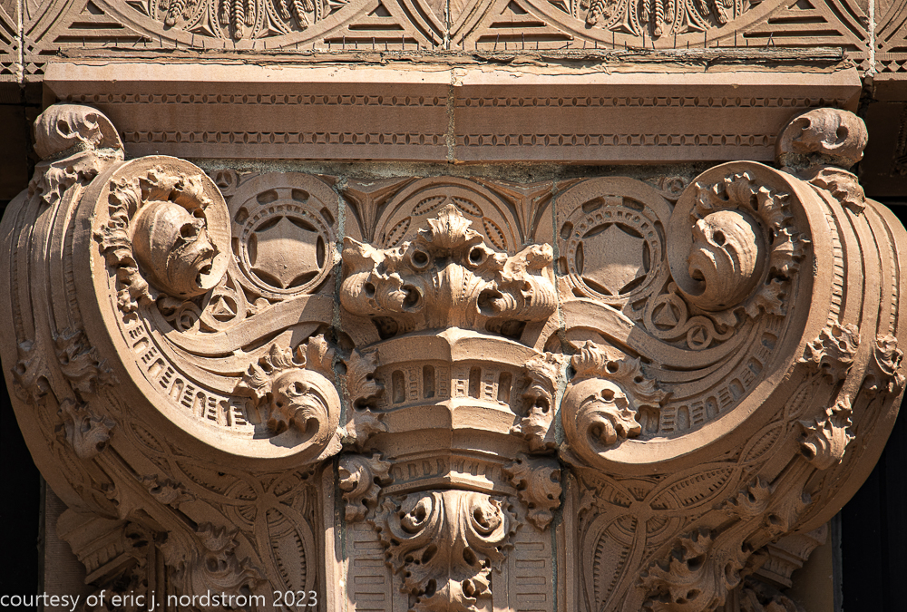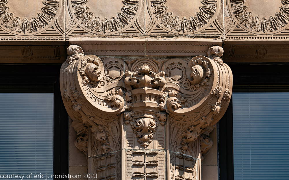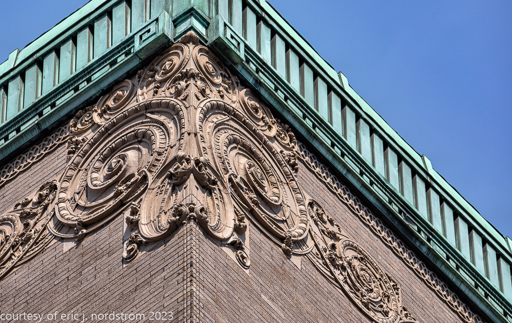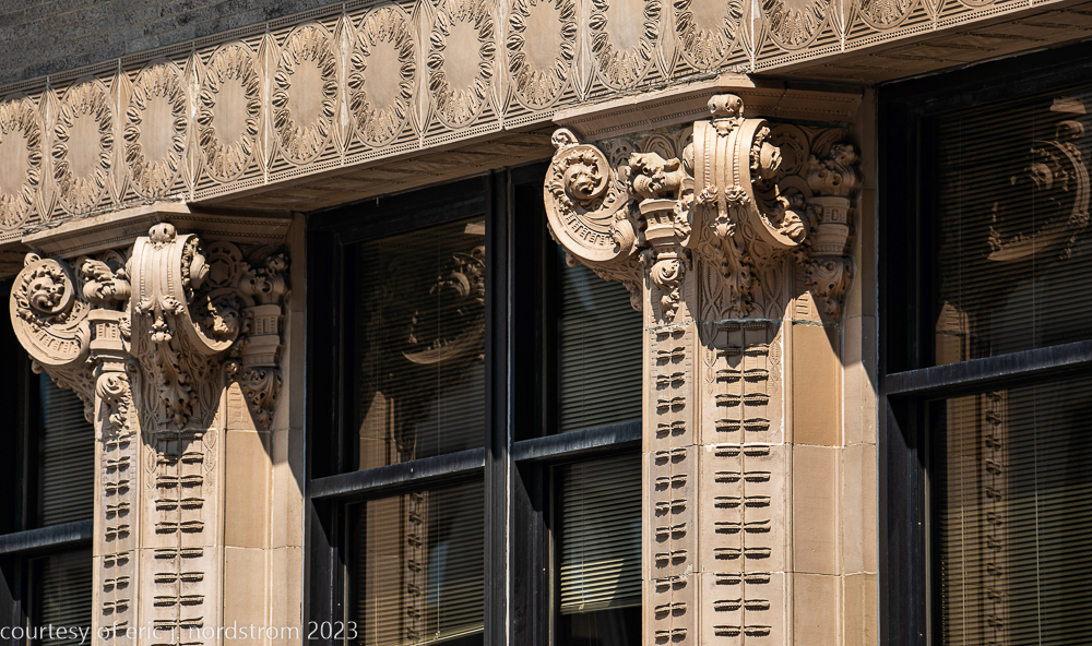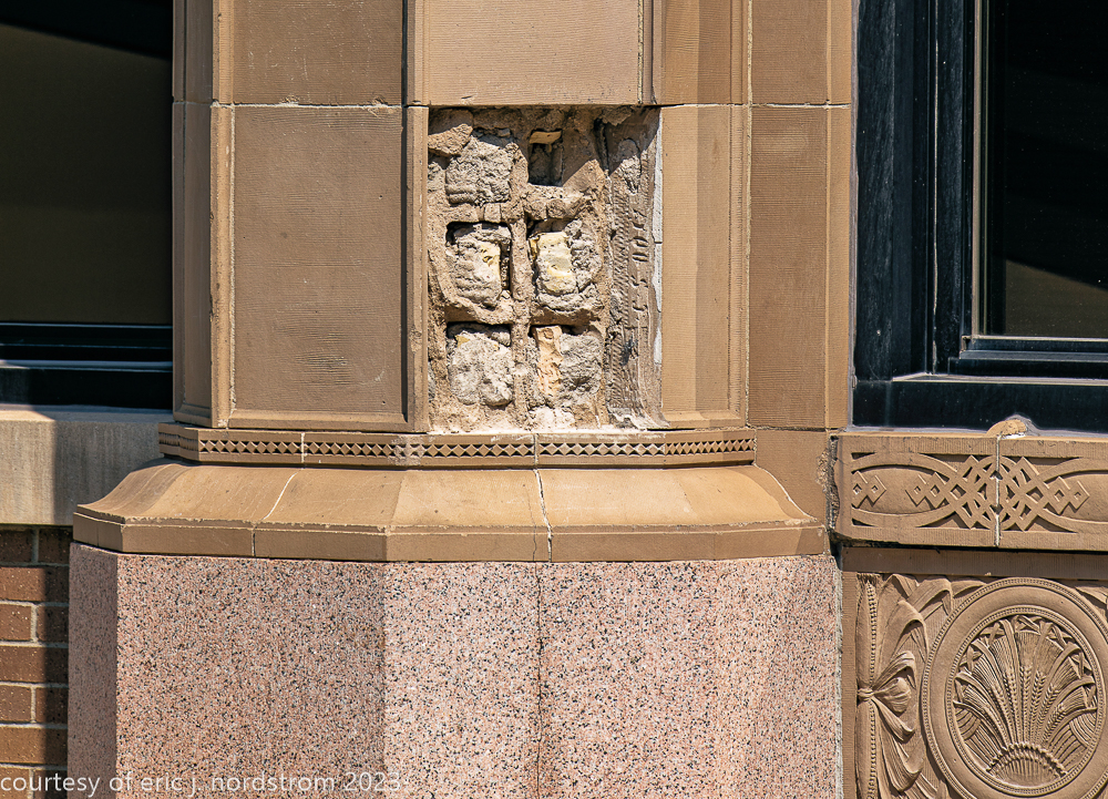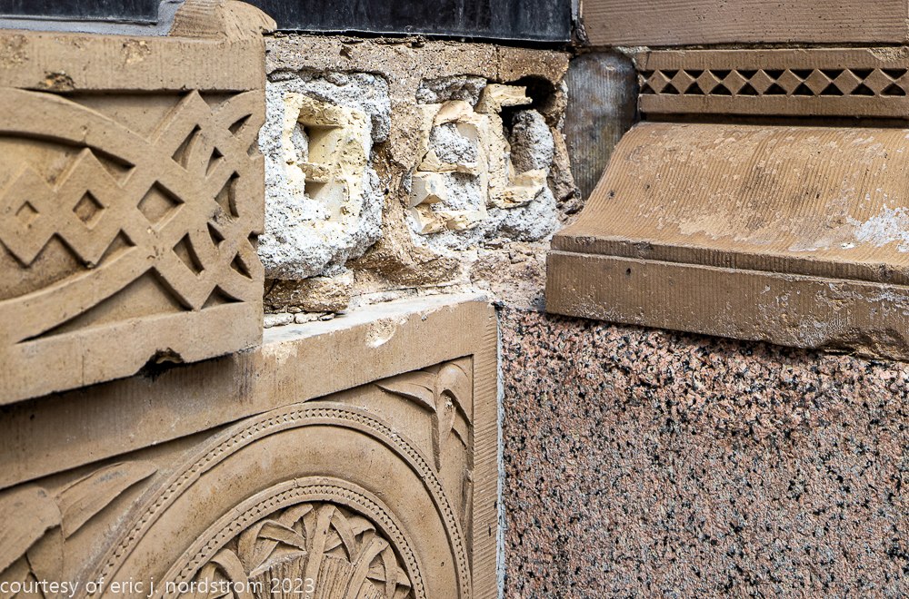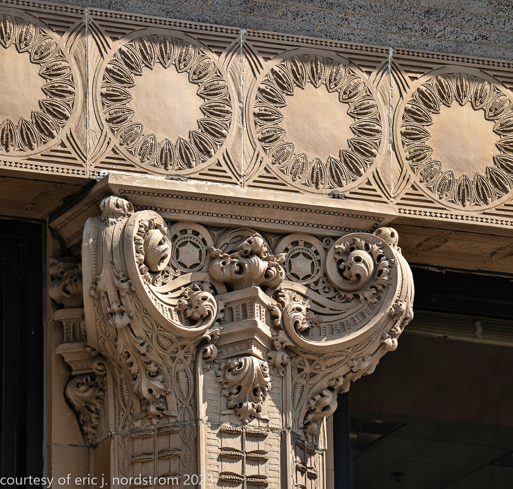 2023 terra cotta facade restoration in progress on kees and colburn’s sullivanesque style grain exchange building