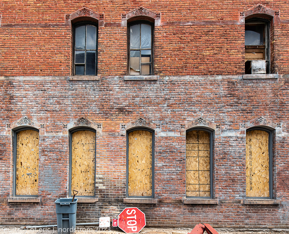 i’ve been documenting this building since 1999, when it was mostly abandoned, neglected, and falling to pieces (the worst of it was in the rear shed). the nicely worn and weathered facade, with it’s ghostly foundry signs and largely unaltered exterior ornament, made this building visually appealing on many levels.