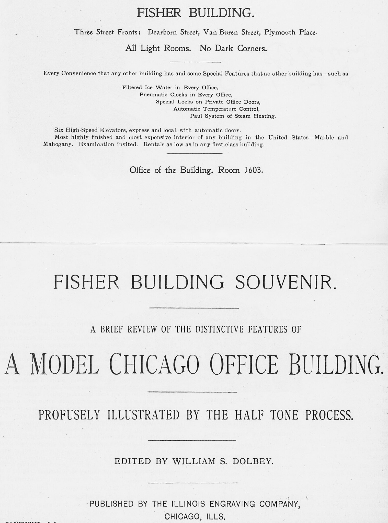 04 Aug rare original burnham and atwood fisher building souvenir booklet edited by william s. dolbey joins bldg. 51 archive