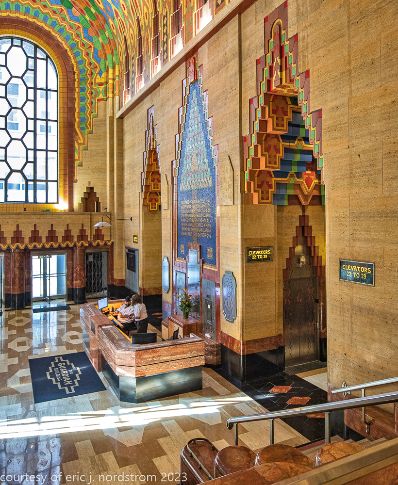 interior and exterior images of wirt c. rowland’s 36-story mayan revival style guardian building (originally called the union trust building), located at 500 griswold street detroit, michigan.