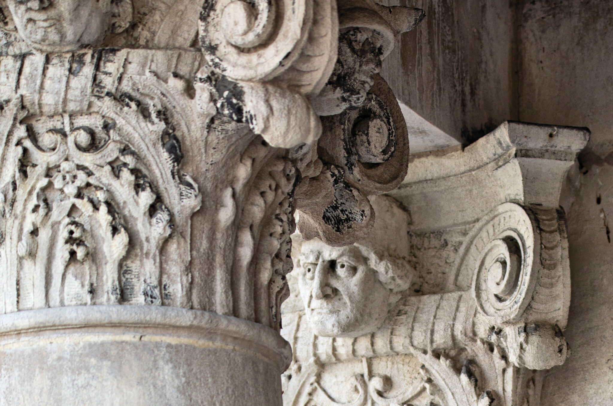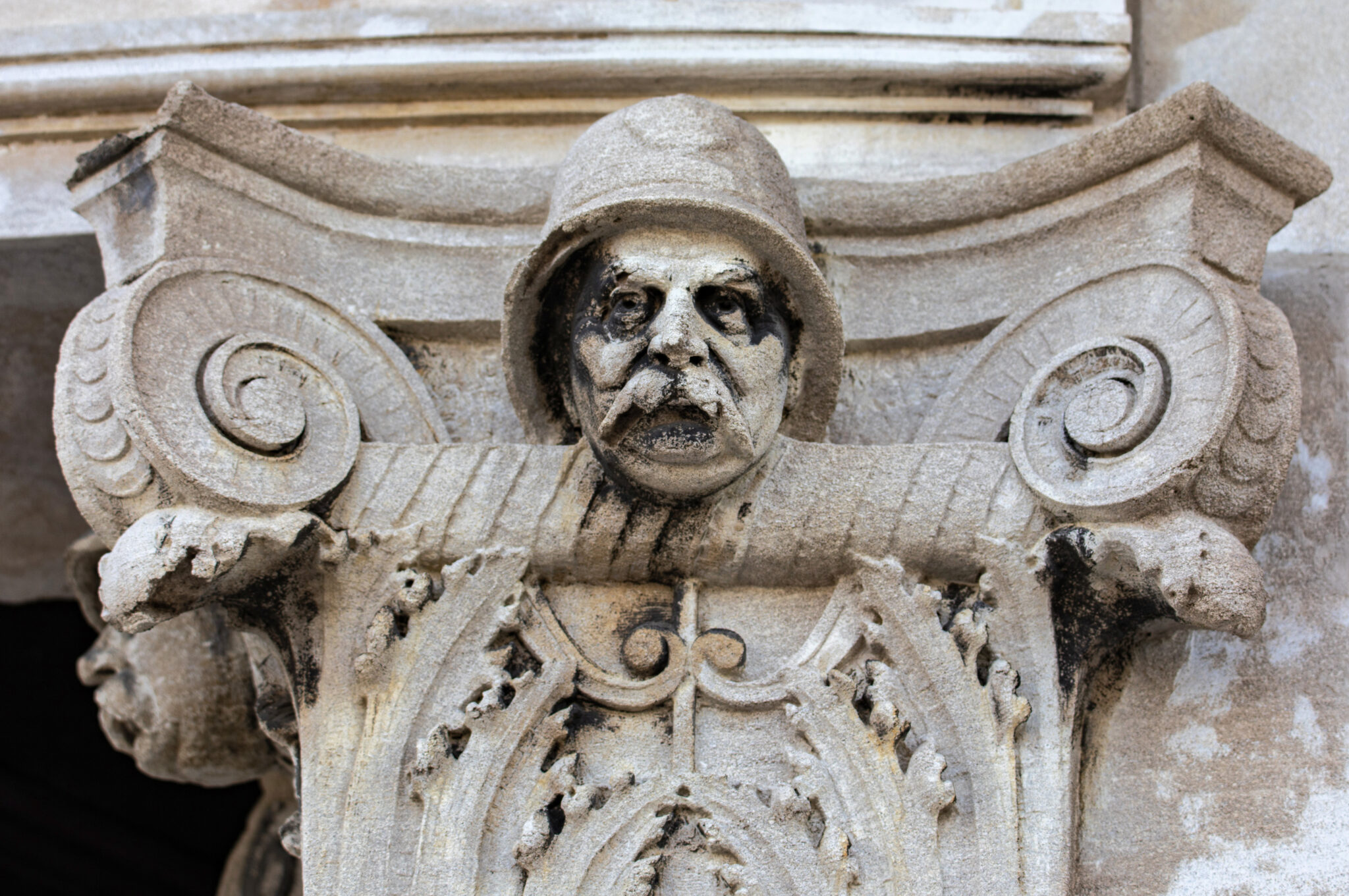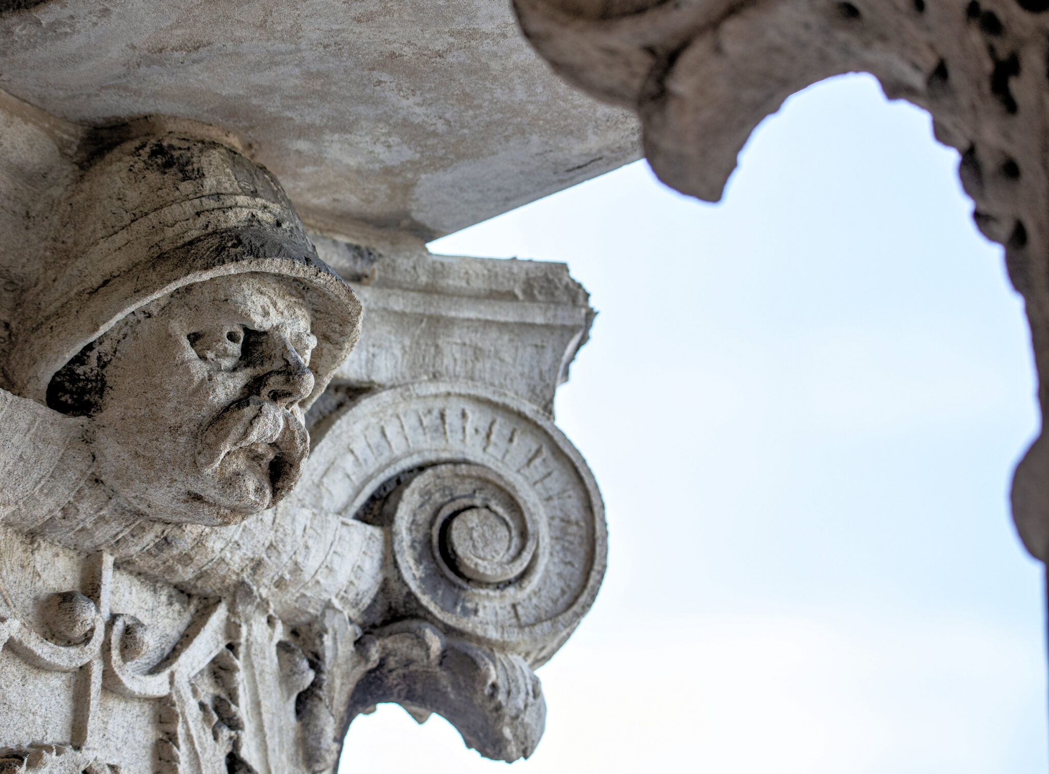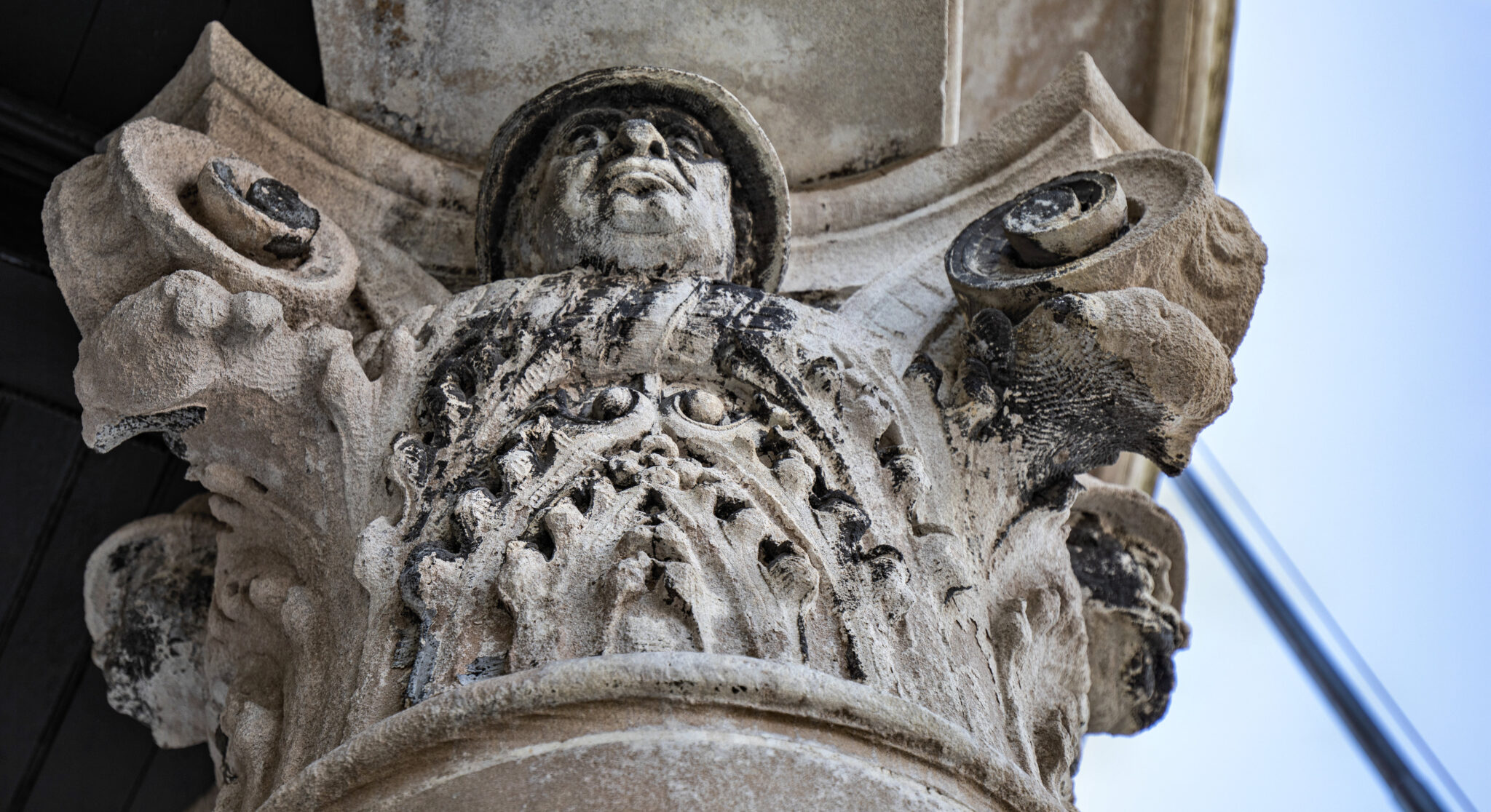 are the carved faces nestled in the column capitals based on actual policemen? i would love to know.