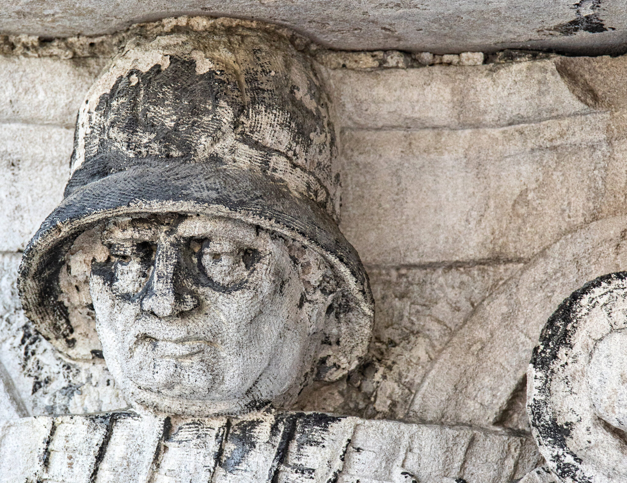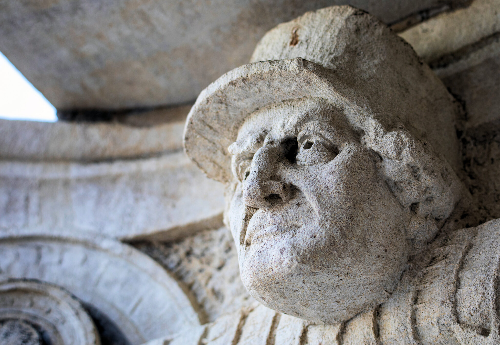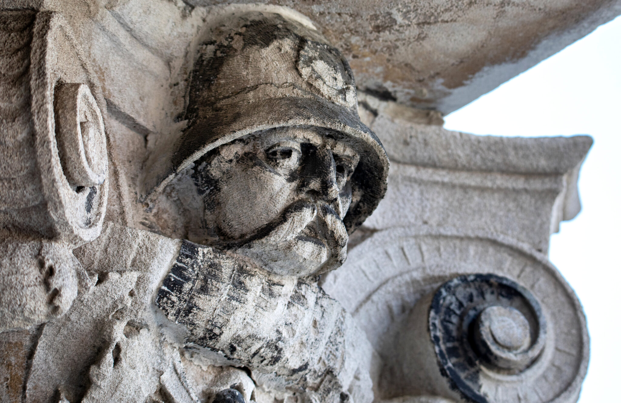are the carved faces nestled in the column capitals based on actual policemen? i would love to know.