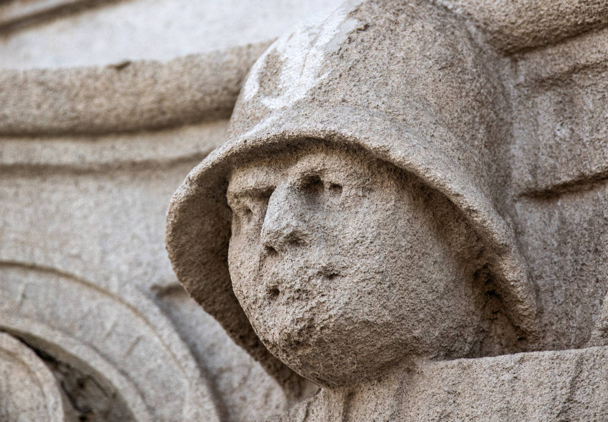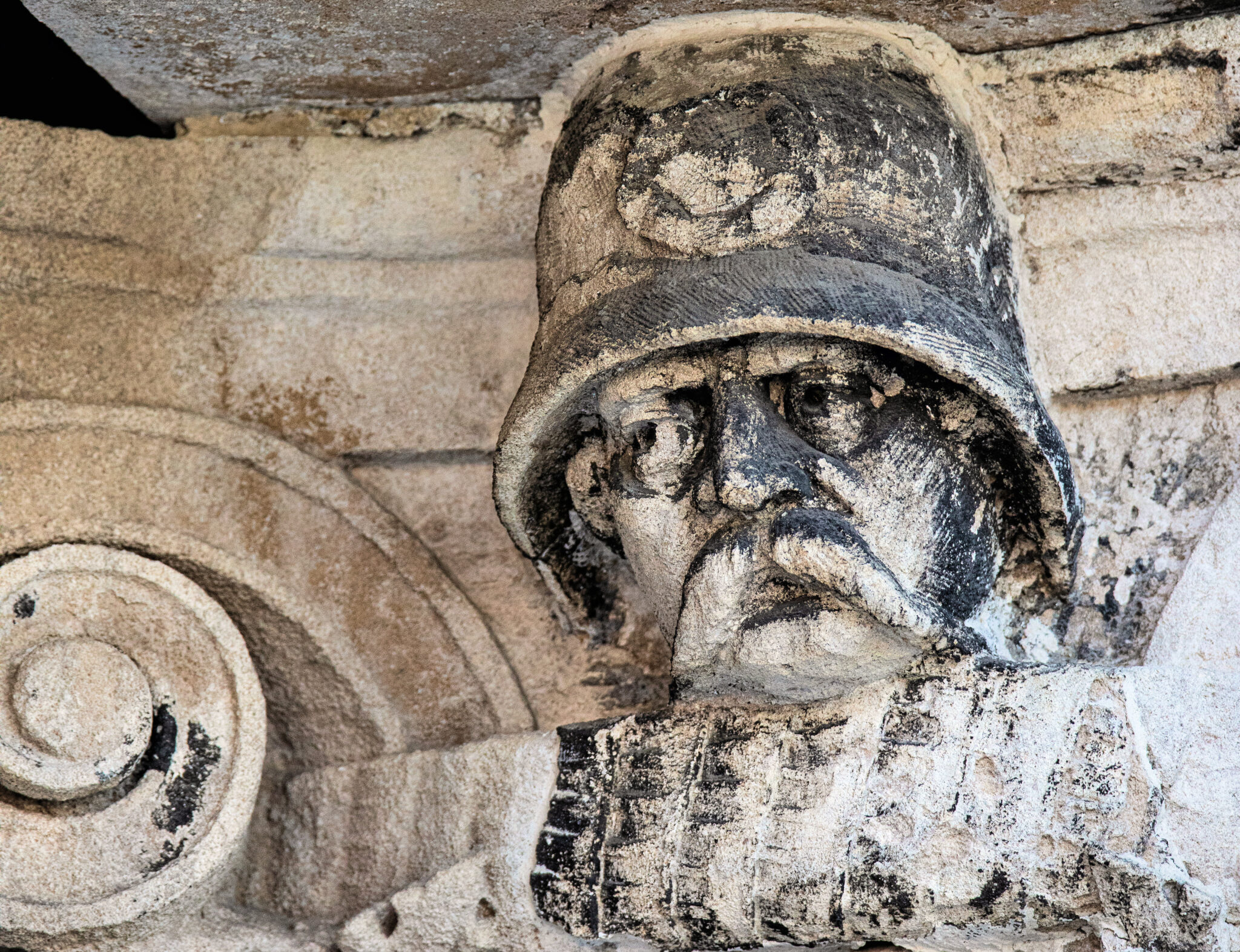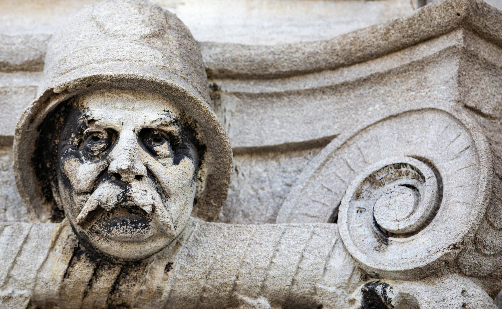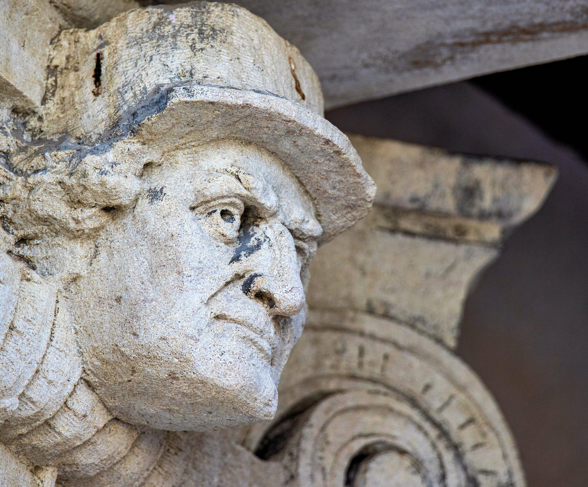 are the carved faces nestled in the column capitals based on actual policemen? i would love to know.