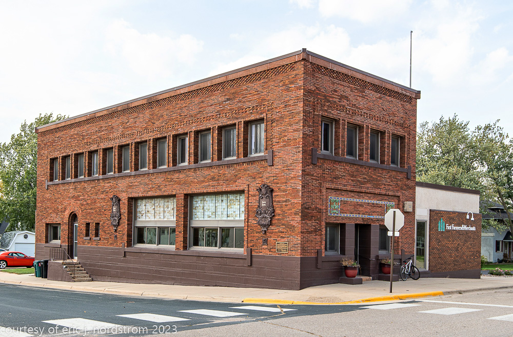 the exchange state bank (1910) was the first of three mower county (southern minnesota) bank buildings designed by the architectural firm of purcell, feick & elmslie (later purcell and elmslie). located on the corner of main street and grand avenue in the small town of grand meadow, minnesota, the two-story cubic building was built for a bank and vault on the first floor and office spaces on the second floor.