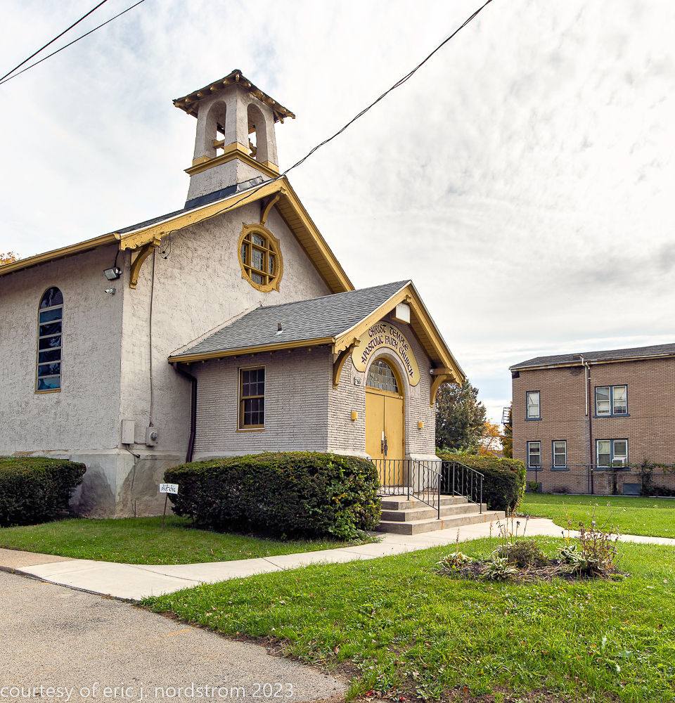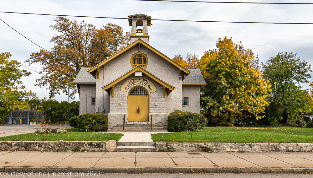 a partially completed exterior photographic survey of claude bragdon’s italian presbyterian church (1914), located at 774 west broad street, rochester, ny. the church was completed around the time bragdon’s published his seminal book entitled “projective ornament.”