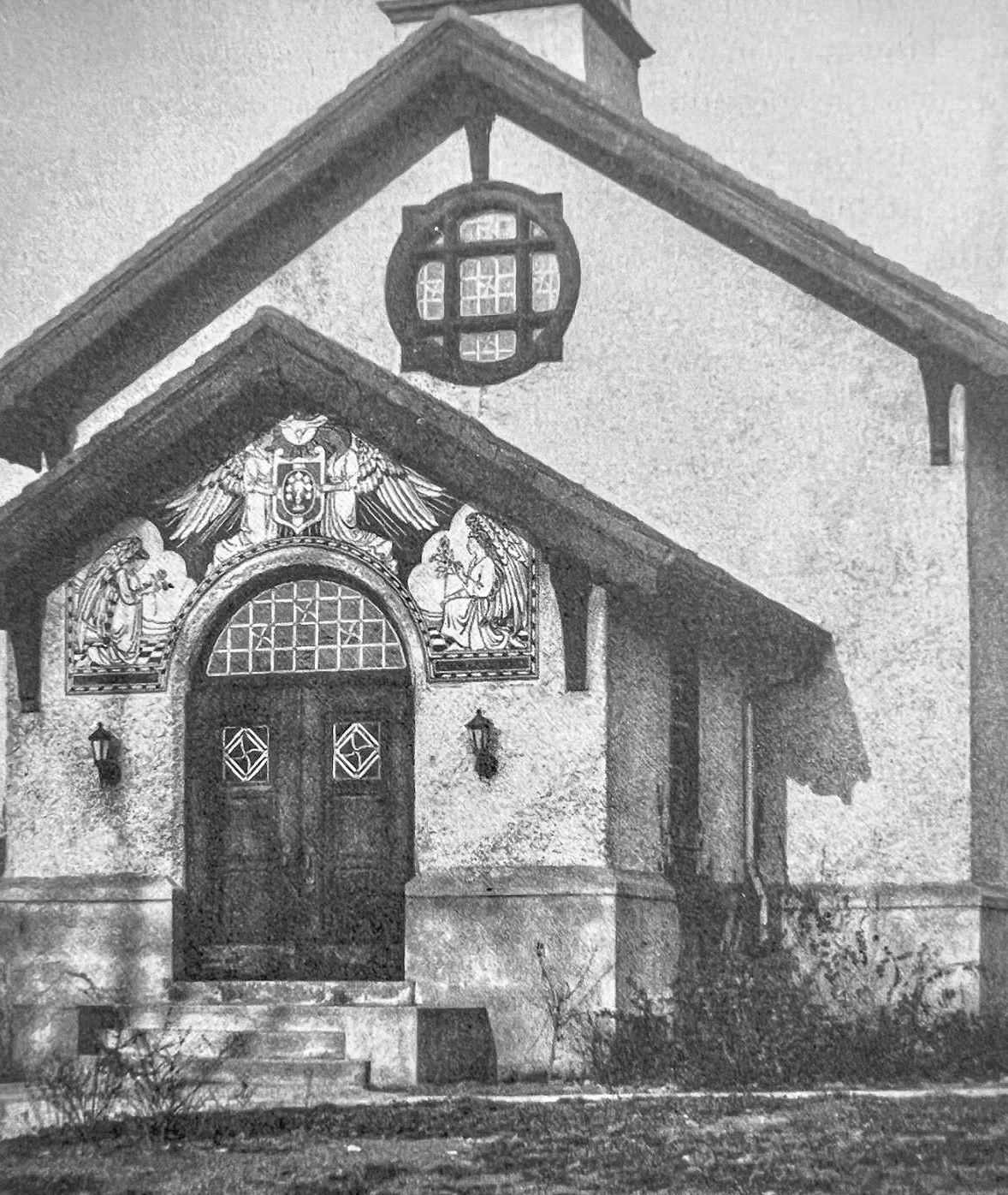 the sgraffito pamel surrouning the main entrance was also executed by bragdon.