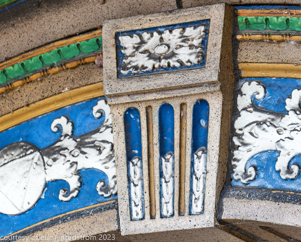 the glazed polychromatic terra cotta (colors specified by bragdon), was executed by the atlantic terra cotta company, perth amboy, nj.