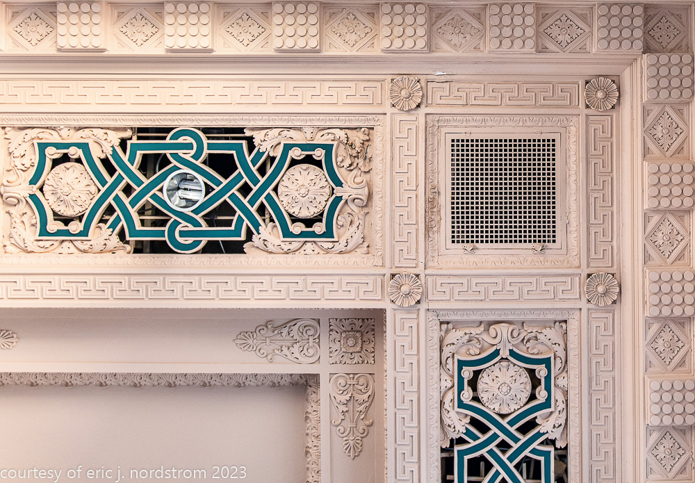 exterior and interior images of claude bragdon’s distinctive ornament found throughout his chamber of commerce building (1916-17), located at st. paul street, rochester, ny.