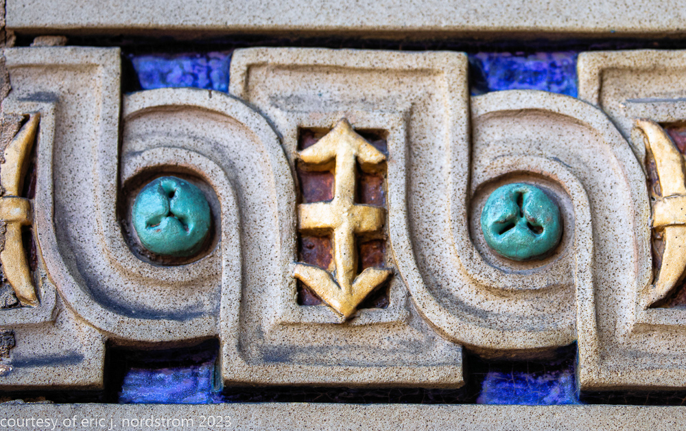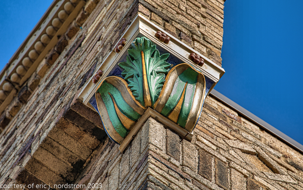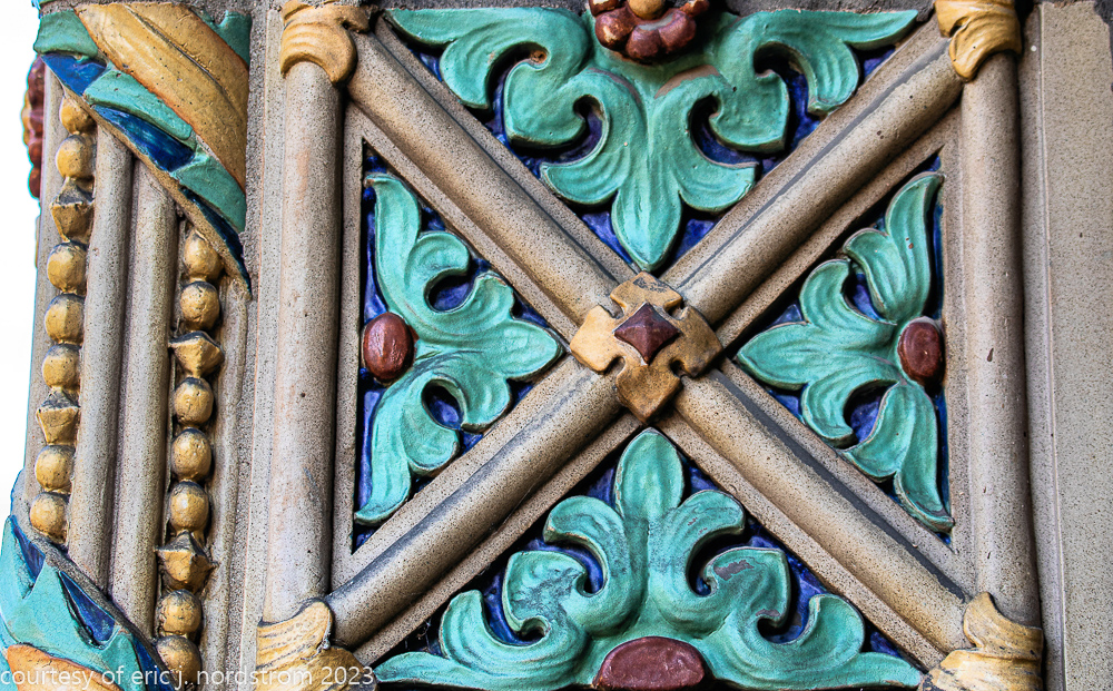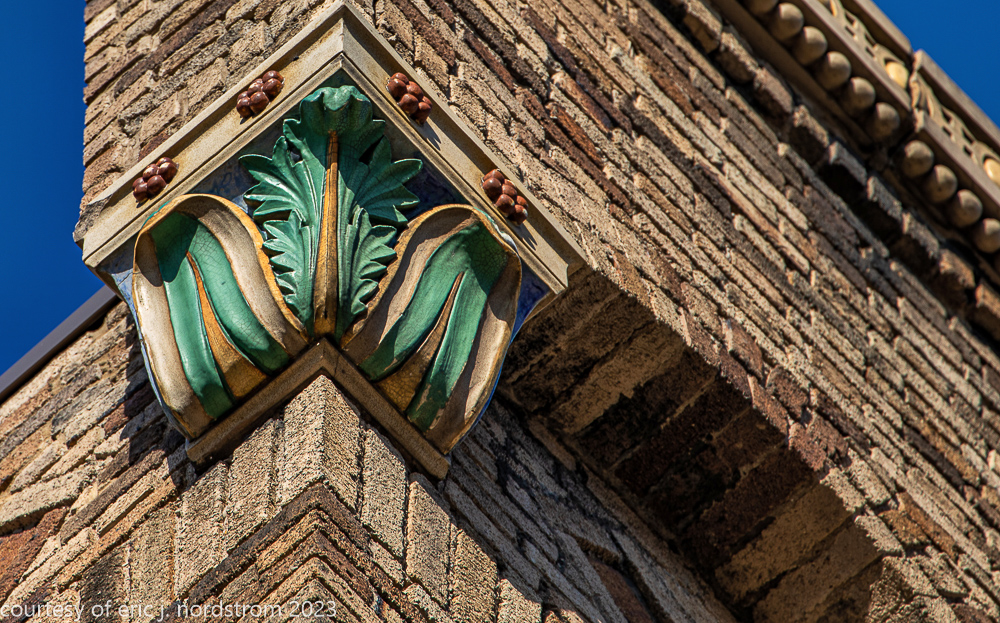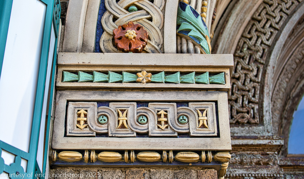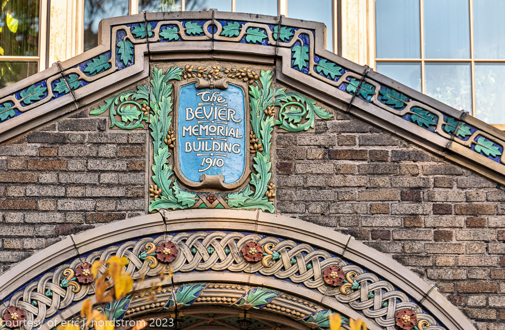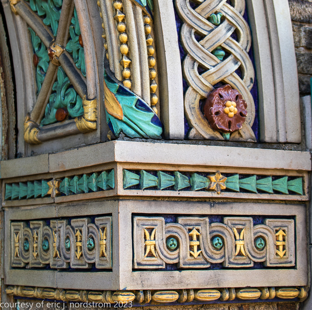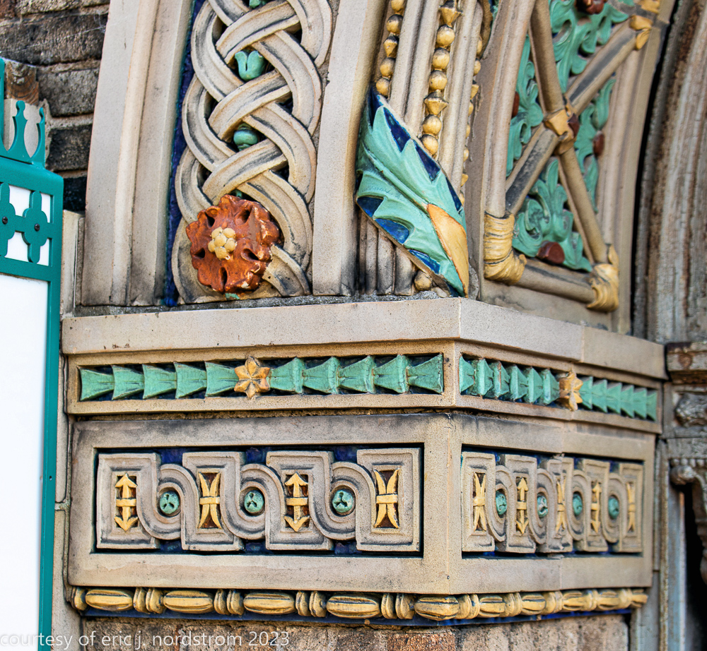 15 Nov detailed study of claude bragdon-designed exterior polychromatic ornament on bevier memorial building (1910),