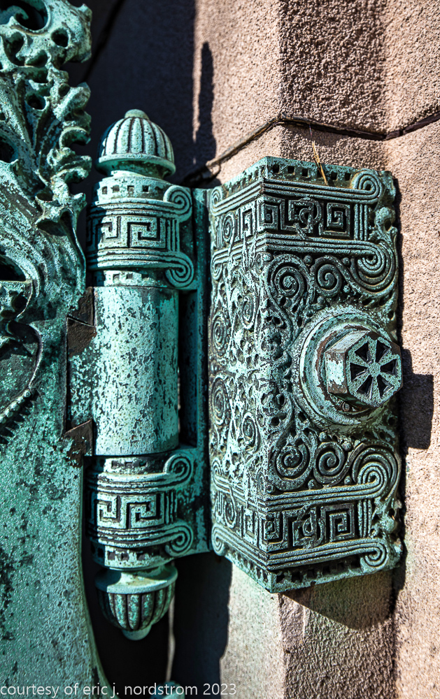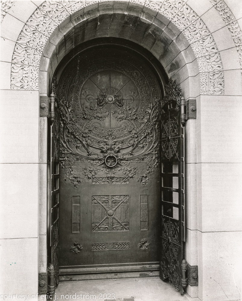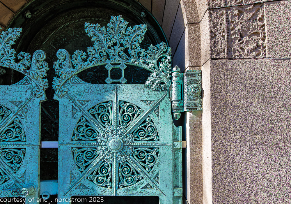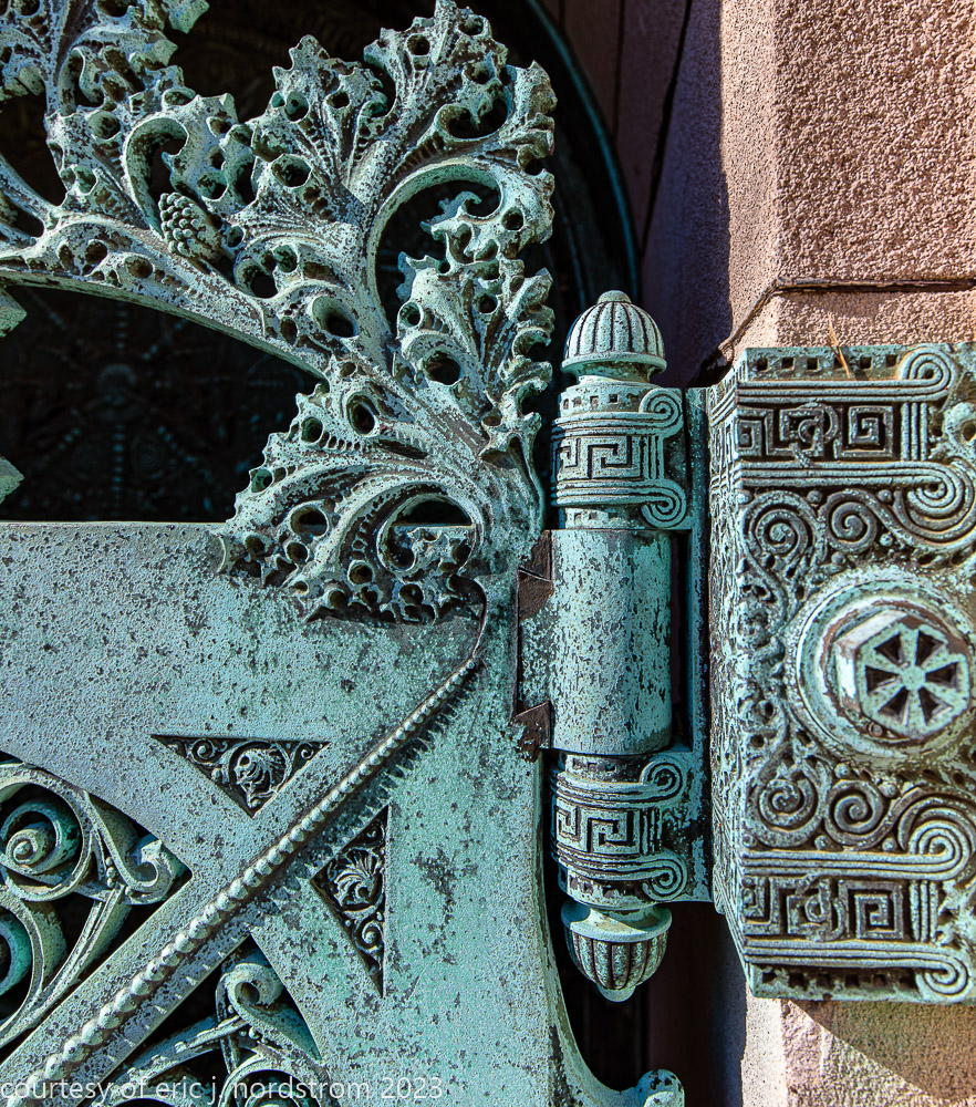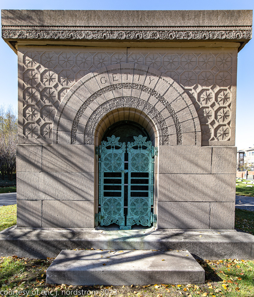 the getty tomb’s ornamental cast bronze gates and inner-door were executed by the yale and towne mfg. company. plaster casts were made of the sullivan-designed ornament and exhibited in paris and the art institute of chicago.