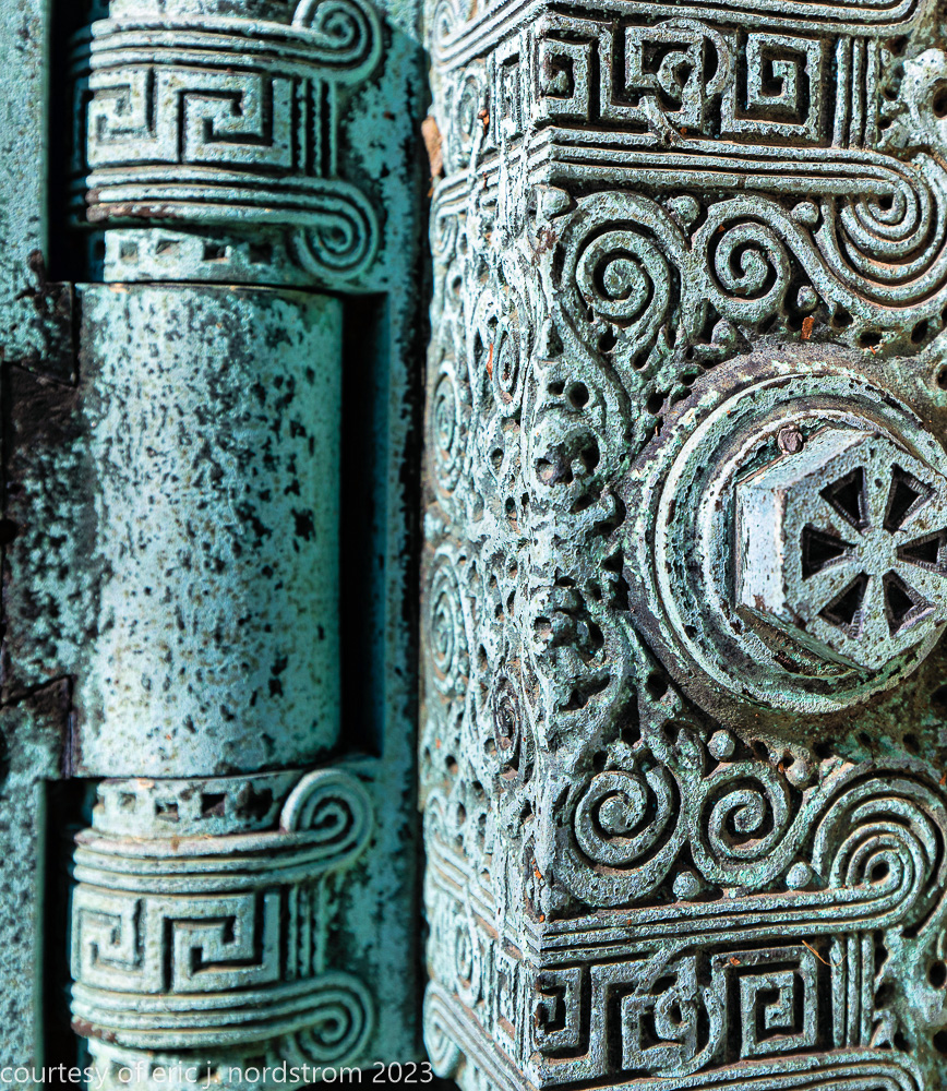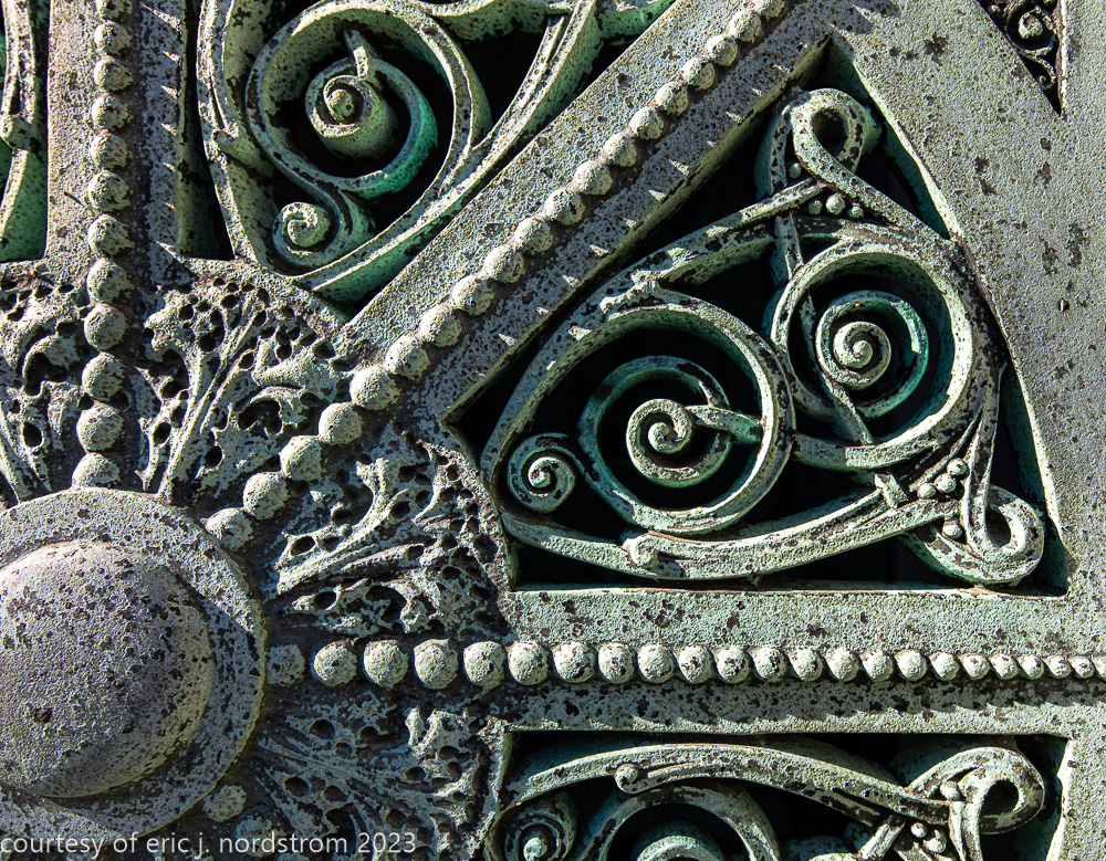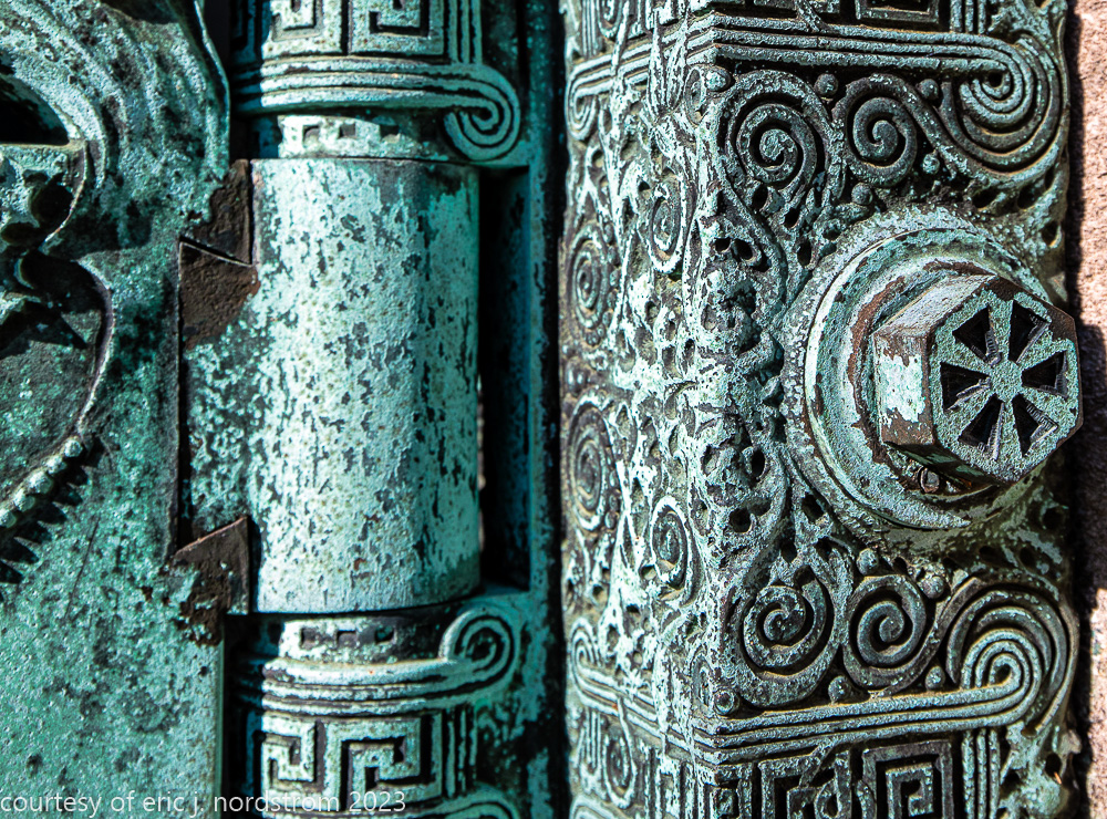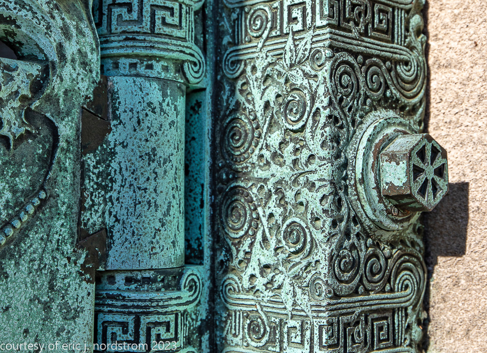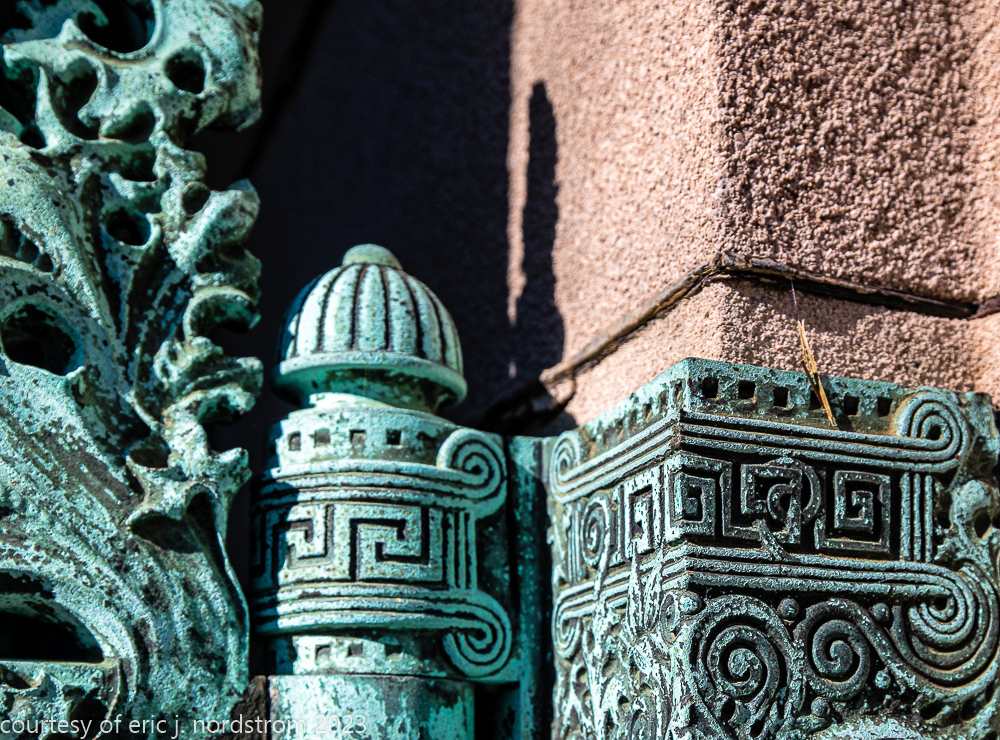 the getty tomb’s ornamental cast bronze gates and inner-door were executed by the yale and towne mfg. company. plaster casts were made of the sullivan-designed ornament and exhibited in paris and the art institute of chicago.
