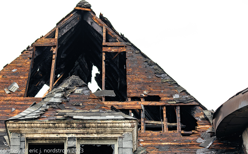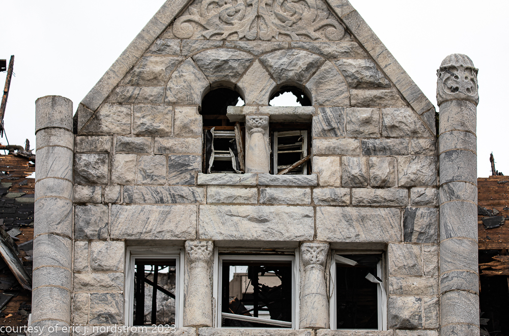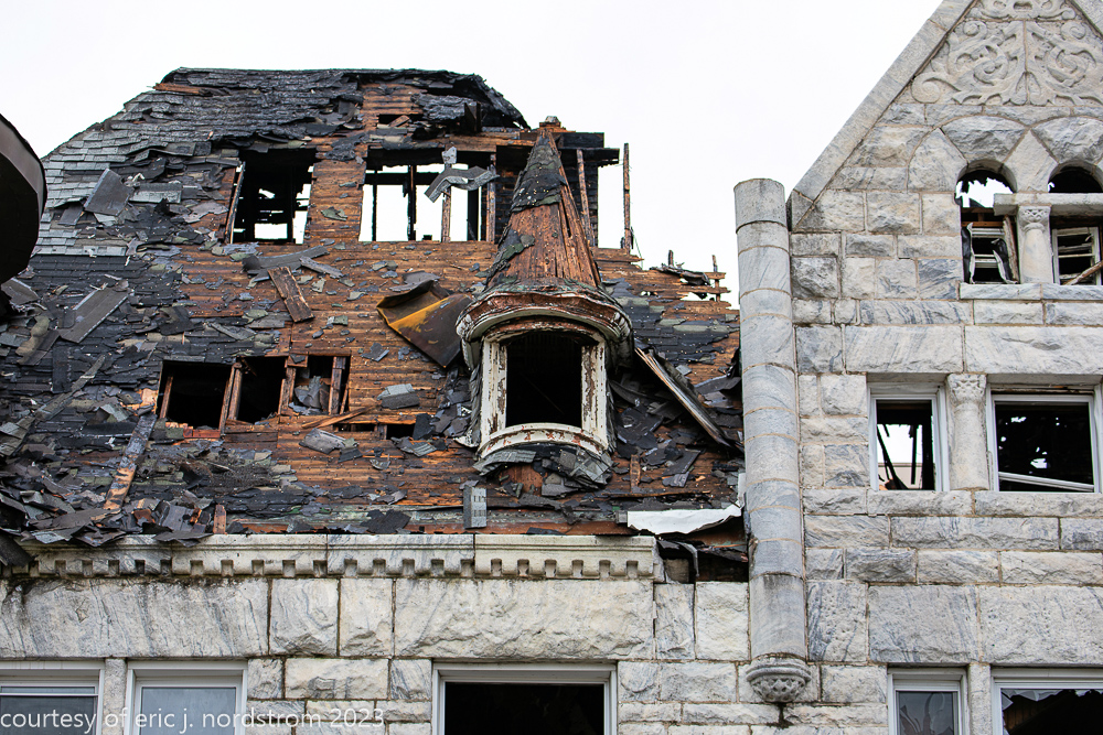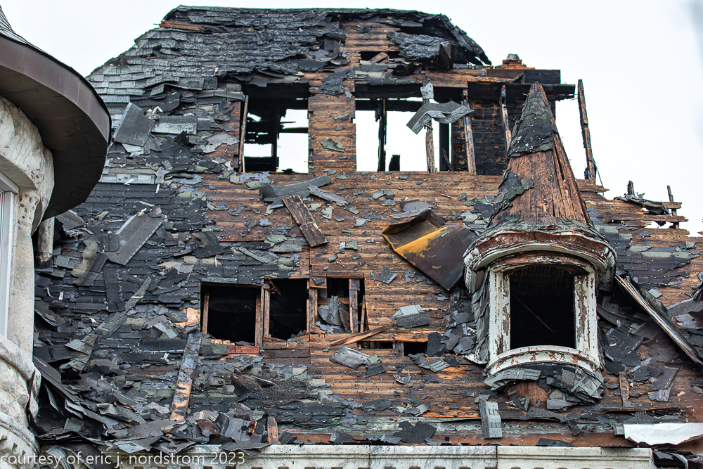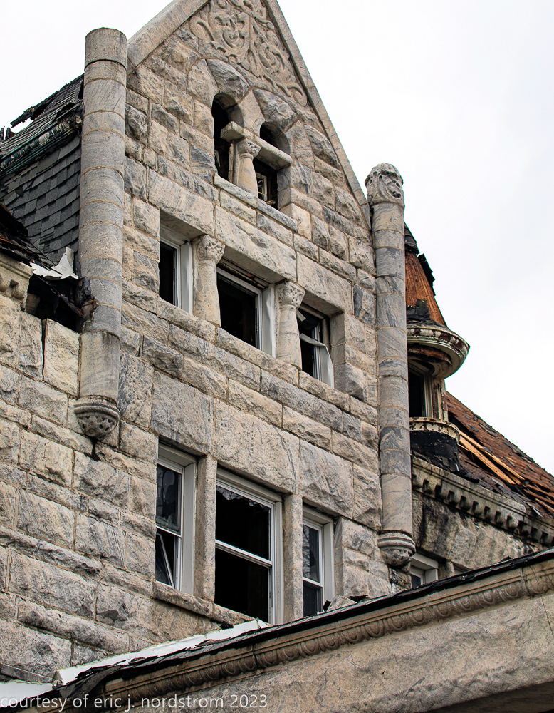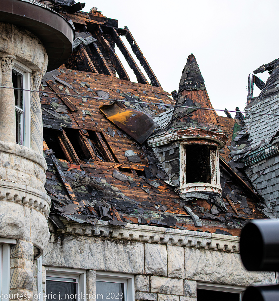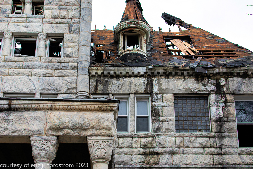 photographic survey of edward morris house or swift mansion (1892, willett and pashley, architects) a day after it caught fire. story in progress.