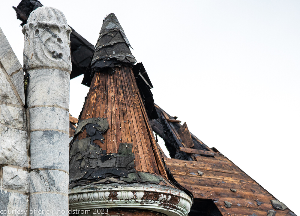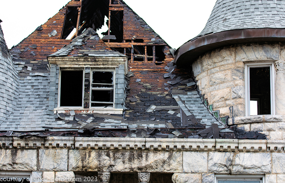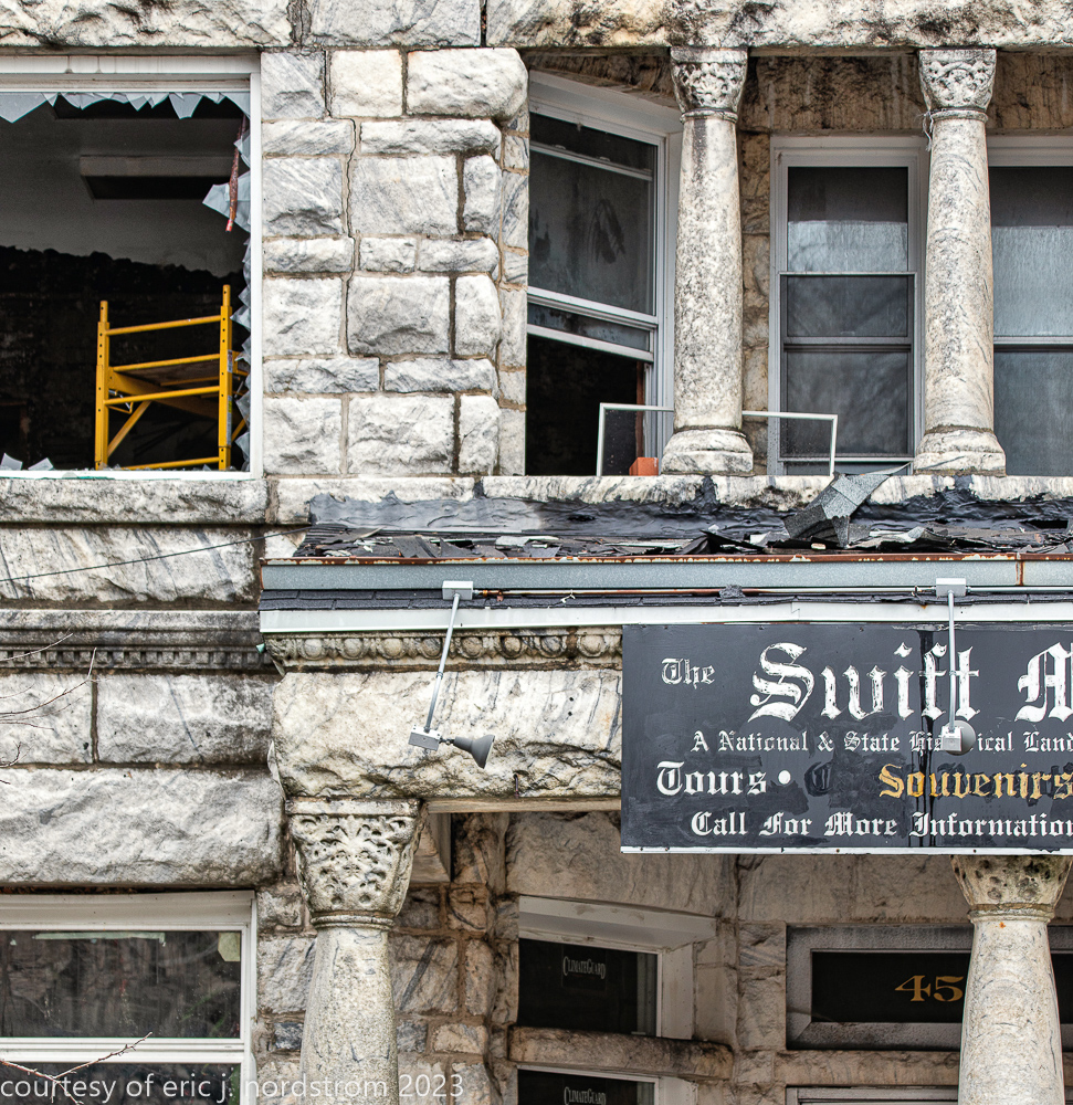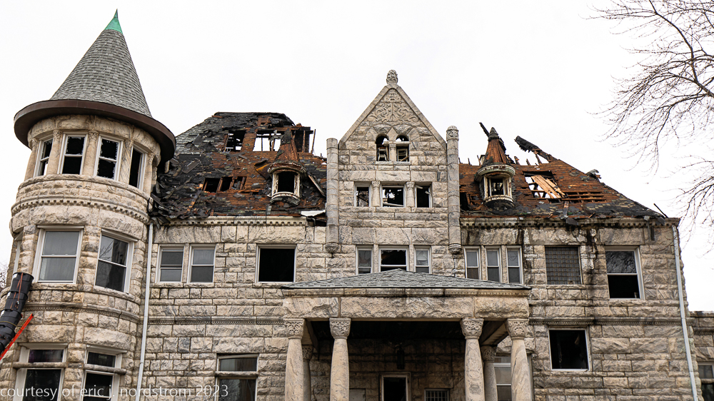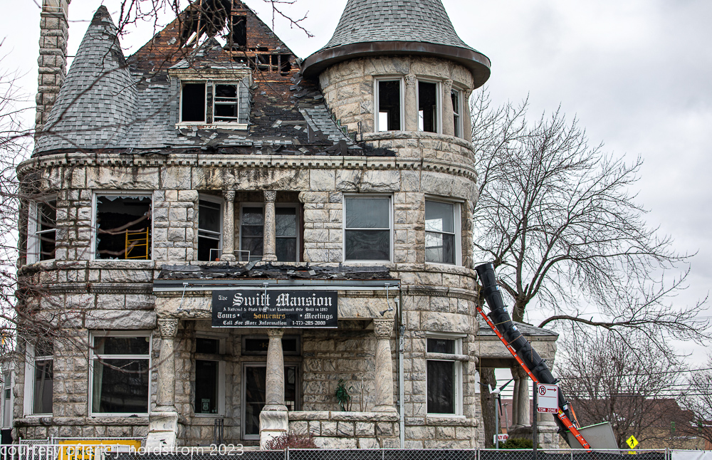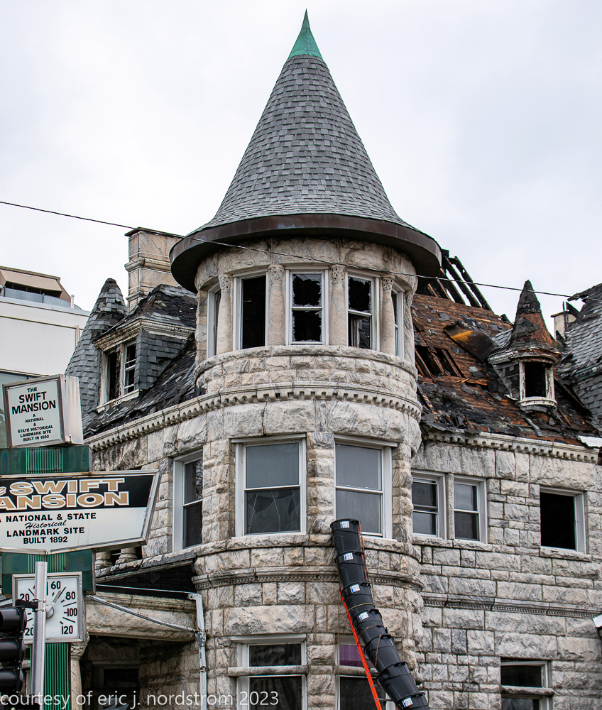 photographic survey of edward morris house or swift mansion (1892, willett and pashley, architects) a day after it caught fire. story in progress.