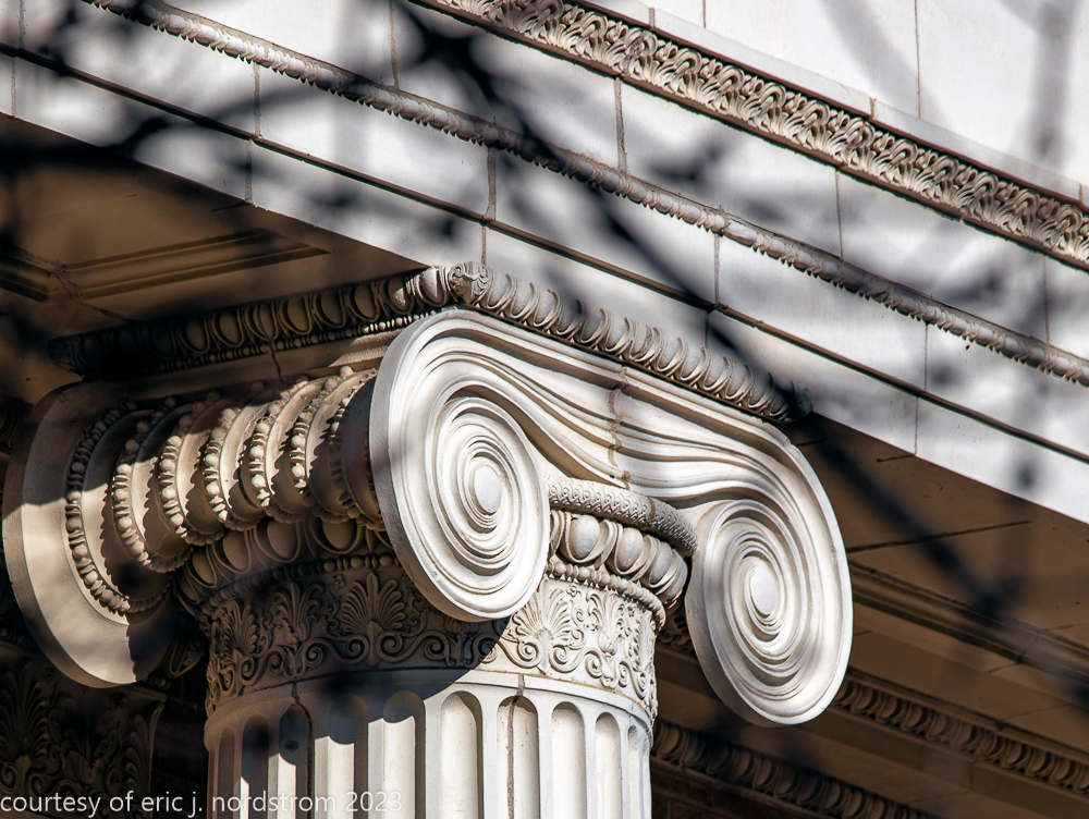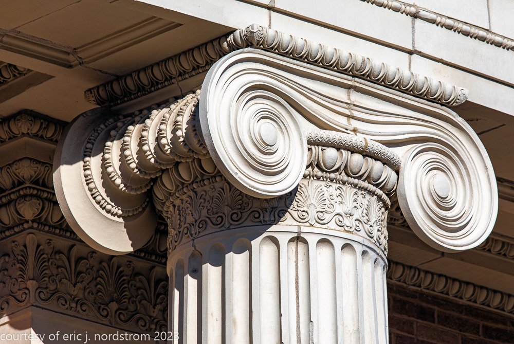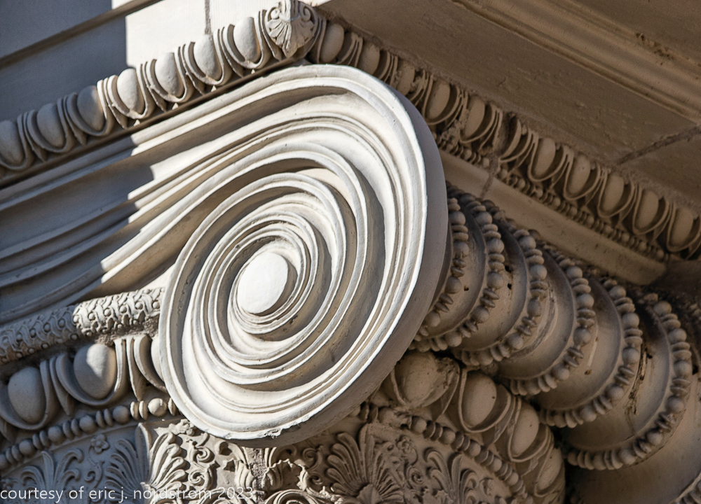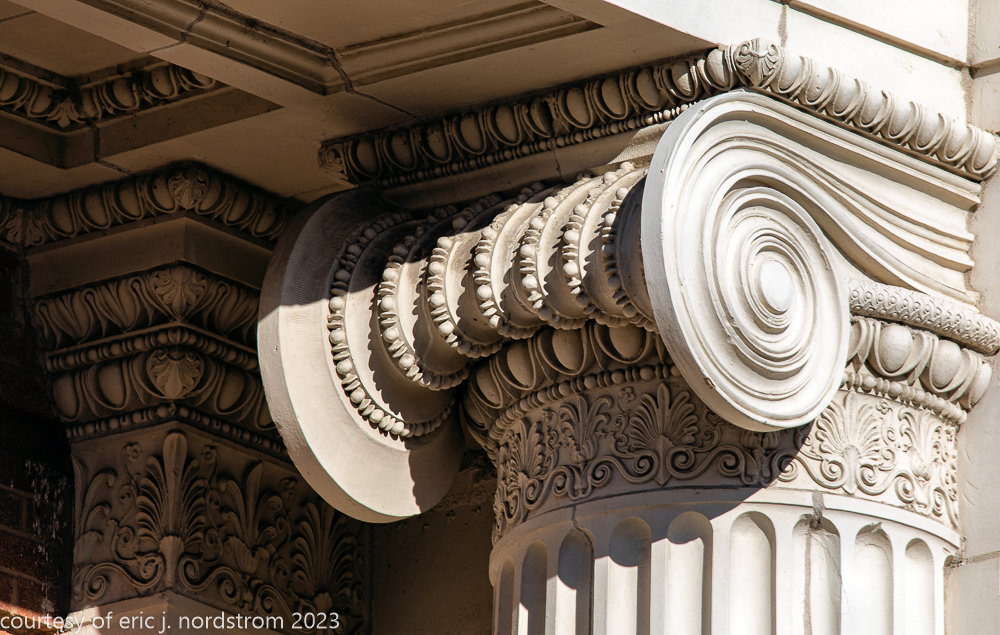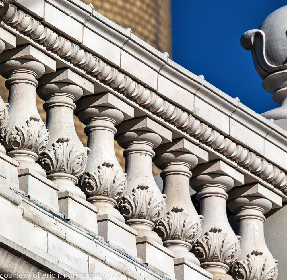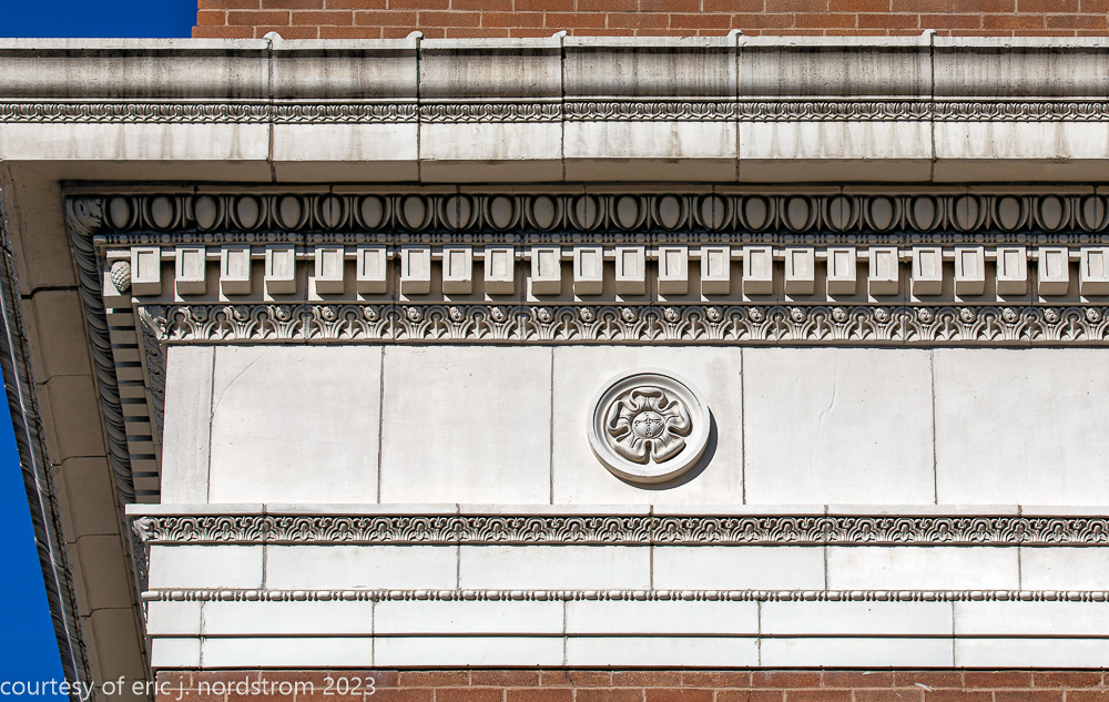 series of detailed images of robert bruce watson’s white glazed terra cotta ornament on the imposing 1897 central park avenue pumping station, located on the west side of chicago, ills.